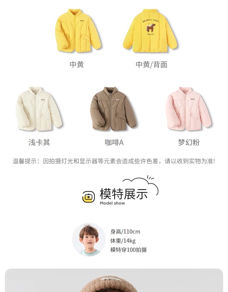 巴拉巴拉童装儿童棉服男童女童外套冬装新款棉衣绣花宝宝衣服