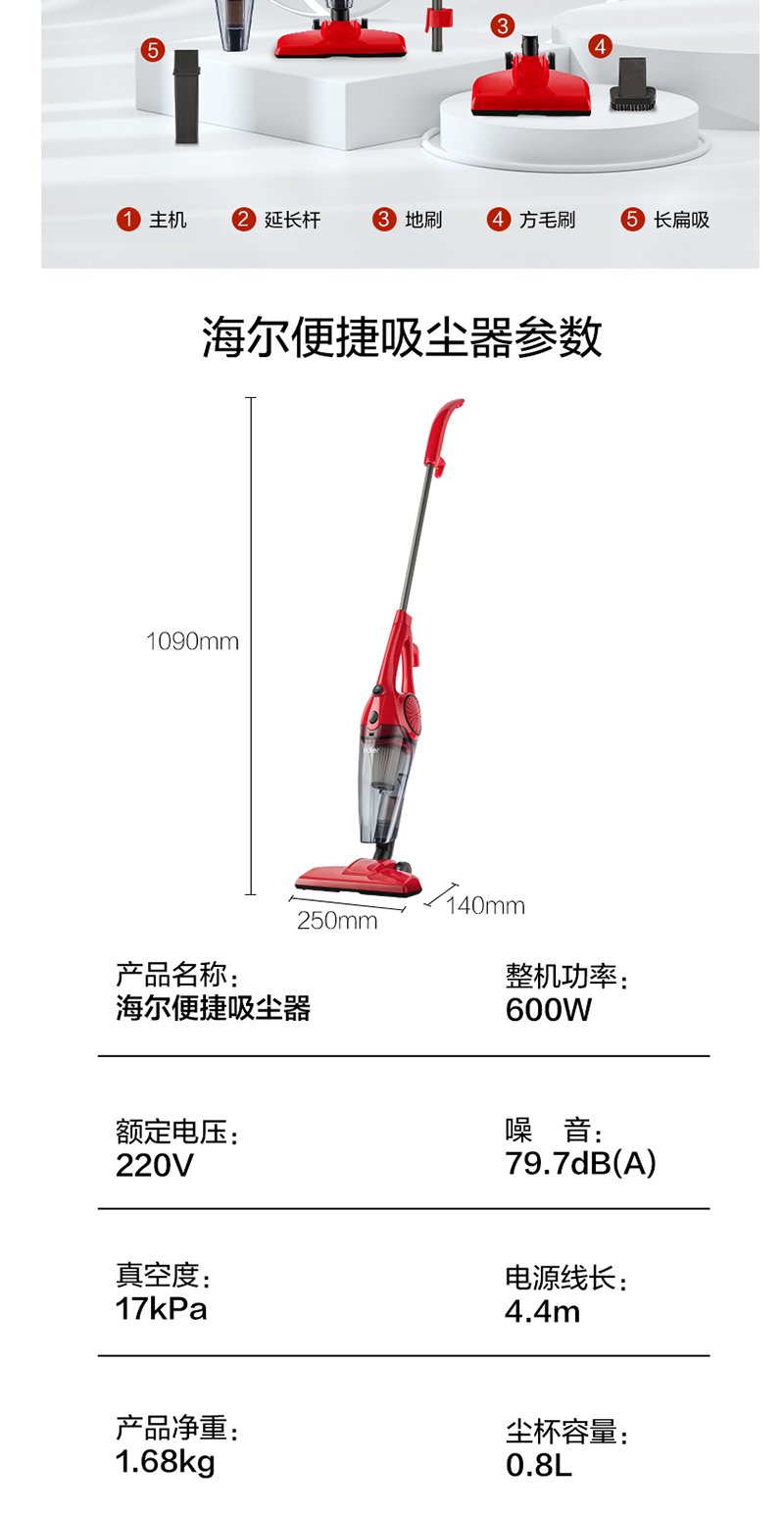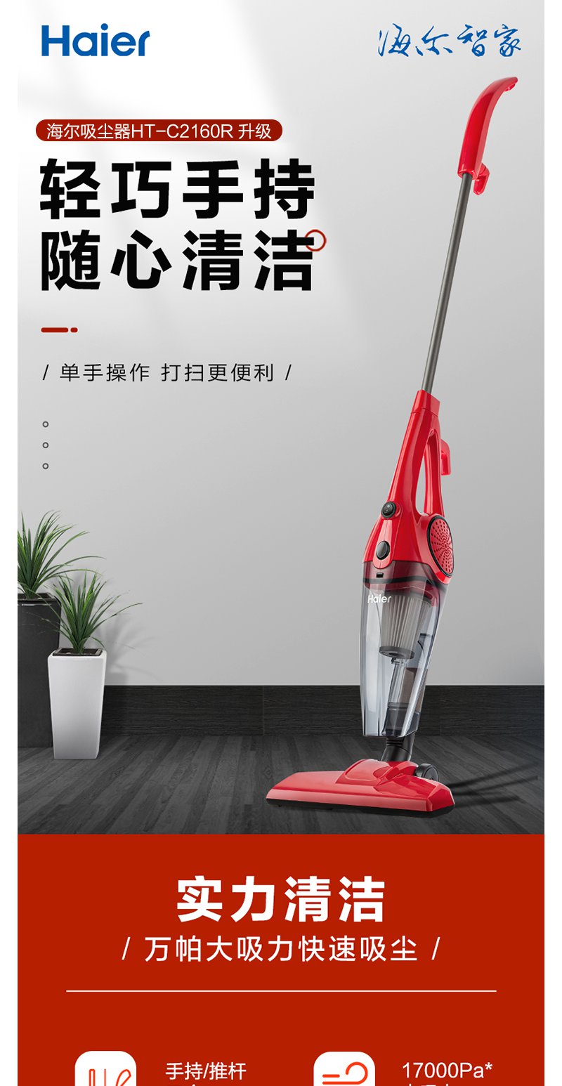 海尔 吸尘器 便携立式推杆手持款 HT-C2160R升级款 红色