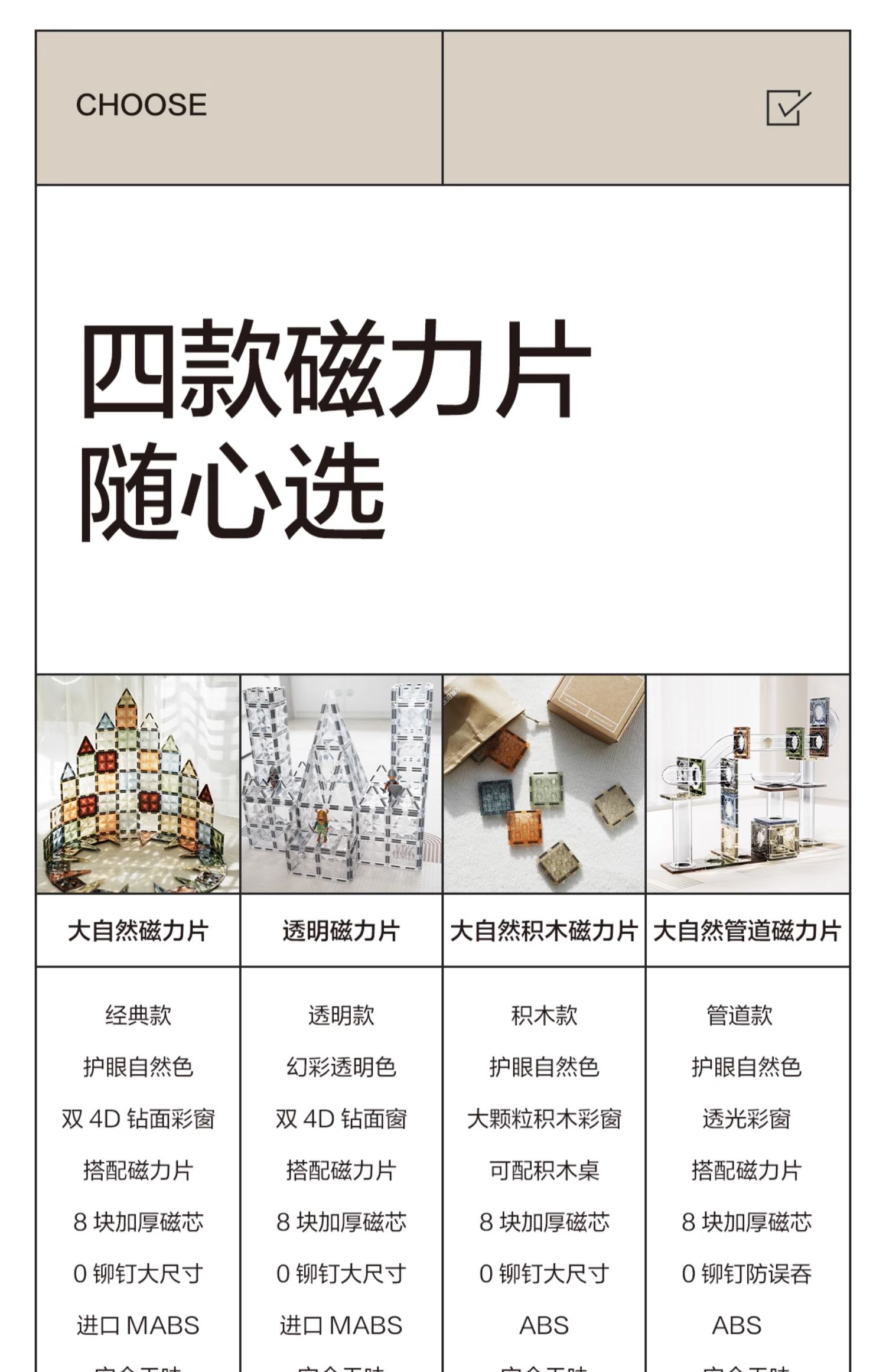 【会员可兑换品】贝易大自然磁力片儿童益智玩具积木拼装拼图男女孩生日儿童节礼物【下单送收纳盒,140片以上送休闲吧积木+小汽车】