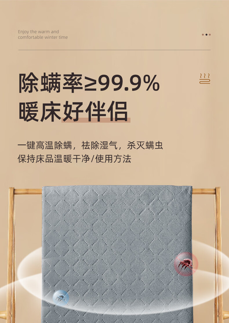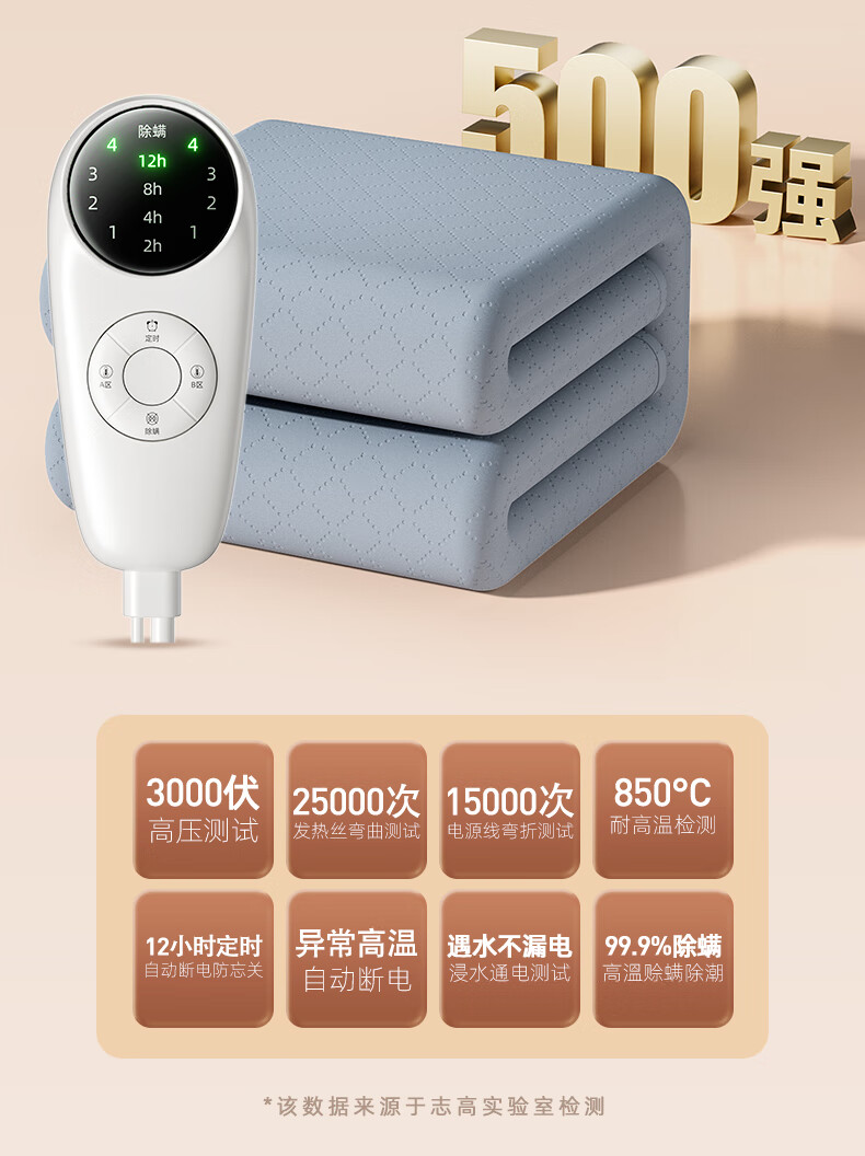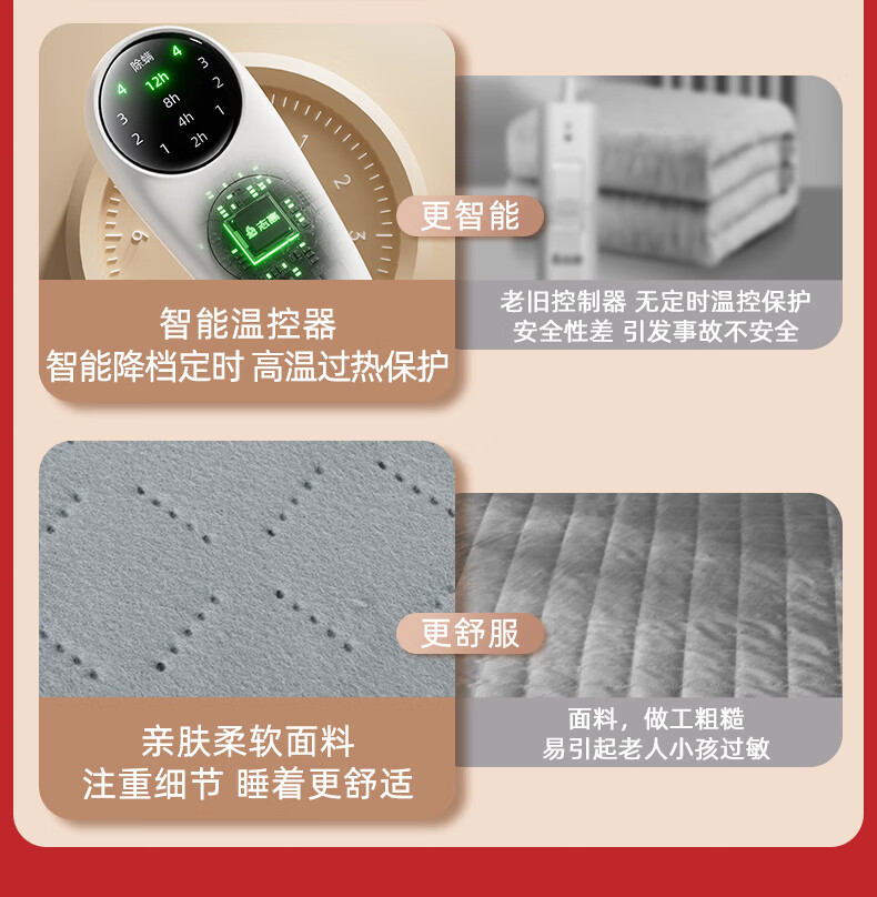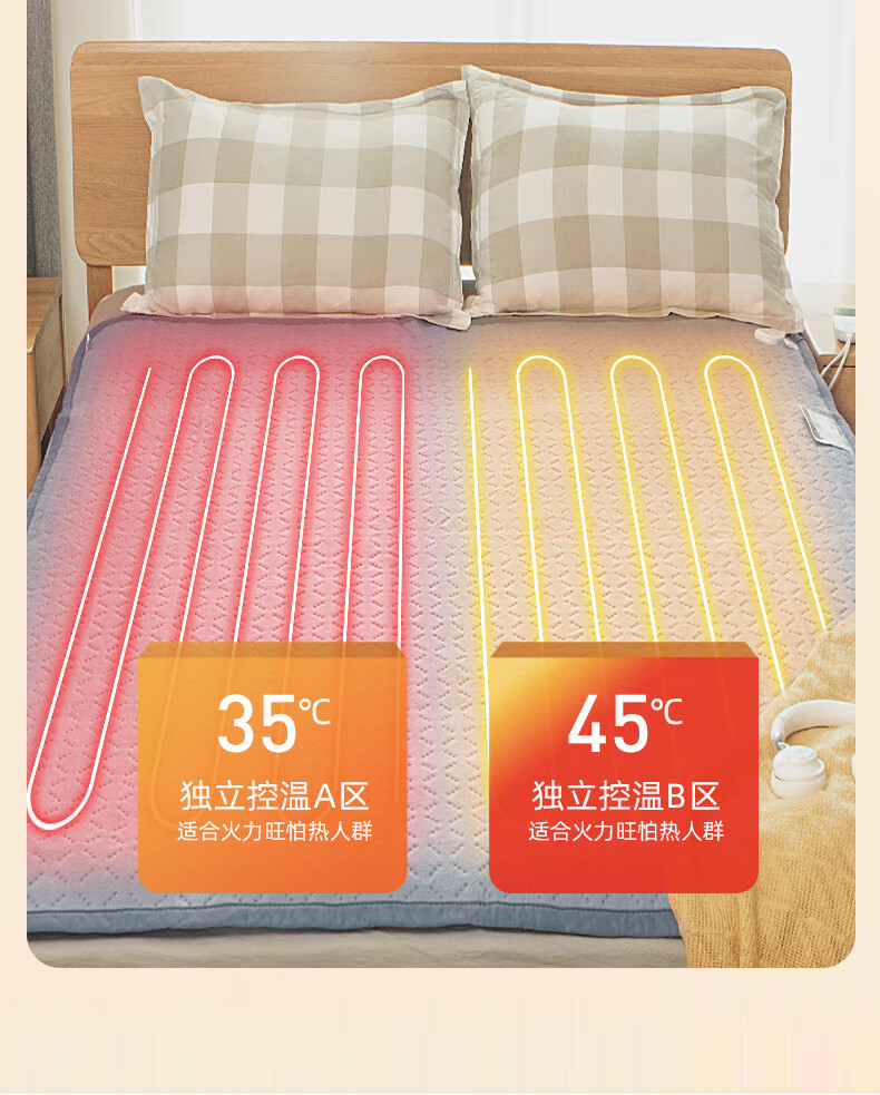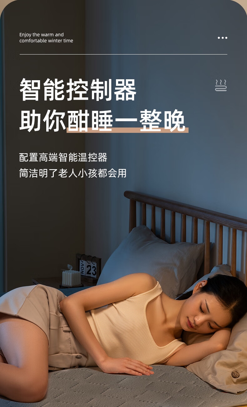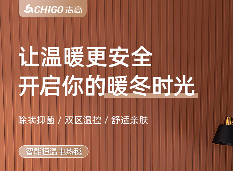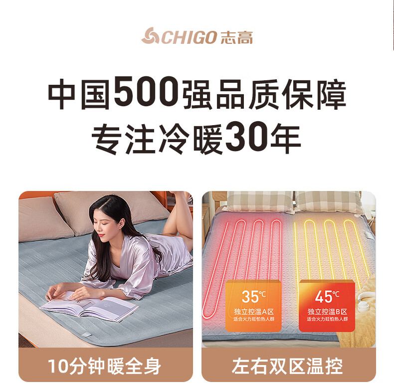 积分免费兑:志高(CHIGO)双人智能定时双温双控无纺布电热毯电褥子2m*1.8m【排潮除螨】