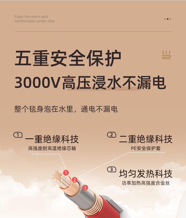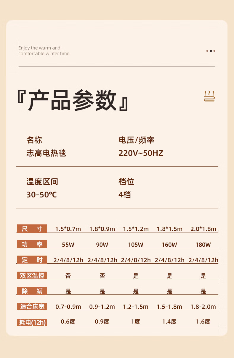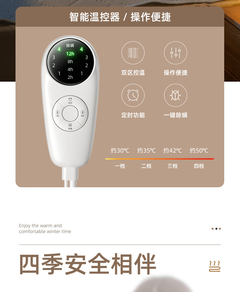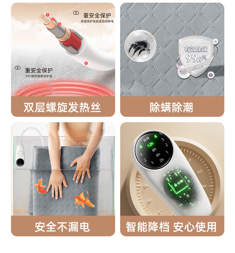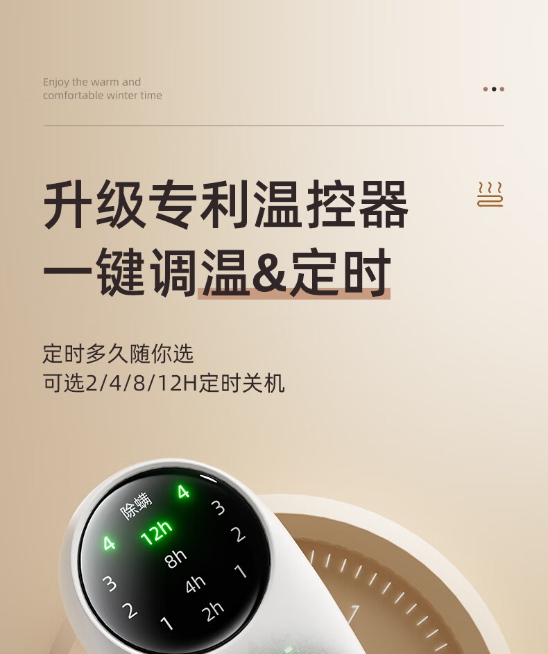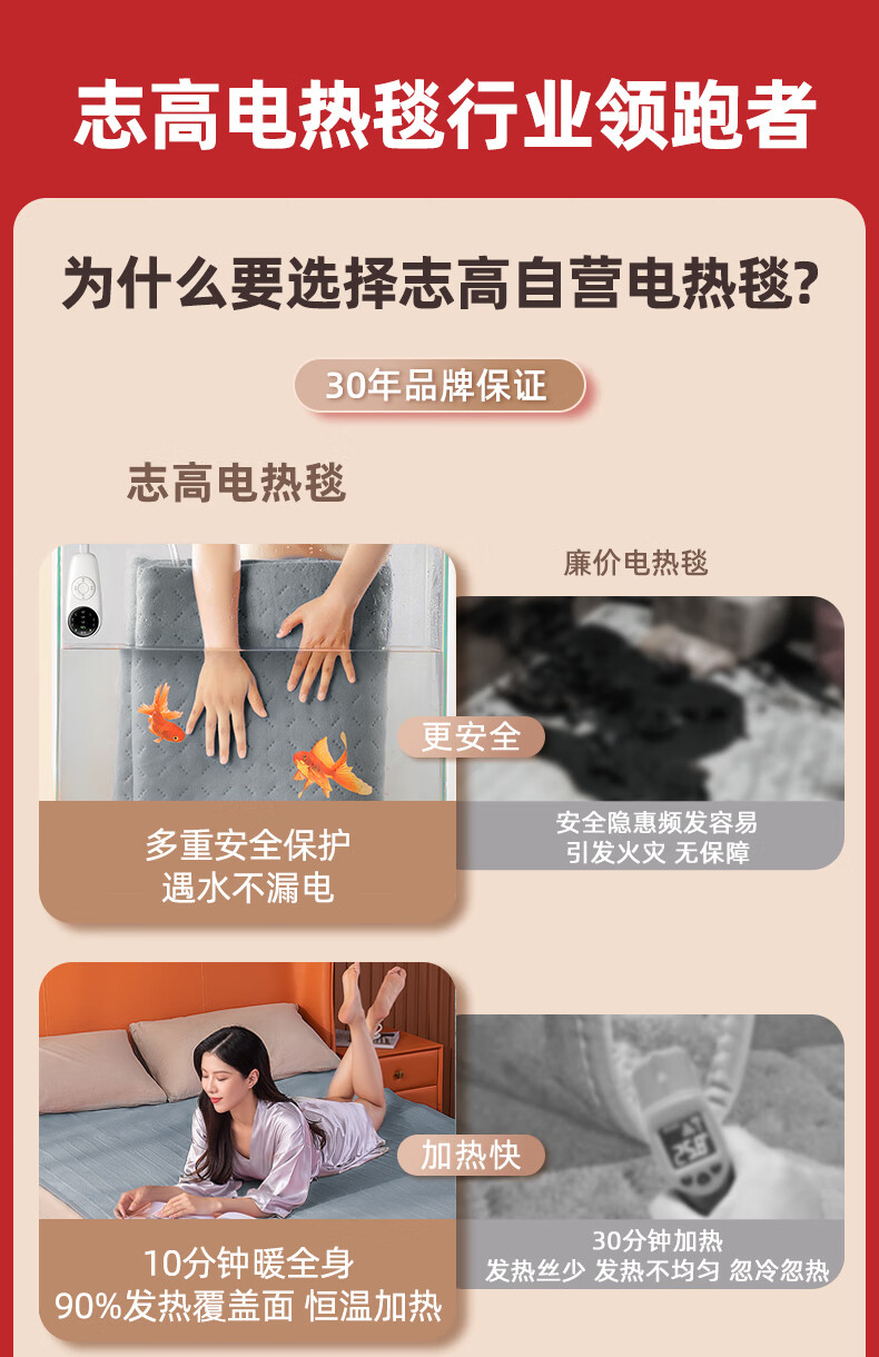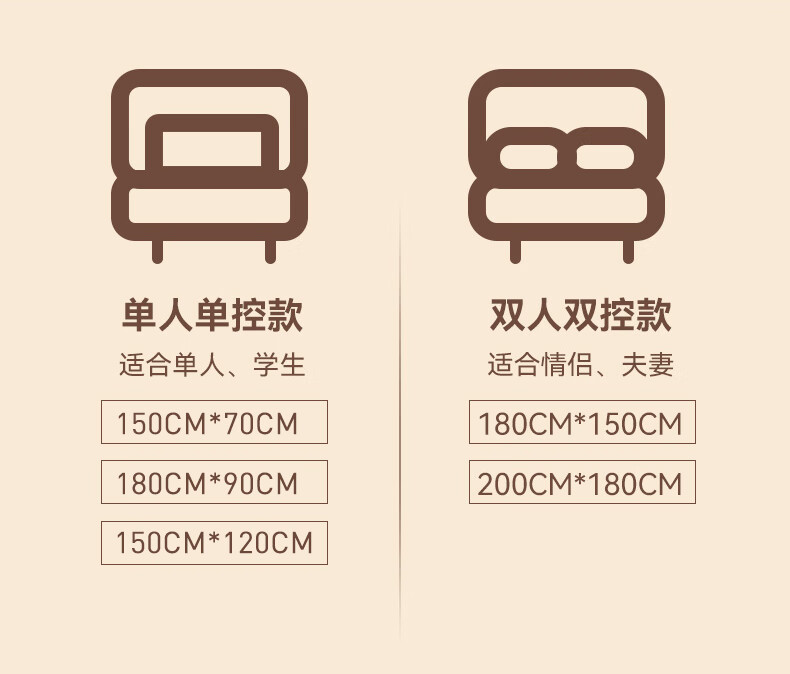 积分免费兑:志高(CHIGO)双人智能定时双温双控无纺布电热毯电褥子2m*1.8m【排潮除螨】