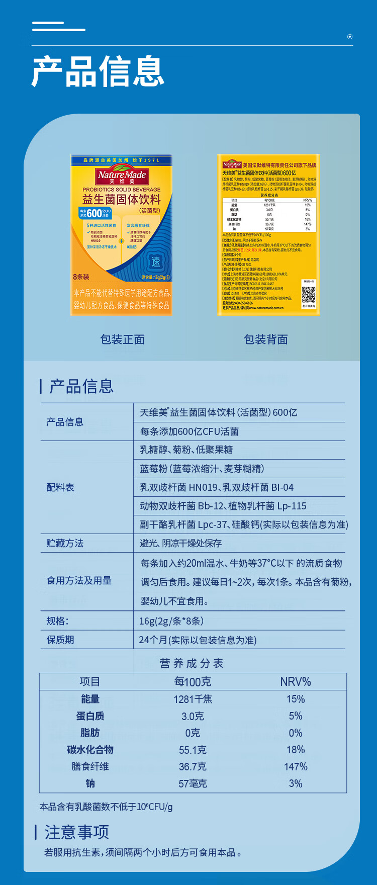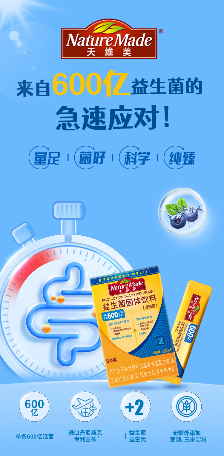 天维美(NatureMade)益生菌固体饮料(活菌型)600 亿 8条/盒