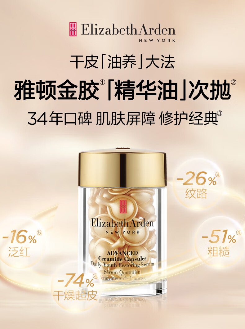 伊丽莎白雅顿 时空焕活夜间多效胶囊精华14ml(金色胶囊)
