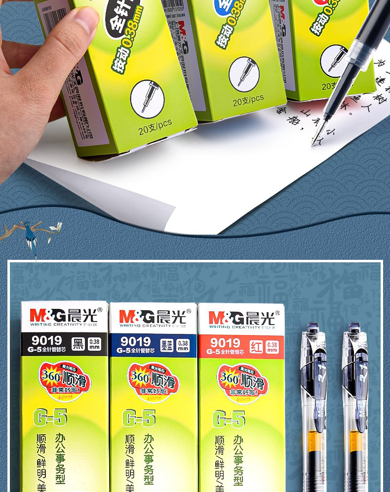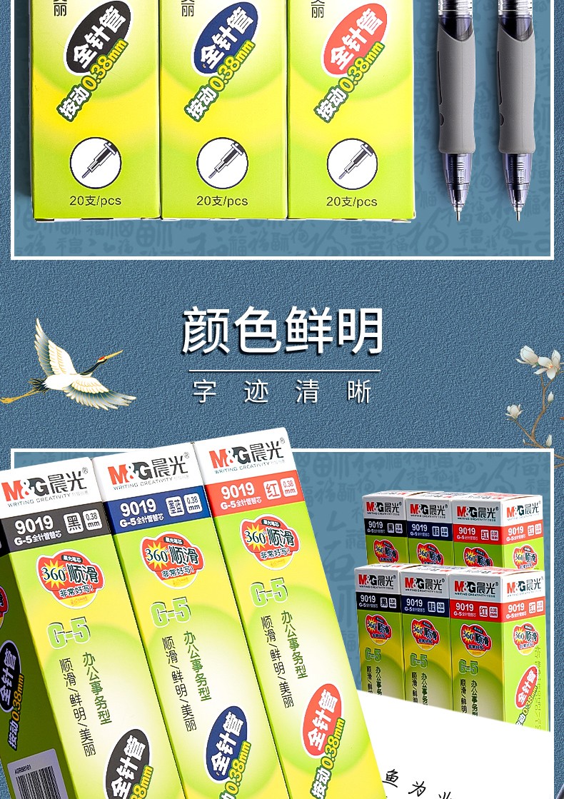 【仅供集采】晨光G-5按动笔芯中性笔笔芯黑色笔/红色/蓝色240支盒水性笔签字笔0.5mm高颜值按压式