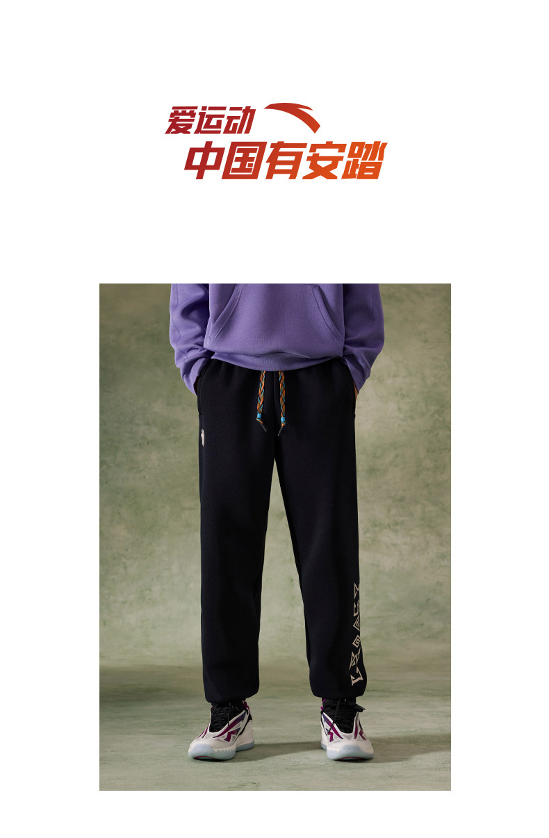 安踏凯里欧文潮流美式运动卫裤男休闲正品黑色裤子女款172611305S
