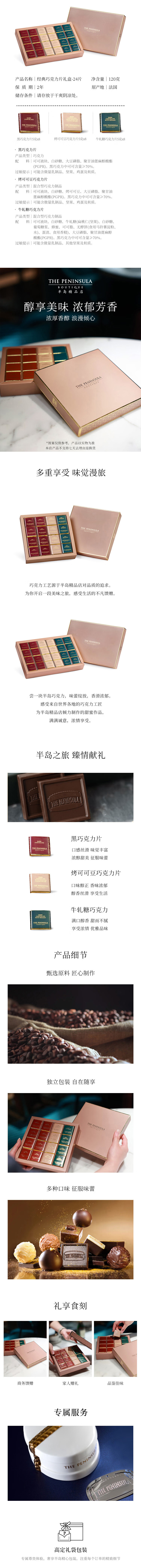 香港半岛 The Peninsula 经典巧克力片礼盒 24片装 120g 香港零食送礼
