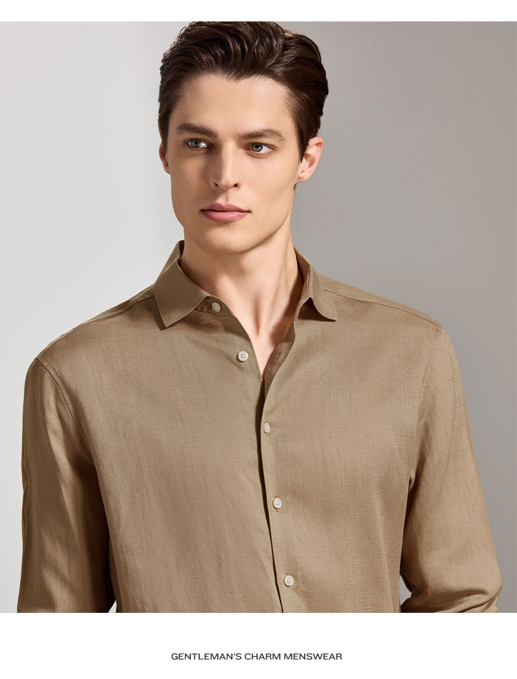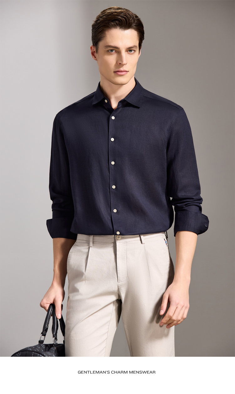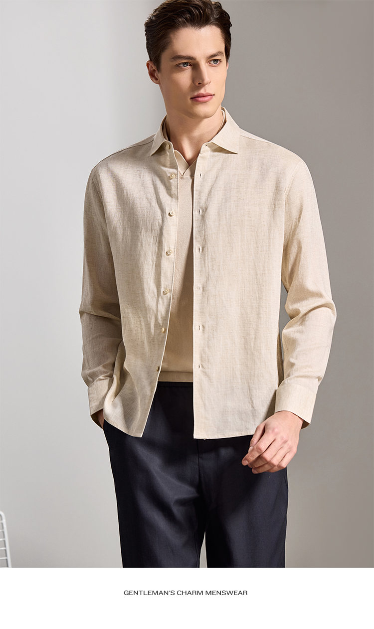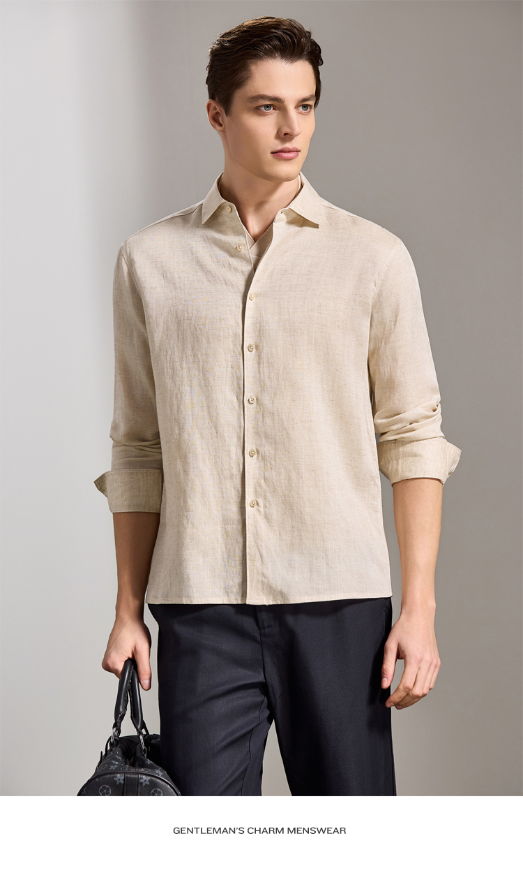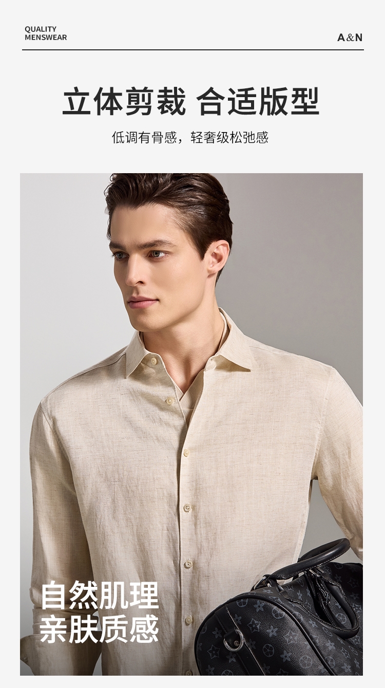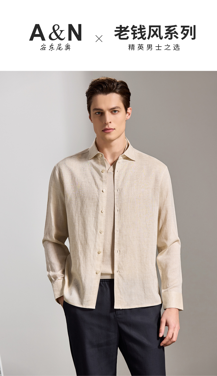 安东尼奥A&N 【棉+亚麻】春季新款男士长袖衬衫商务纯色亲肤老钱风通勤衬衣7243149
