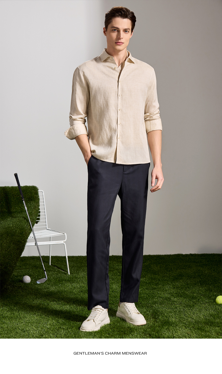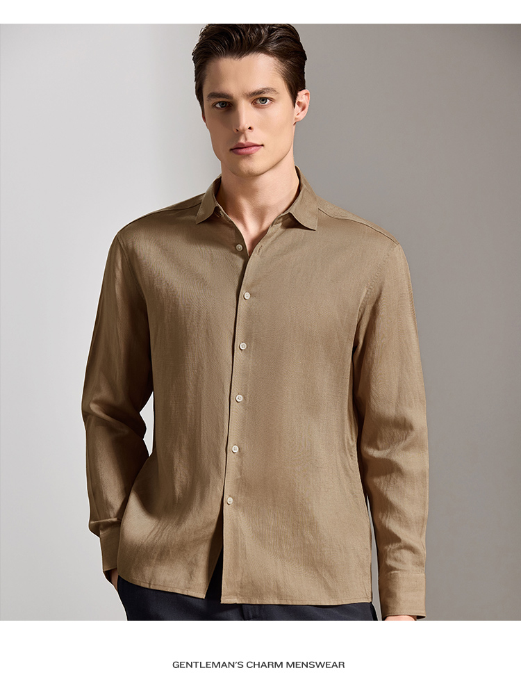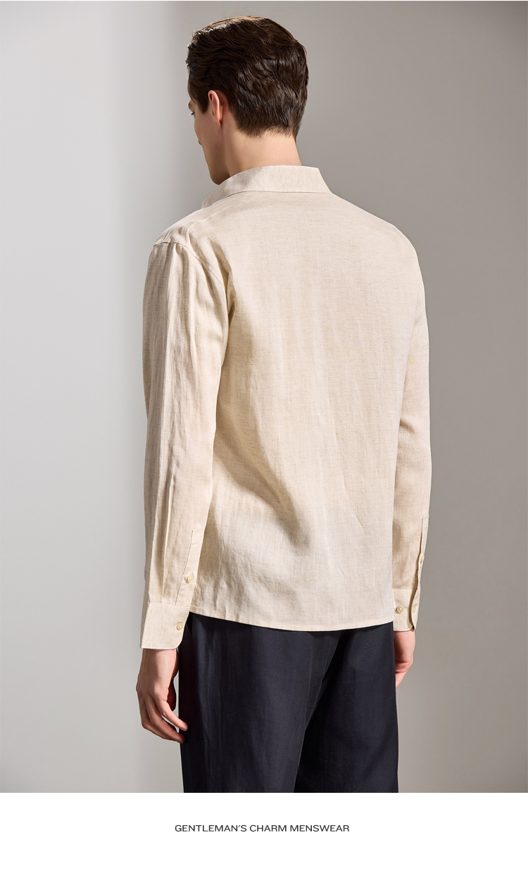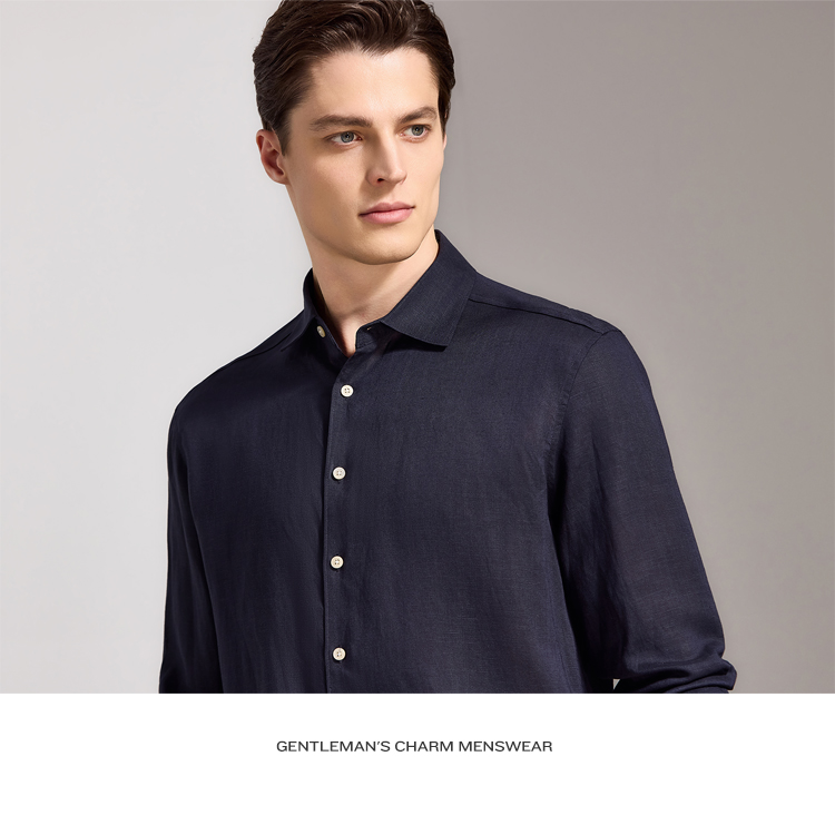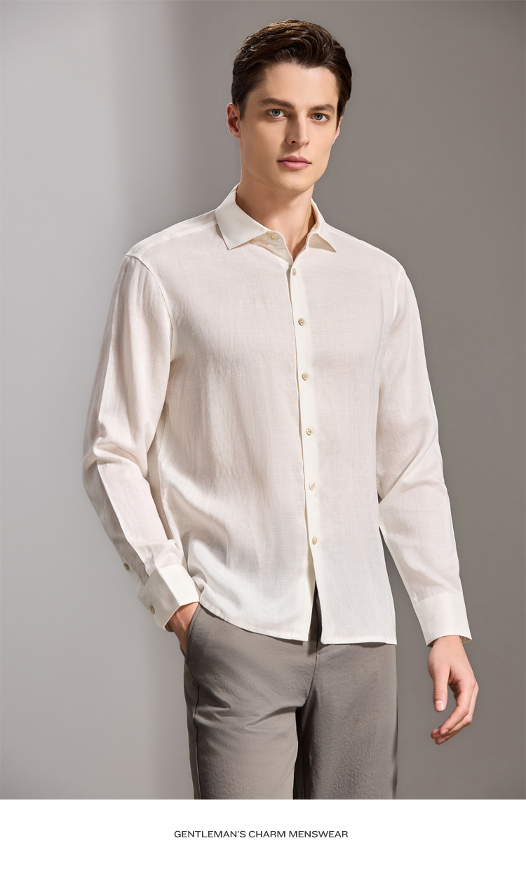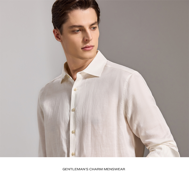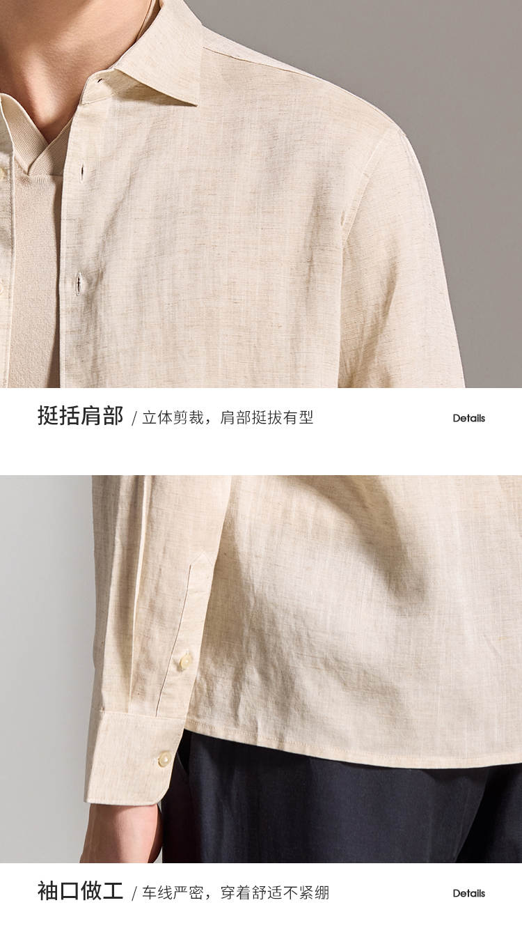 安东尼奥A&N 【棉+亚麻】春季新款男士长袖衬衫商务纯色亲肤老钱风通勤衬衣7243149