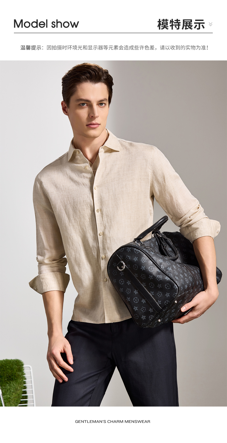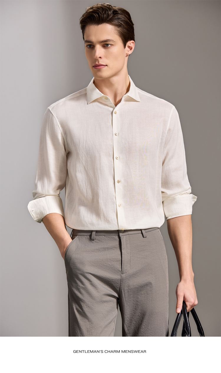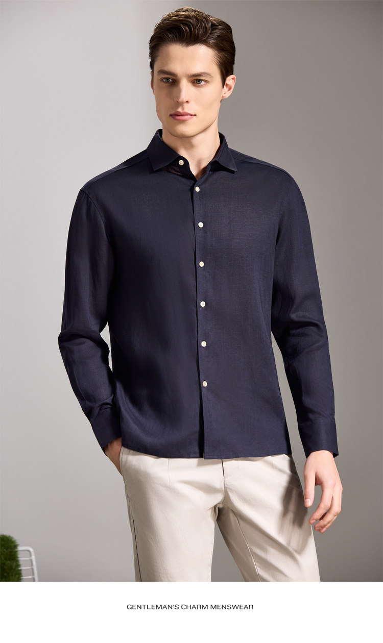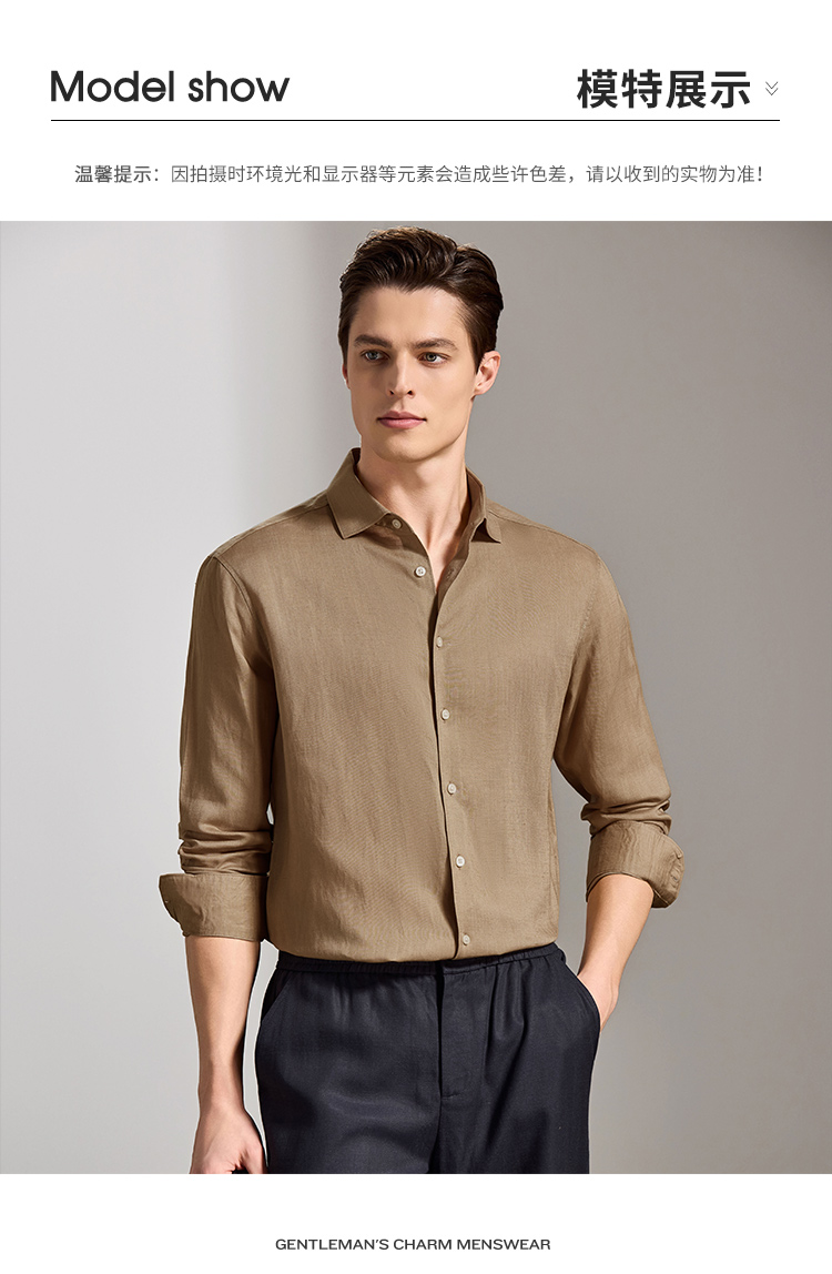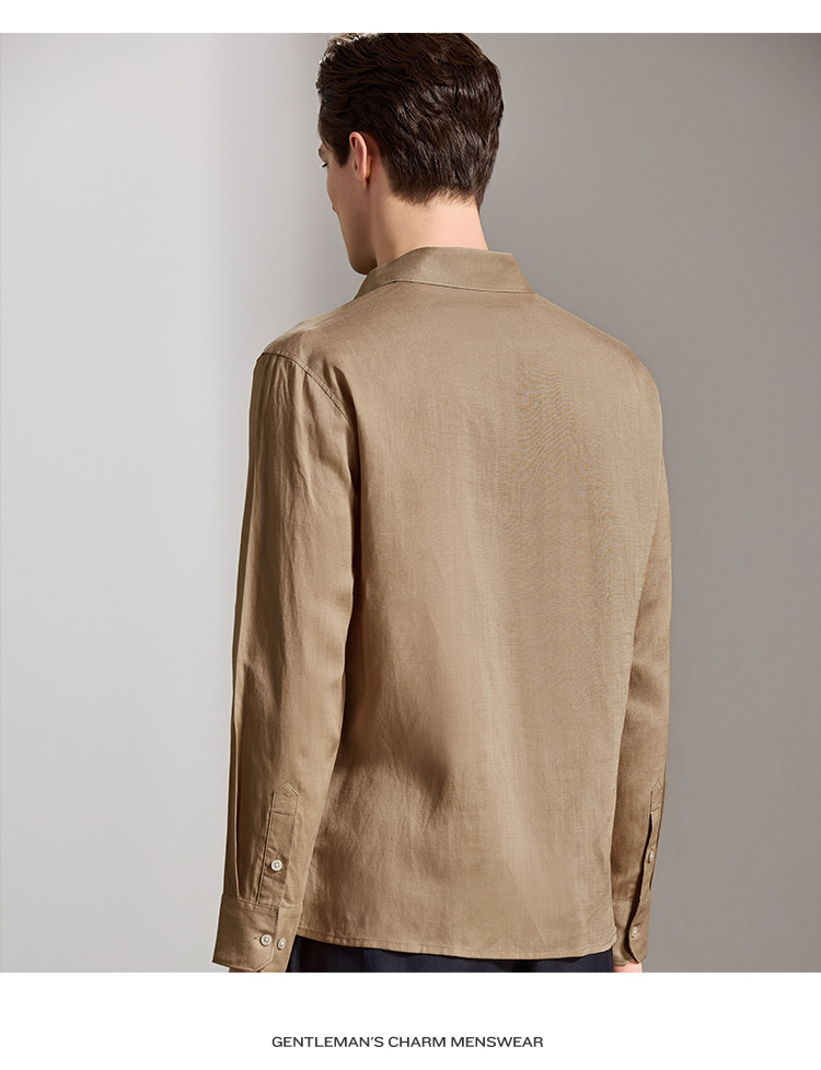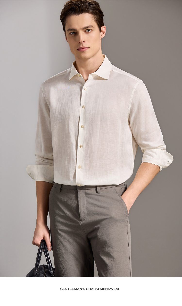 安东尼奥A&N 【棉+亚麻】春季新款男士长袖衬衫商务纯色亲肤老钱风通勤衬衣7243149