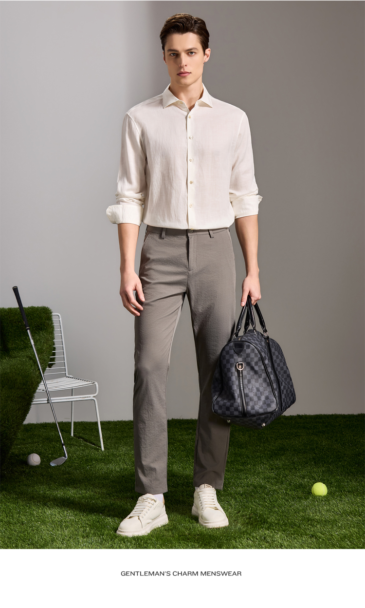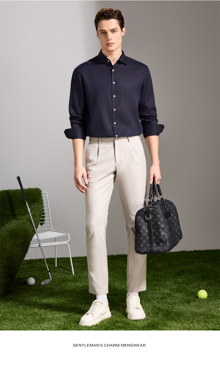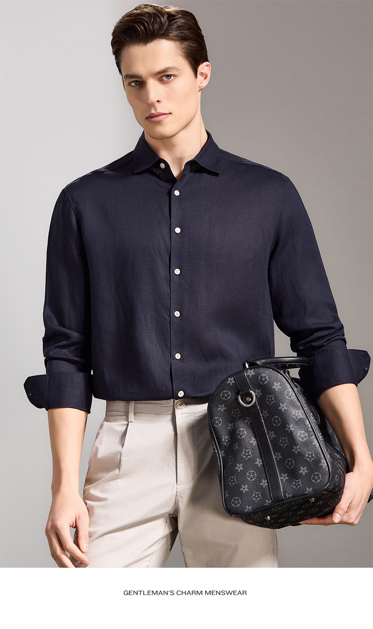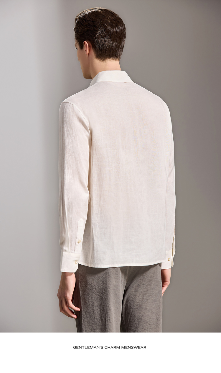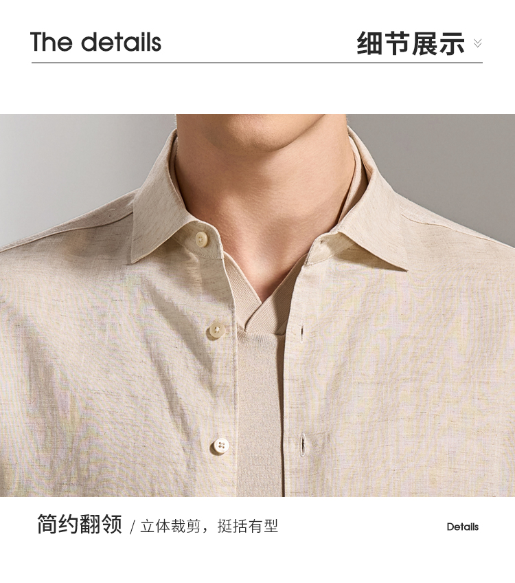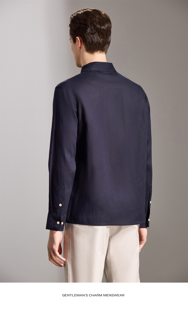 安东尼奥A&N 【棉+亚麻】春季新款男士长袖衬衫商务纯色亲肤老钱风通勤衬衣7243149