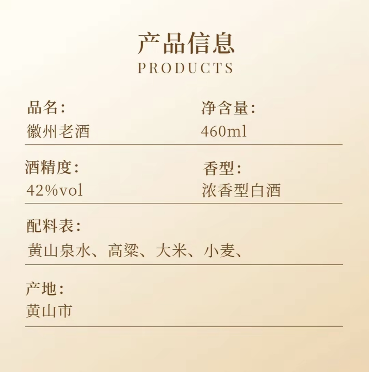 优选丨黄山礼滴滴粮香42°500ML6瓶/箱 黄山礼洞藏42°500ML6瓶/箱 徽州老酒42°460ML6瓶/箱 特殊商品一经发出,不支持7天无理由退换货!!!