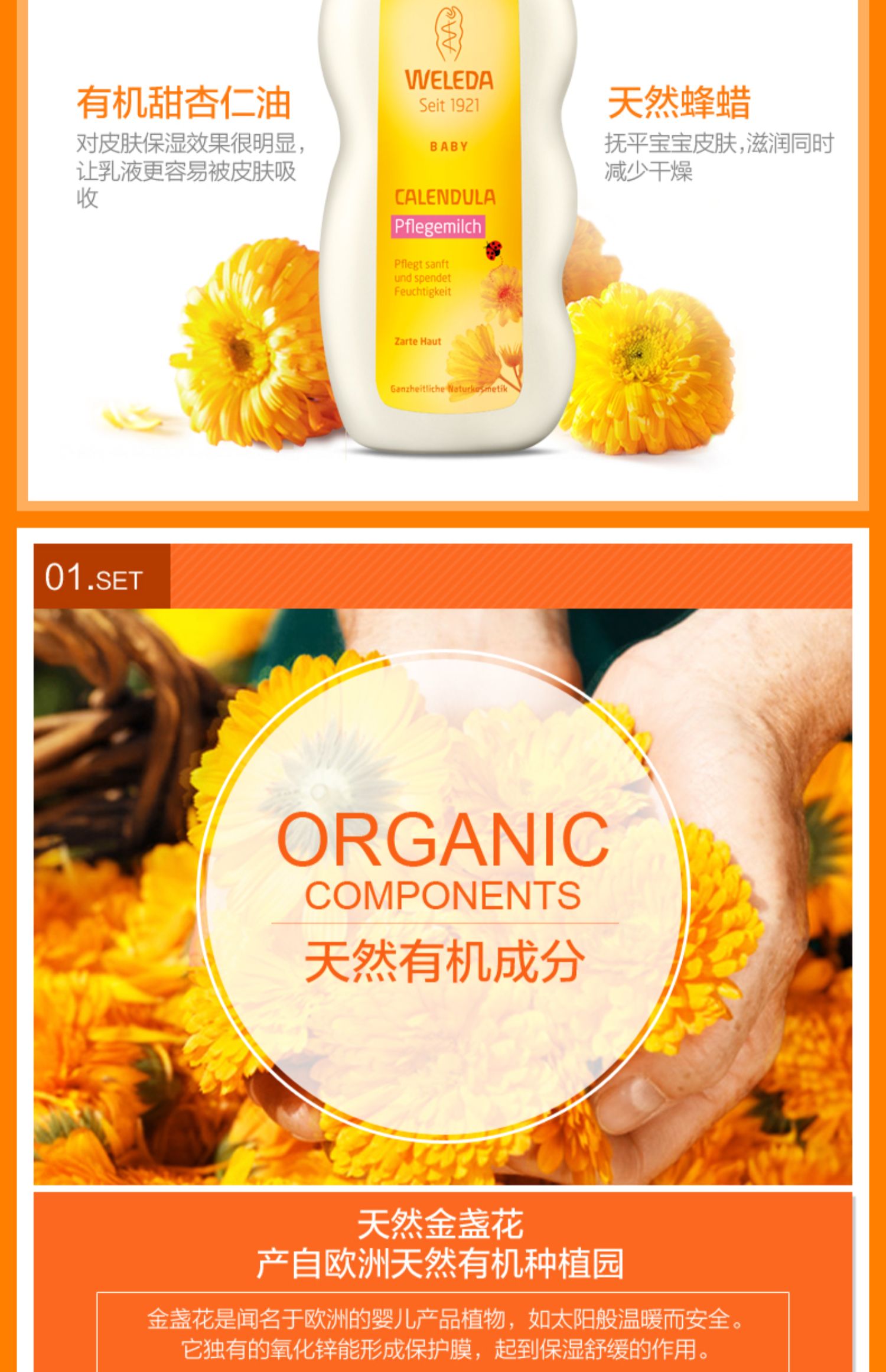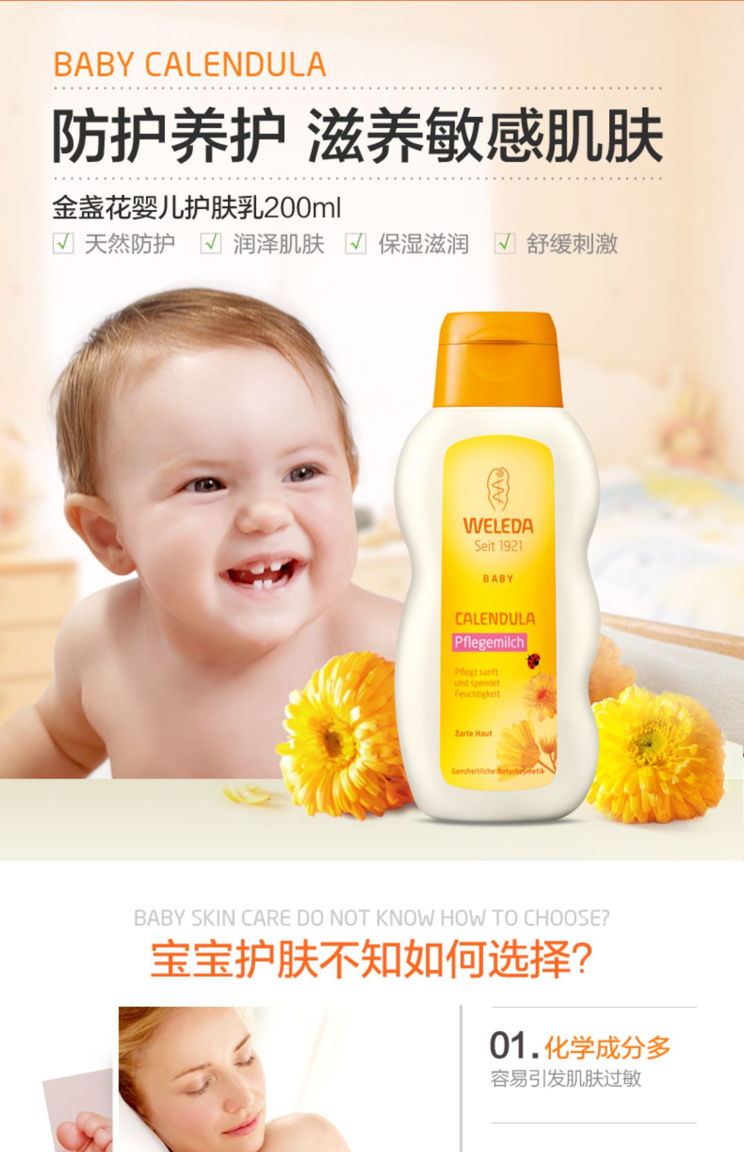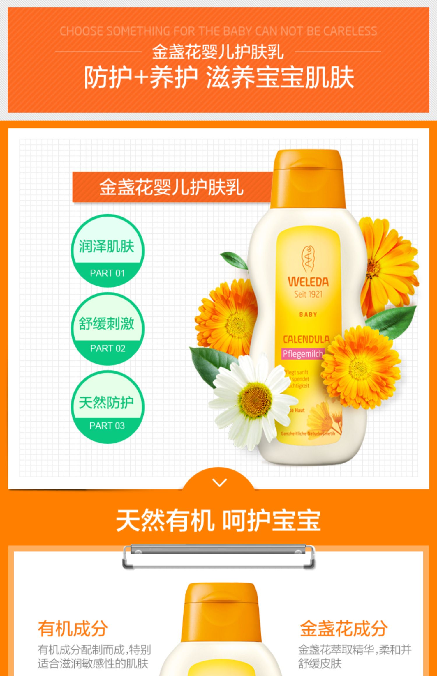 【保税仓】德国WELEDA维蕾德金盏花婴儿润肤乳200毫升