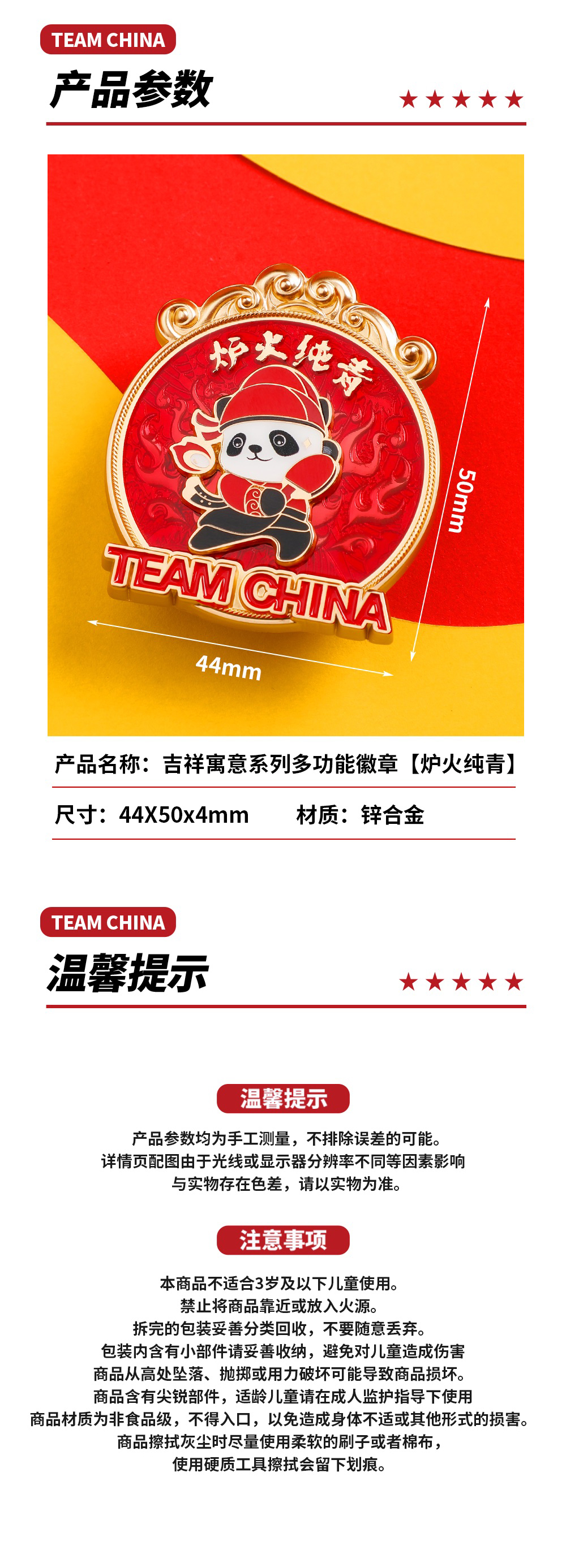 吉祥寓意系列多功能徽章-力劈华山/日行千里/炉火纯青