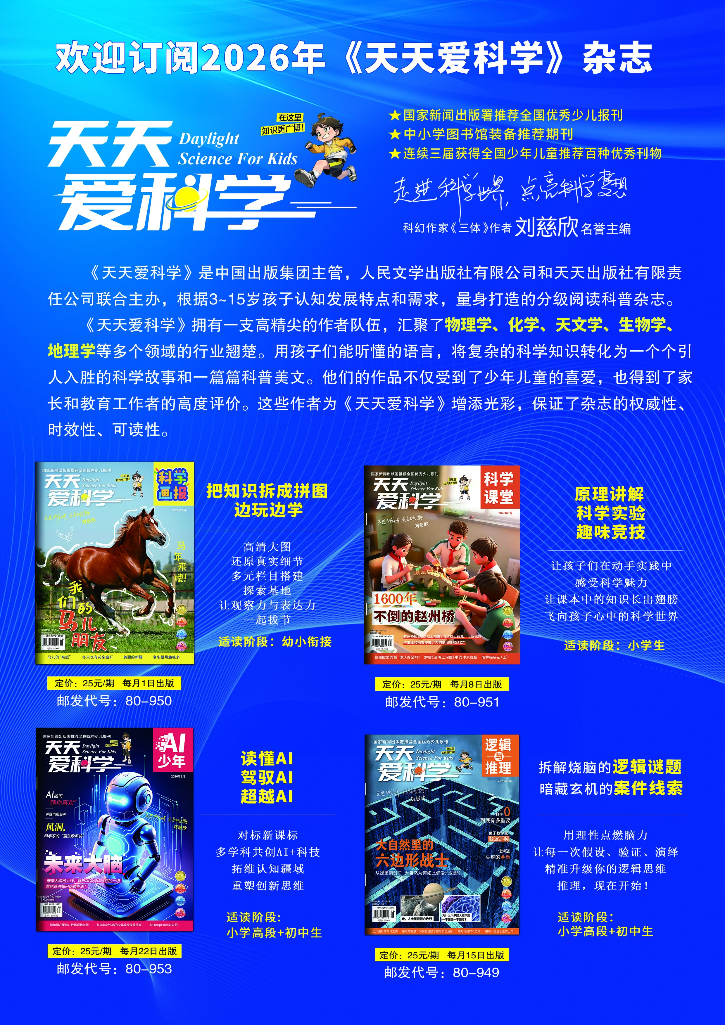 《天天爱科学》科学启蒙2026年1月期开始更名为《天天爱科学》科学画报;
