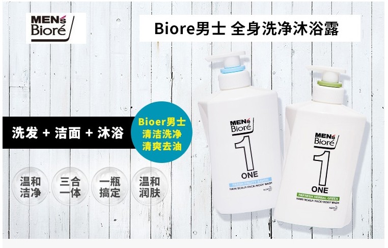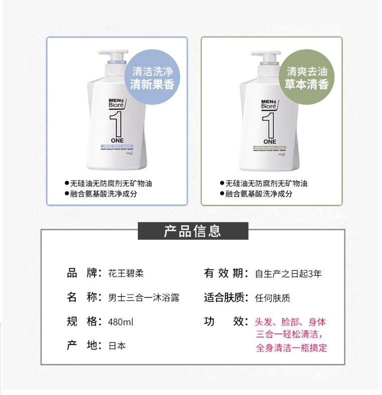 【保税仓】Biore碧柔男士洁面乳沐浴露三合一保湿花香味480ml/瓶