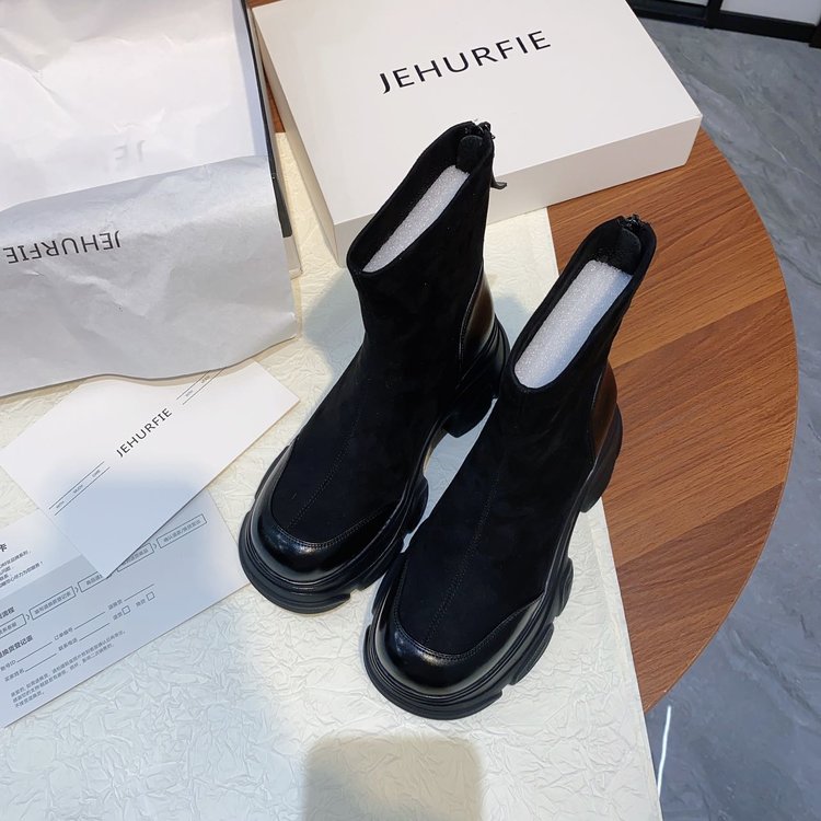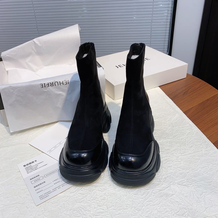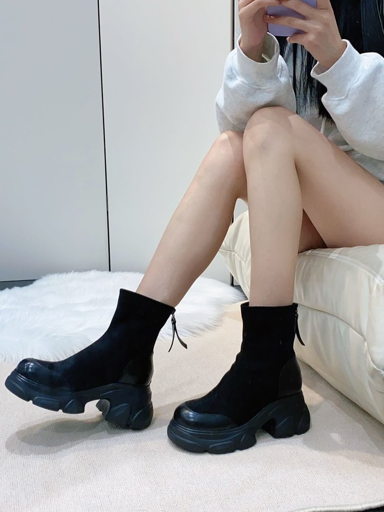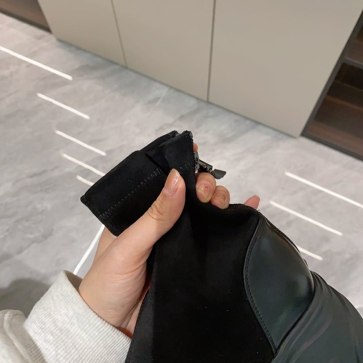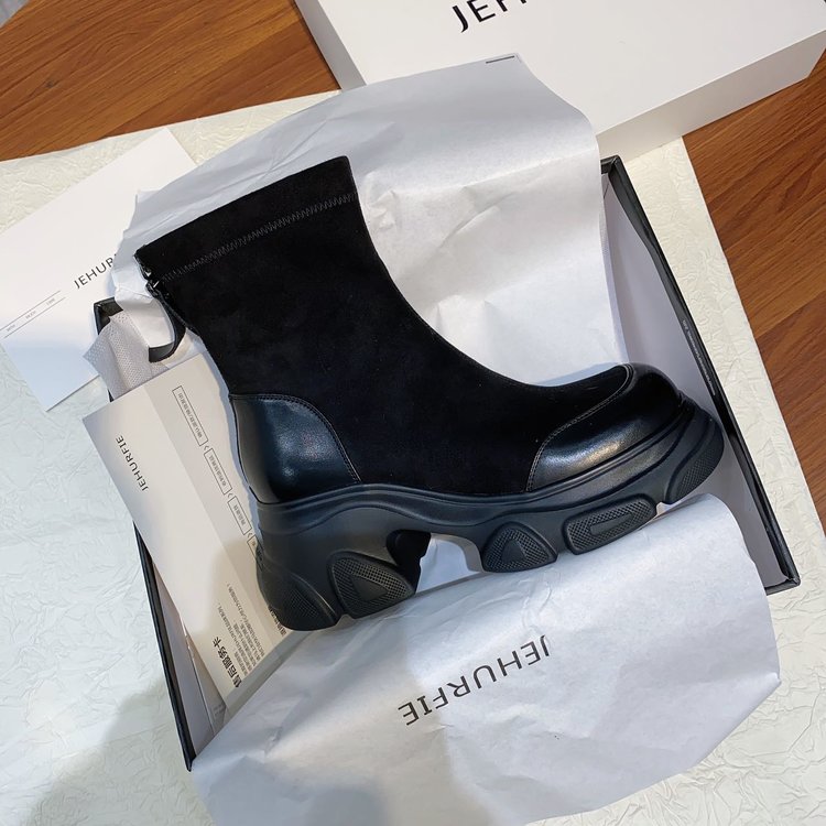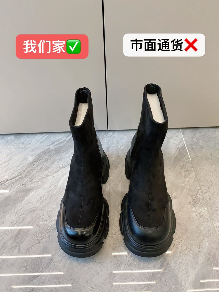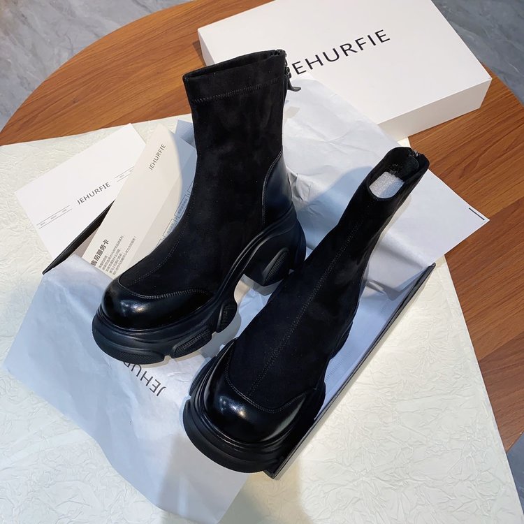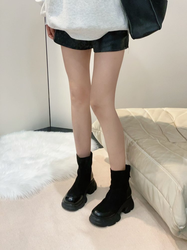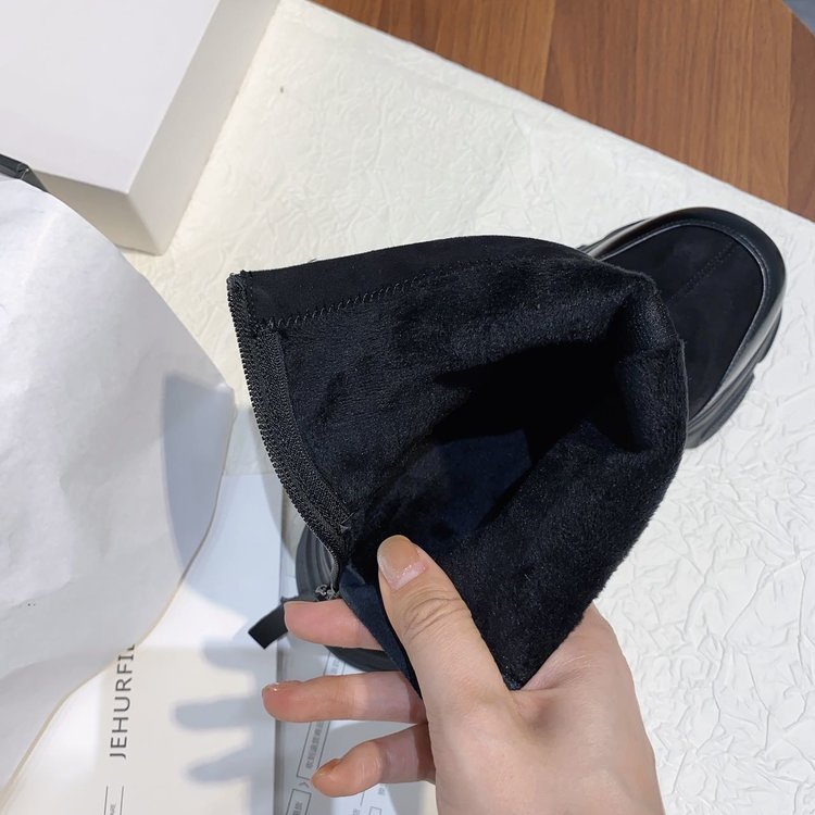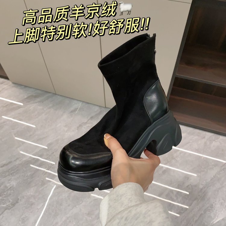 卢昱晓同款厚底羊京绒弹力瘦瘦靴