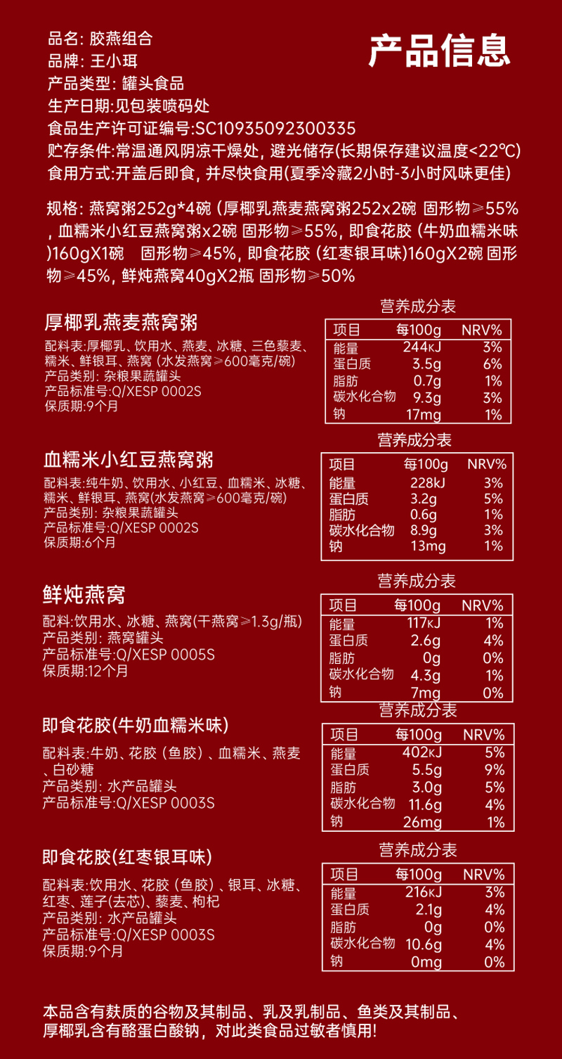严选 | 王小珥胶燕组合礼盒 燕窝粥252g*4碗+花胶160g*3碗+鲜炖燕窝40g*2
