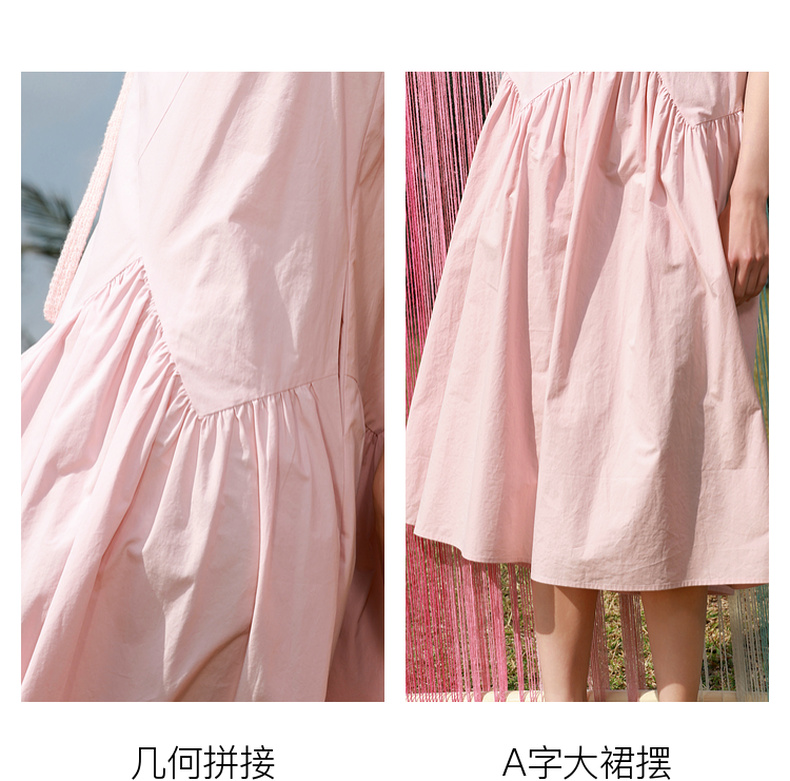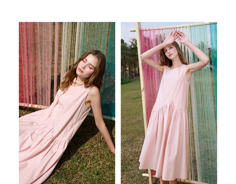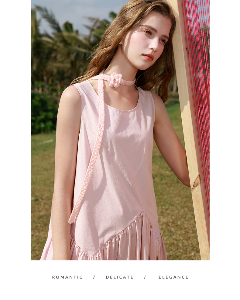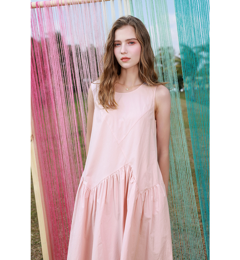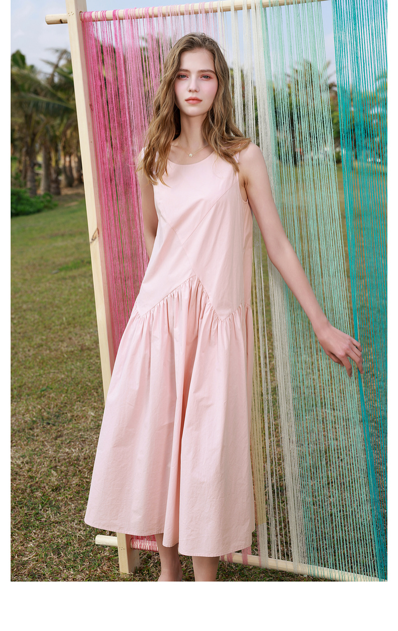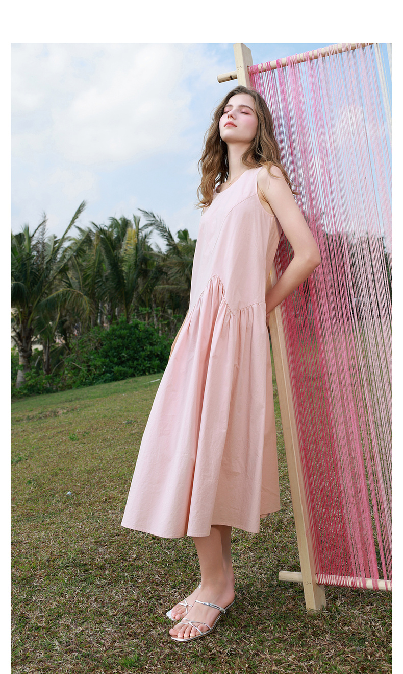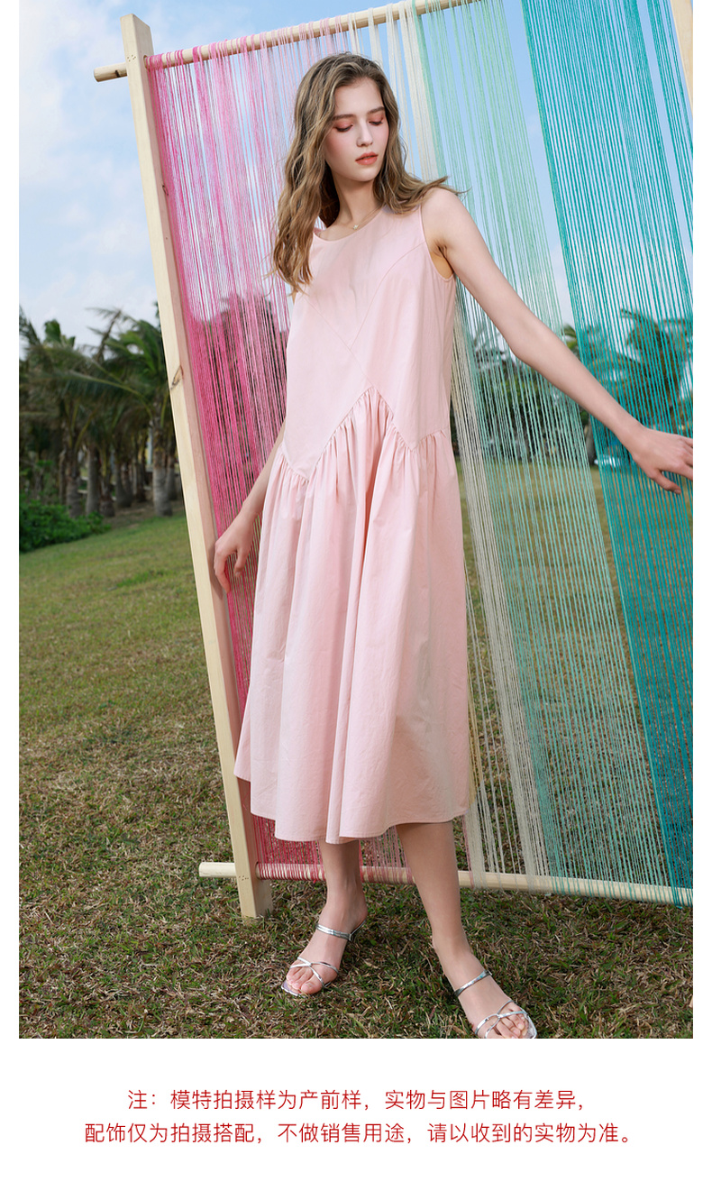 三彩2025秋季新款纯棉连衣裙圆领无袖A字裙宽松长裙简约M