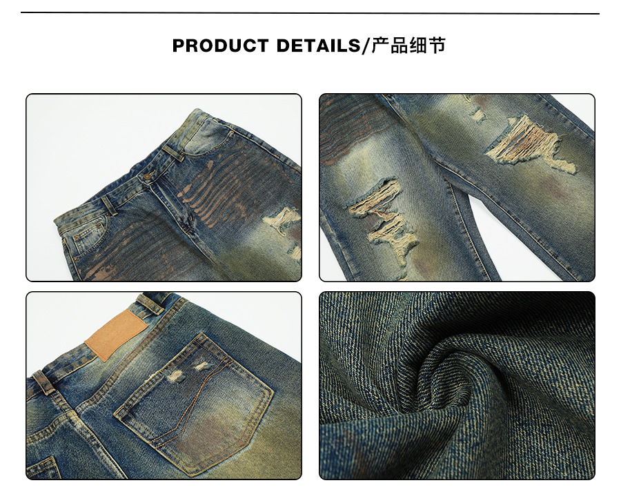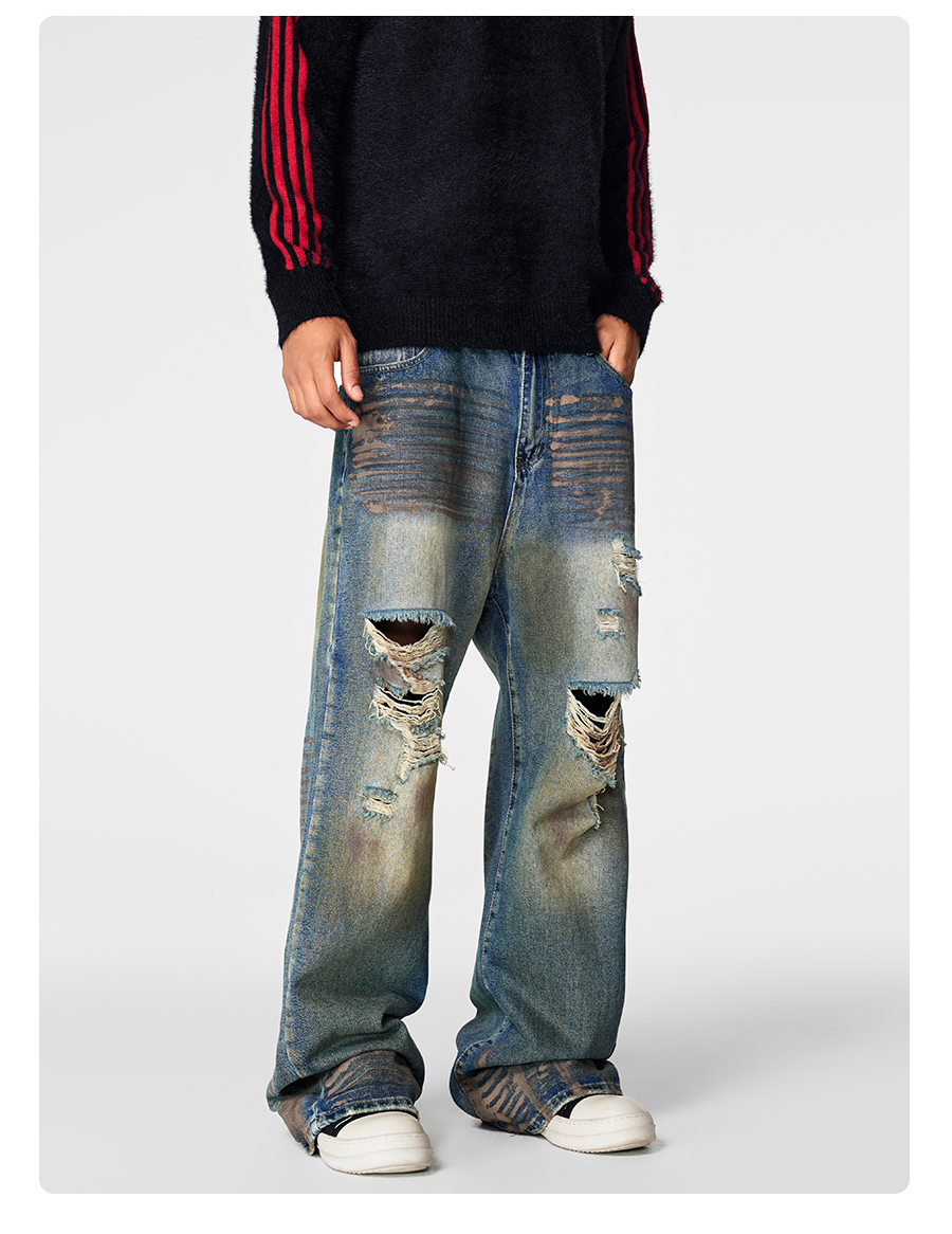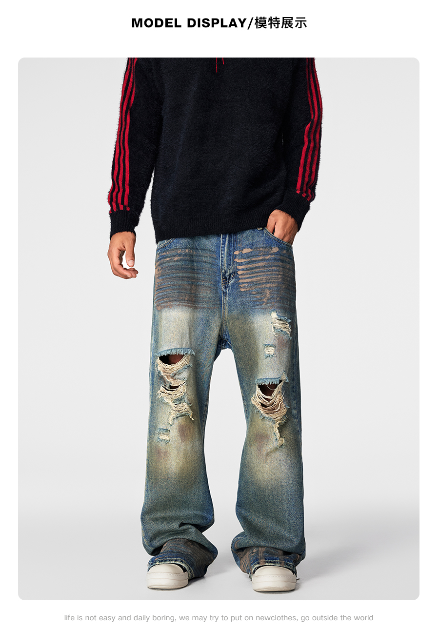 【Achock官方店】复古做旧破洞直筒牛仔裤男新款美式高街vibe裤子