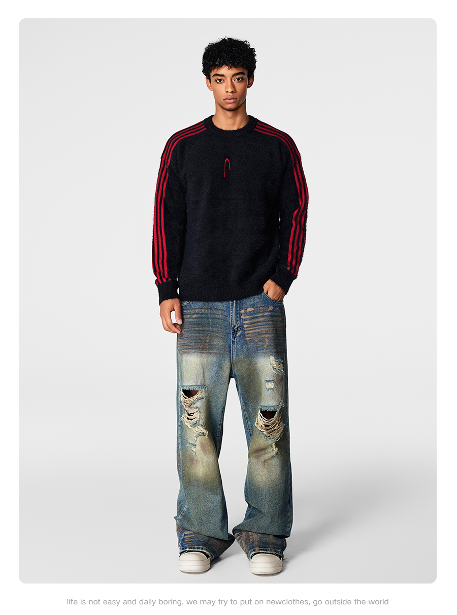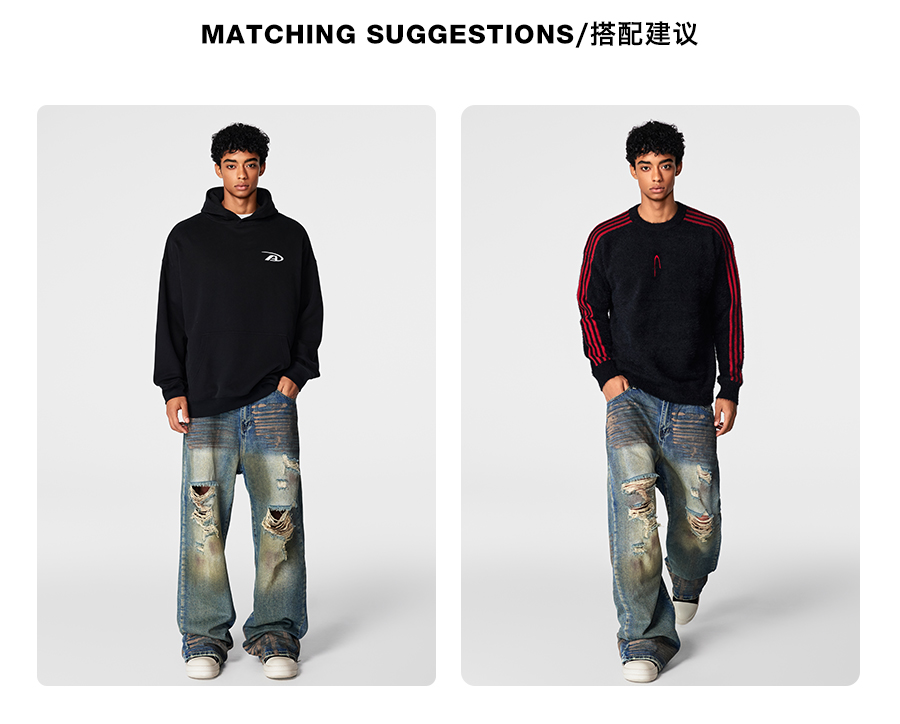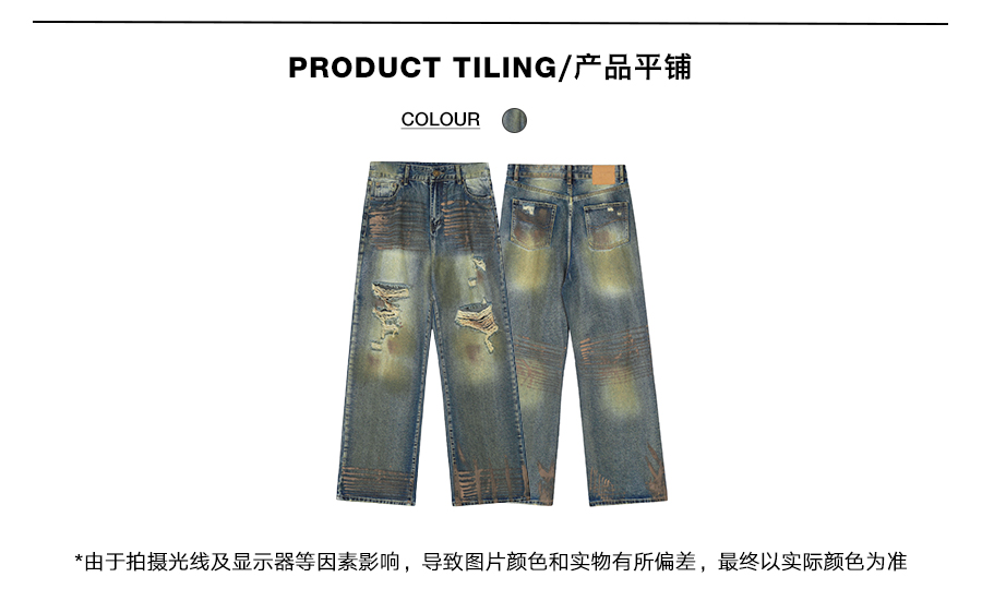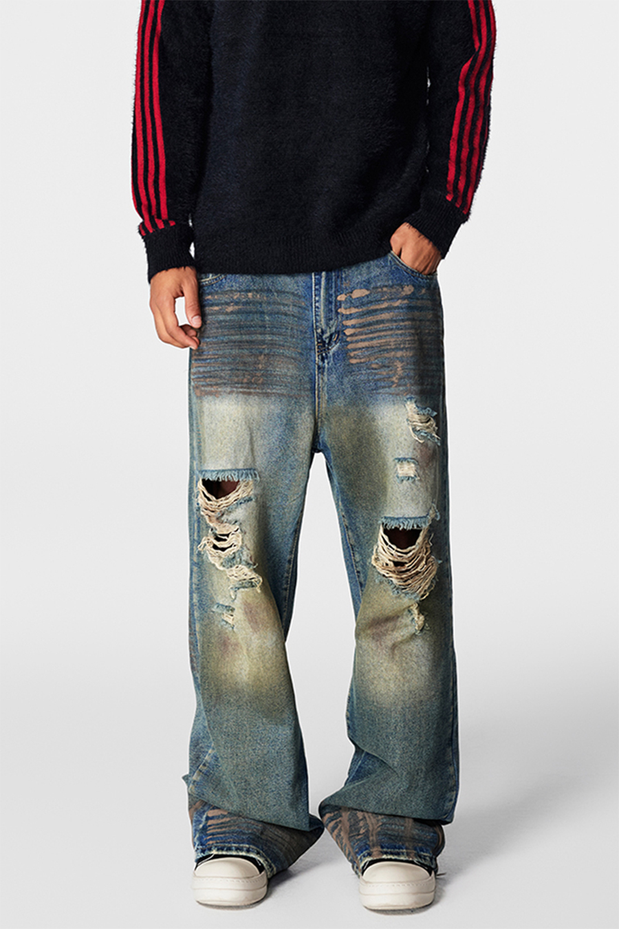 【Achock官方店】复古做旧破洞直筒牛仔裤男新款美式高街vibe裤子