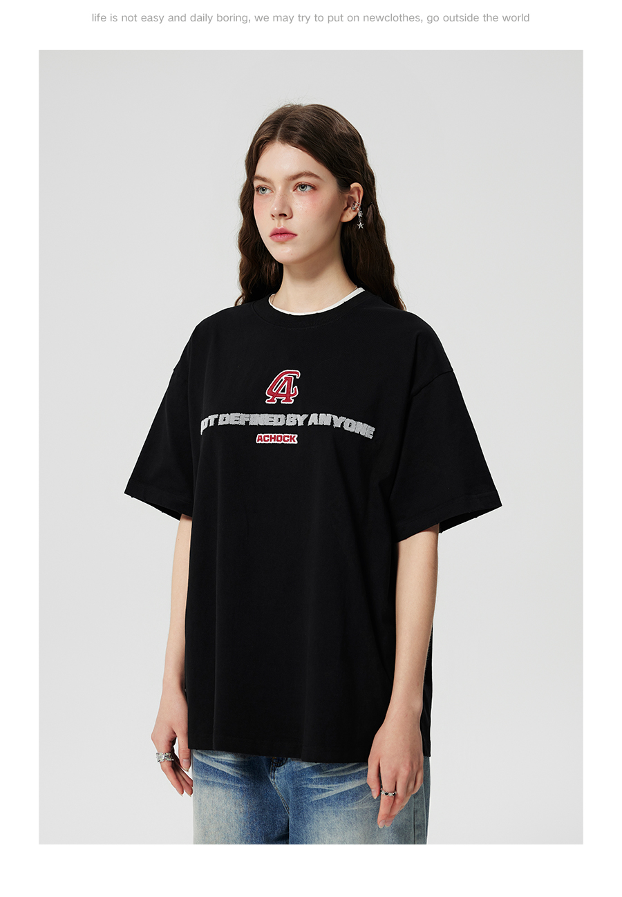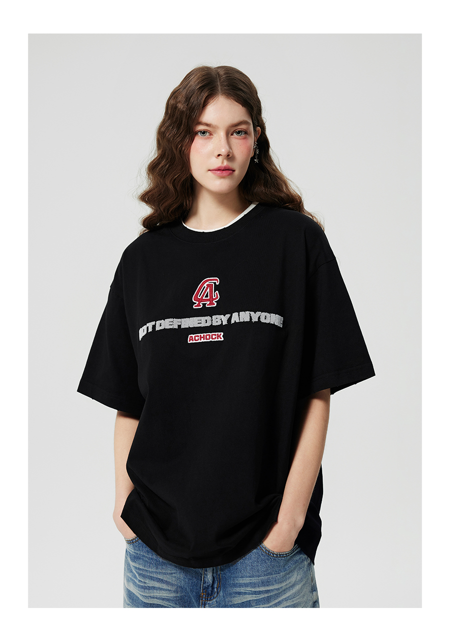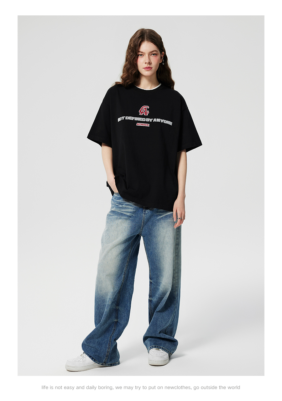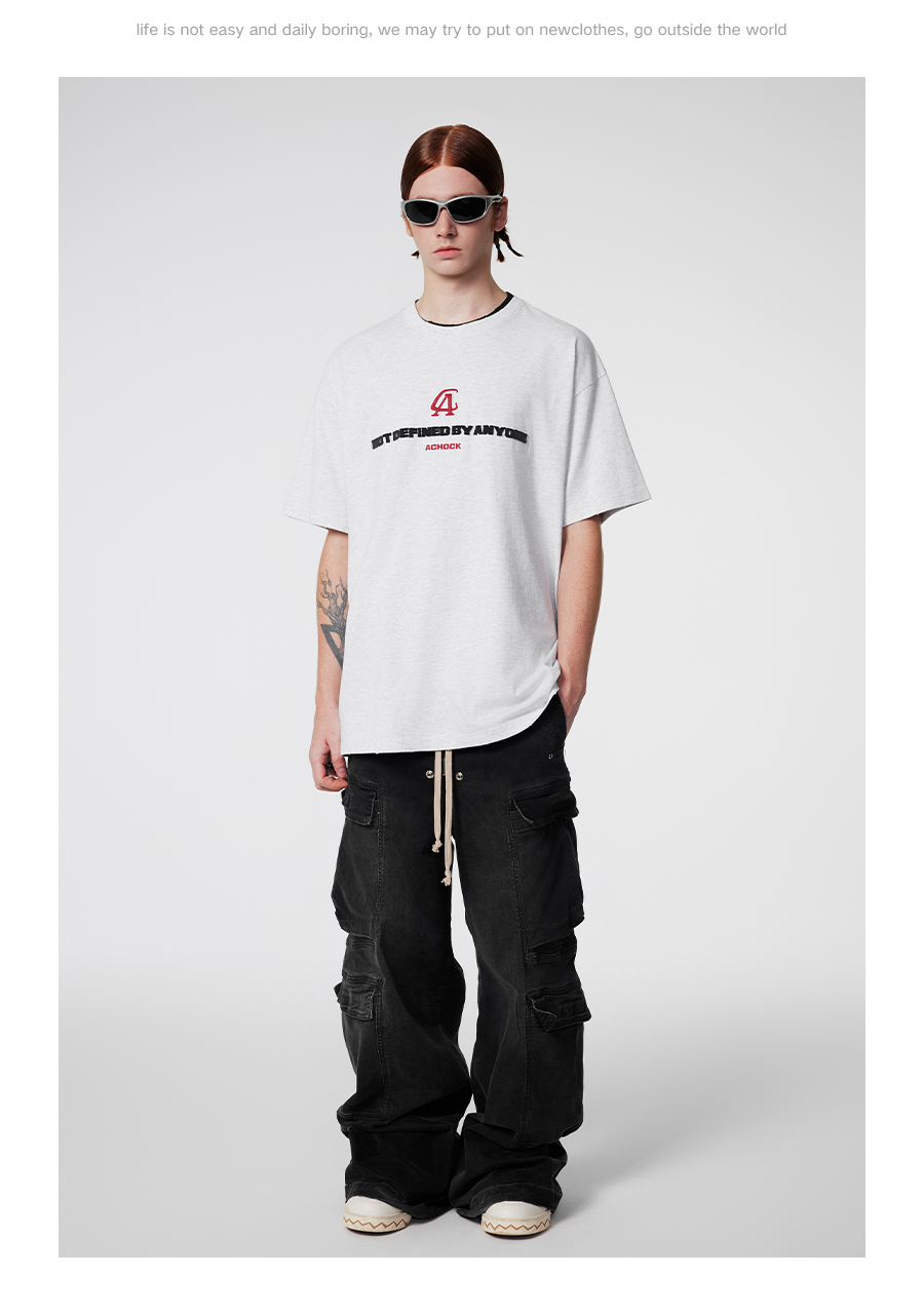 【2024SS新款】潮牌重磅字母印花打底T恤美式高克重圆领短袖男