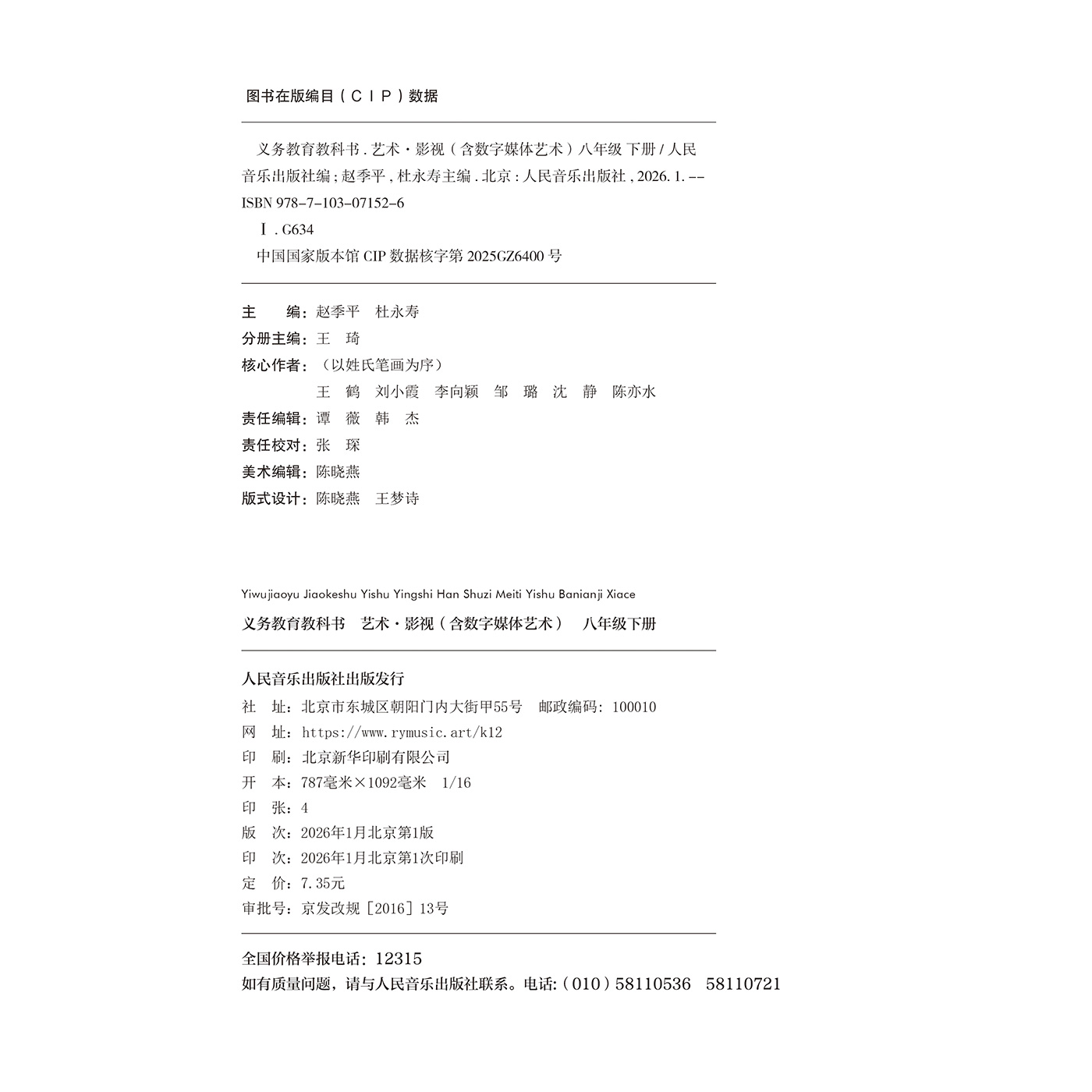 义务教育教科书 艺术·影视(含数字媒体艺术) 八年级 下册