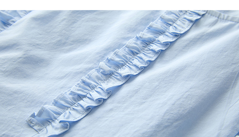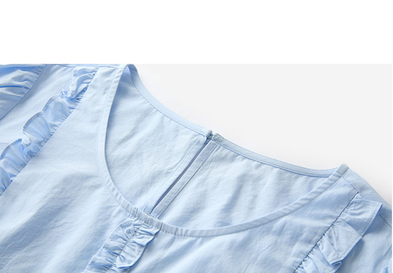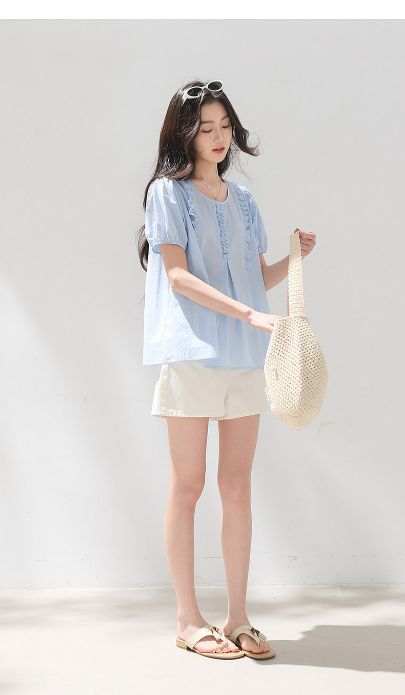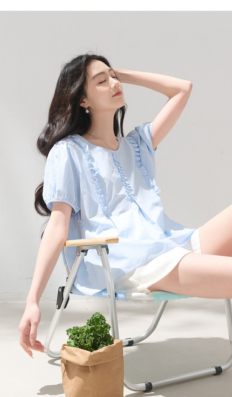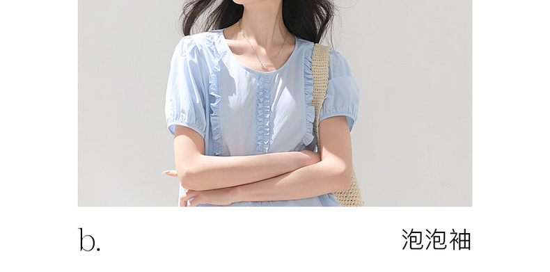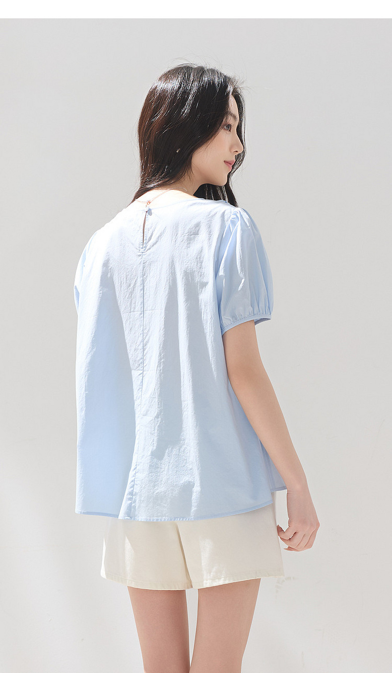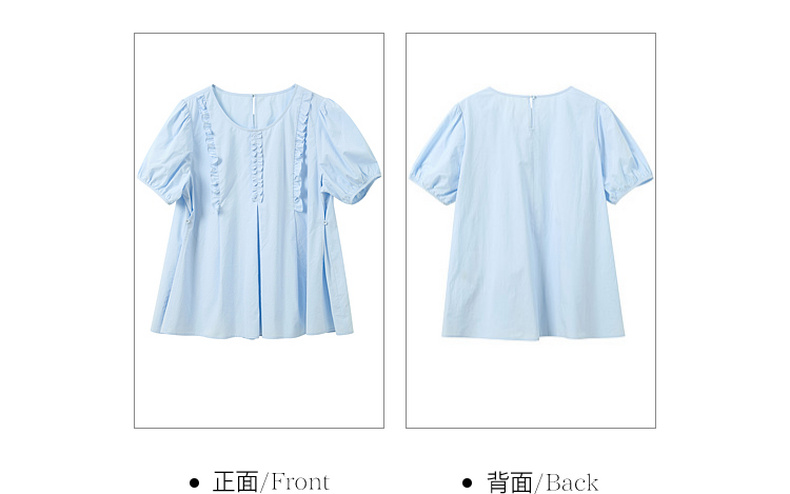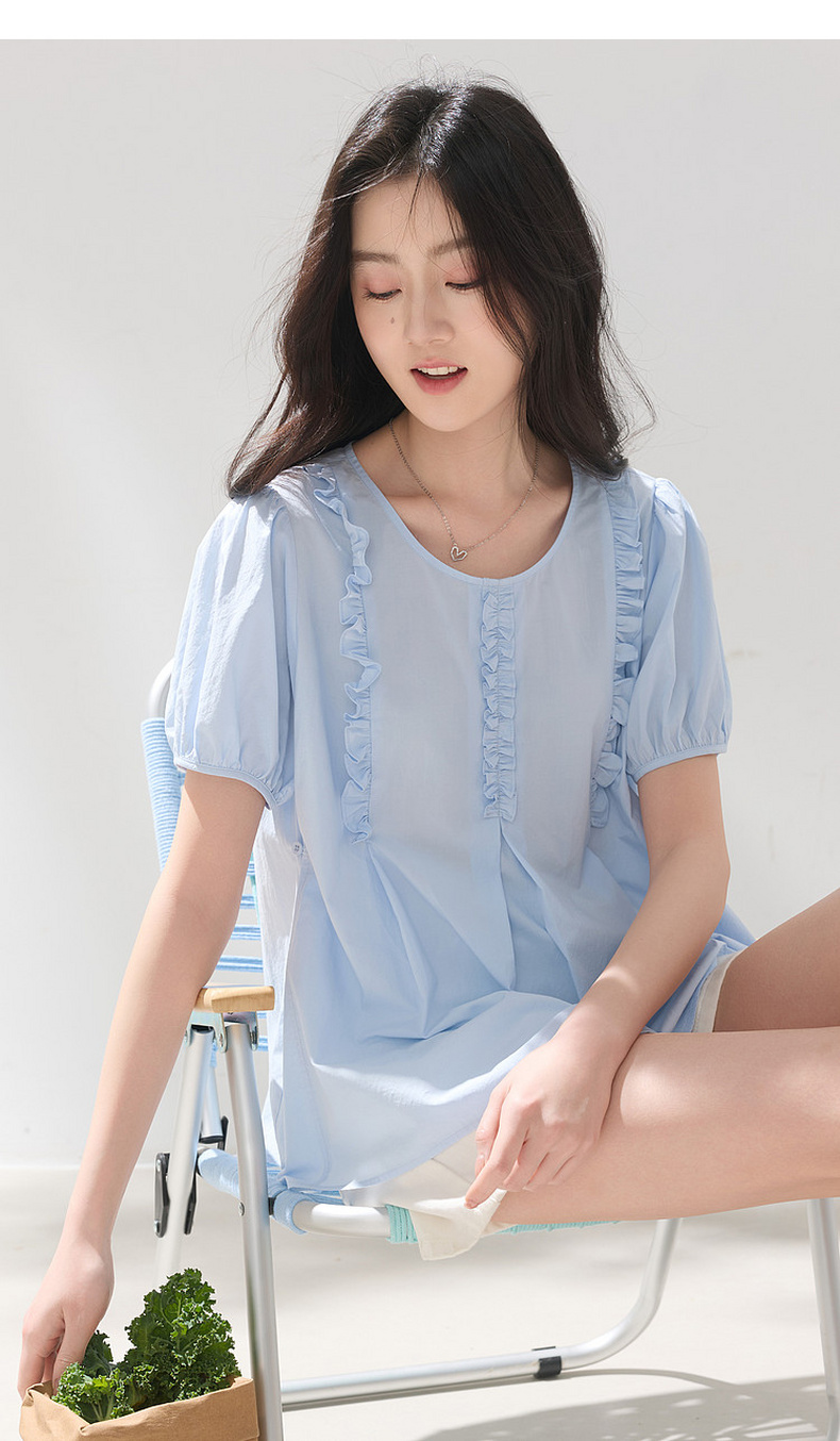 三彩2026夏季新款木耳边圆领泡泡袖小衫宽松娃娃衫清新上衣M
