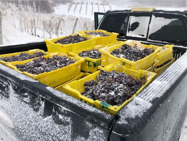 采摘后的葡萄需要迅速进行压榨,以确保压榨时葡萄还处于结冰状态。