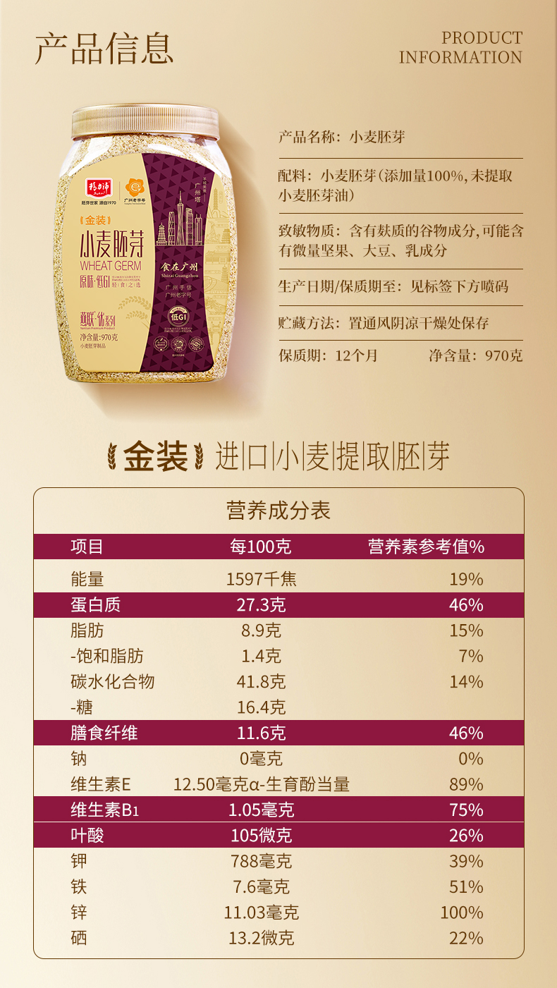 【精力沛/燕联】小麦胚芽(原味·低GI)970克