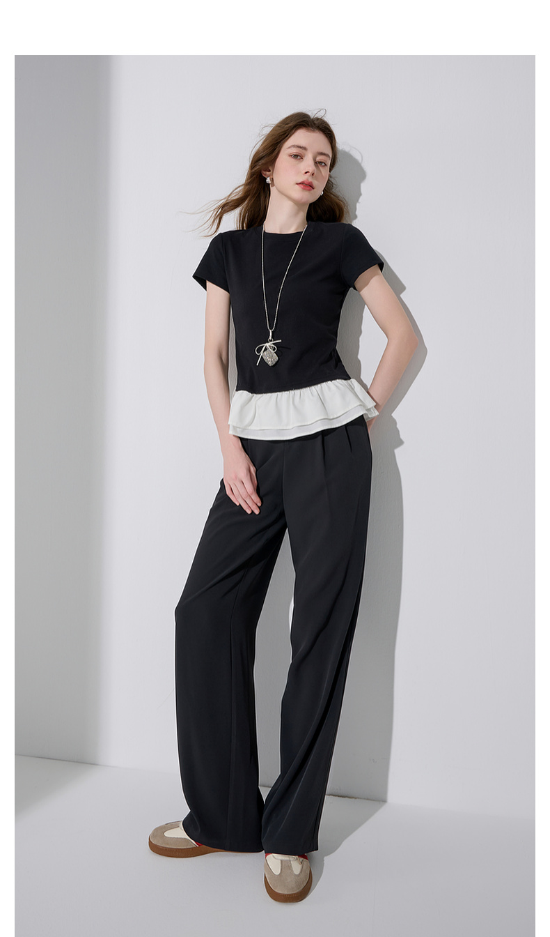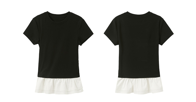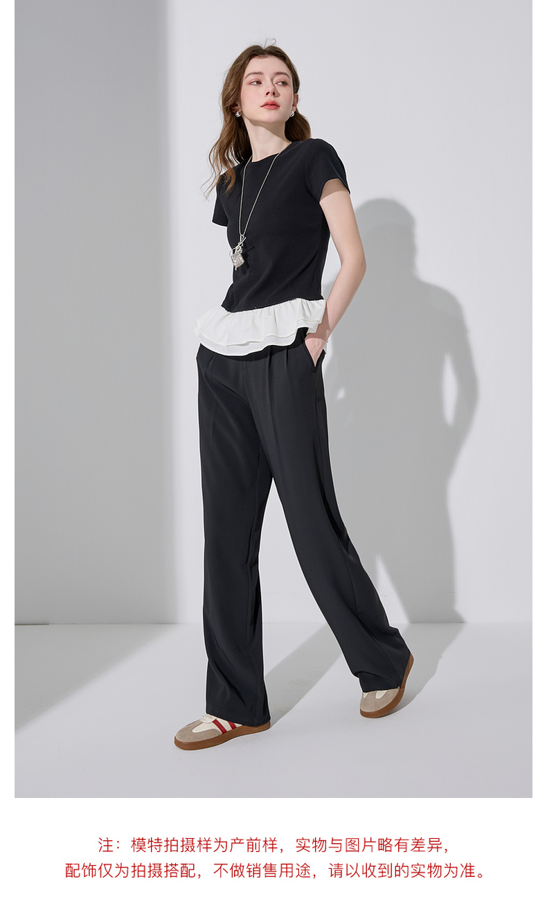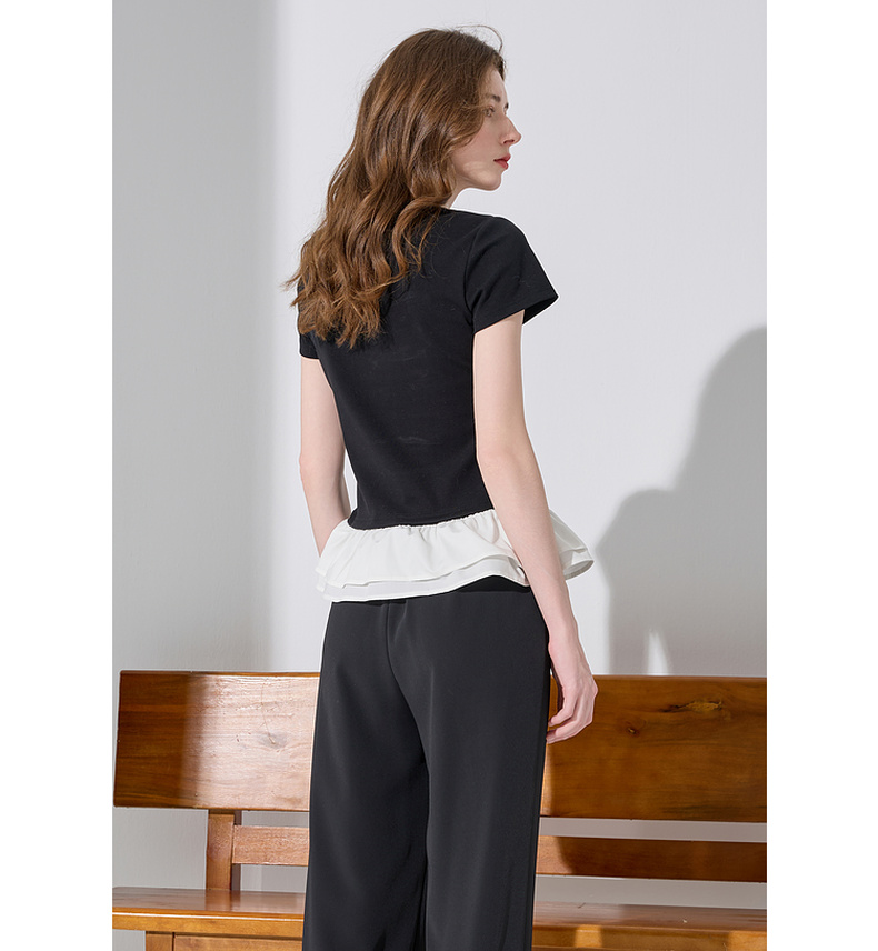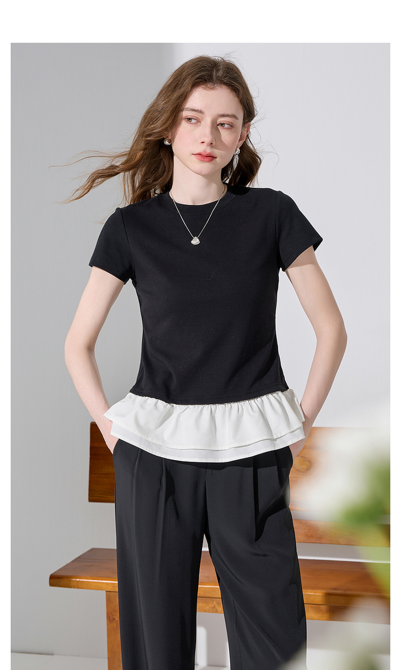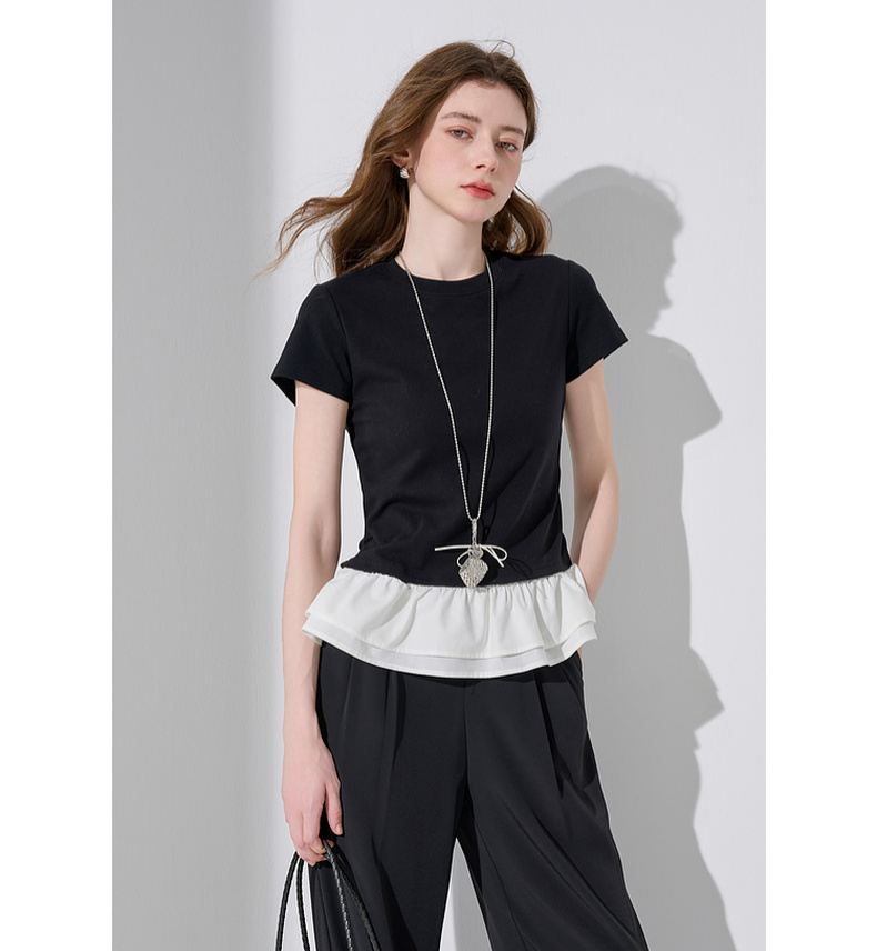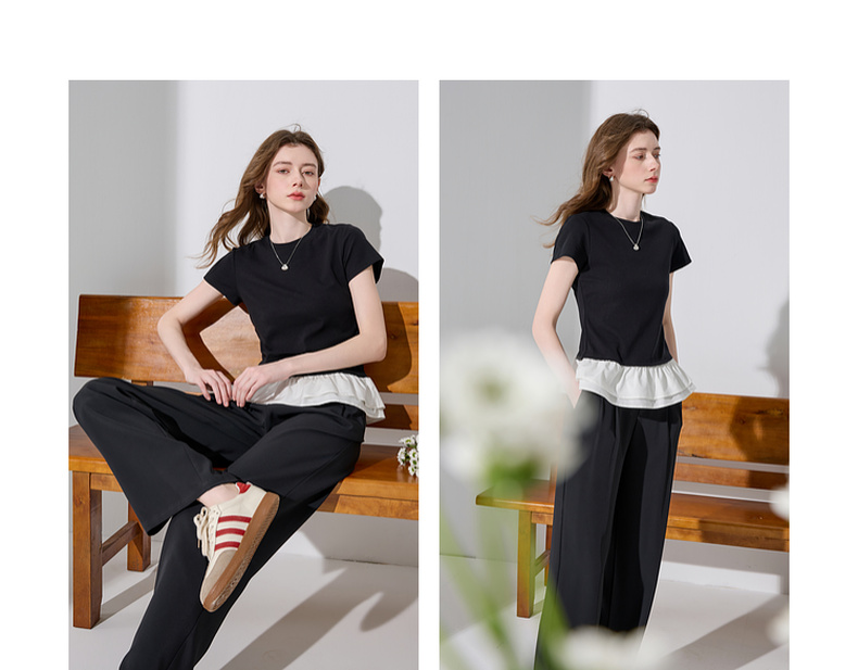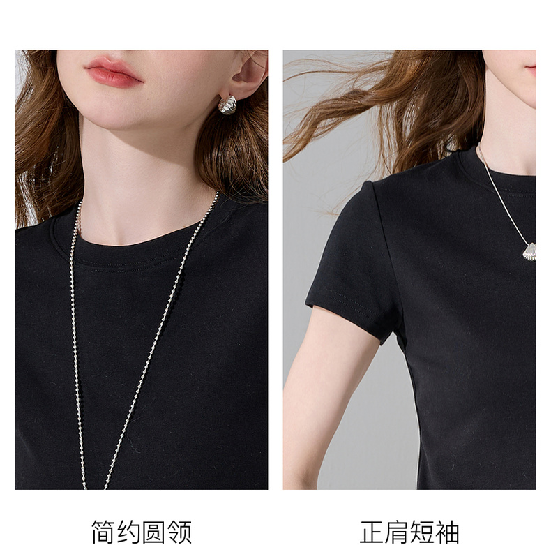 三彩2025夏季新款撞色拼接T恤圆领正肩短袖上衣修身显瘦M