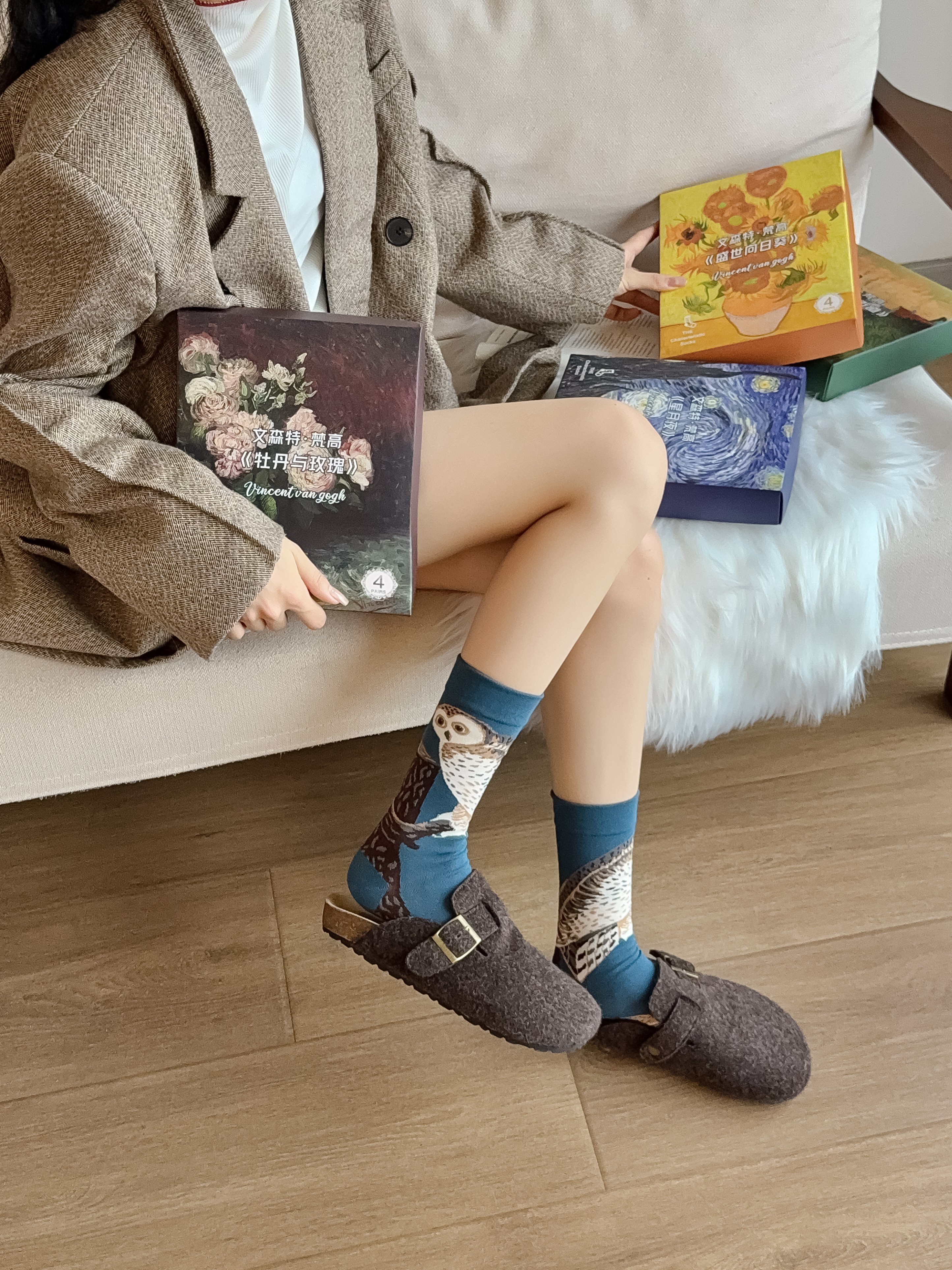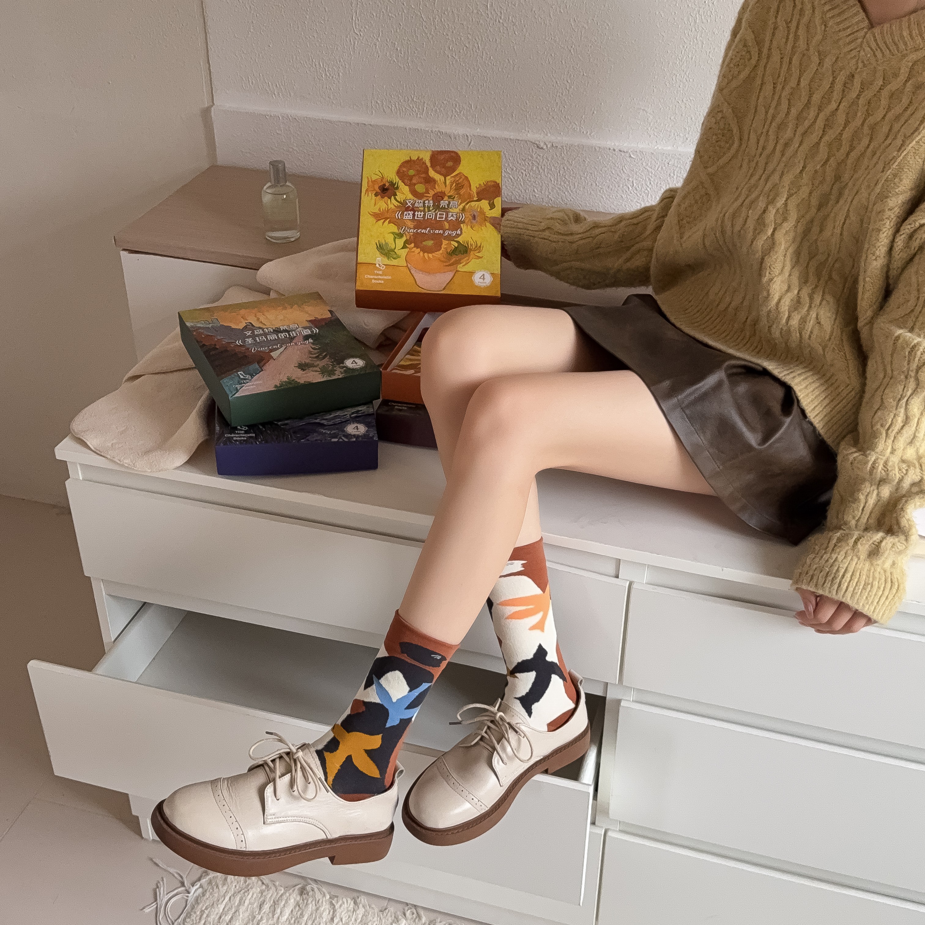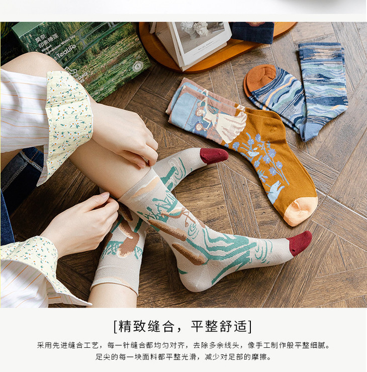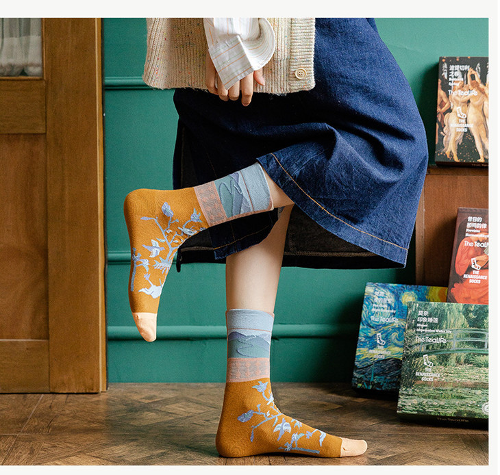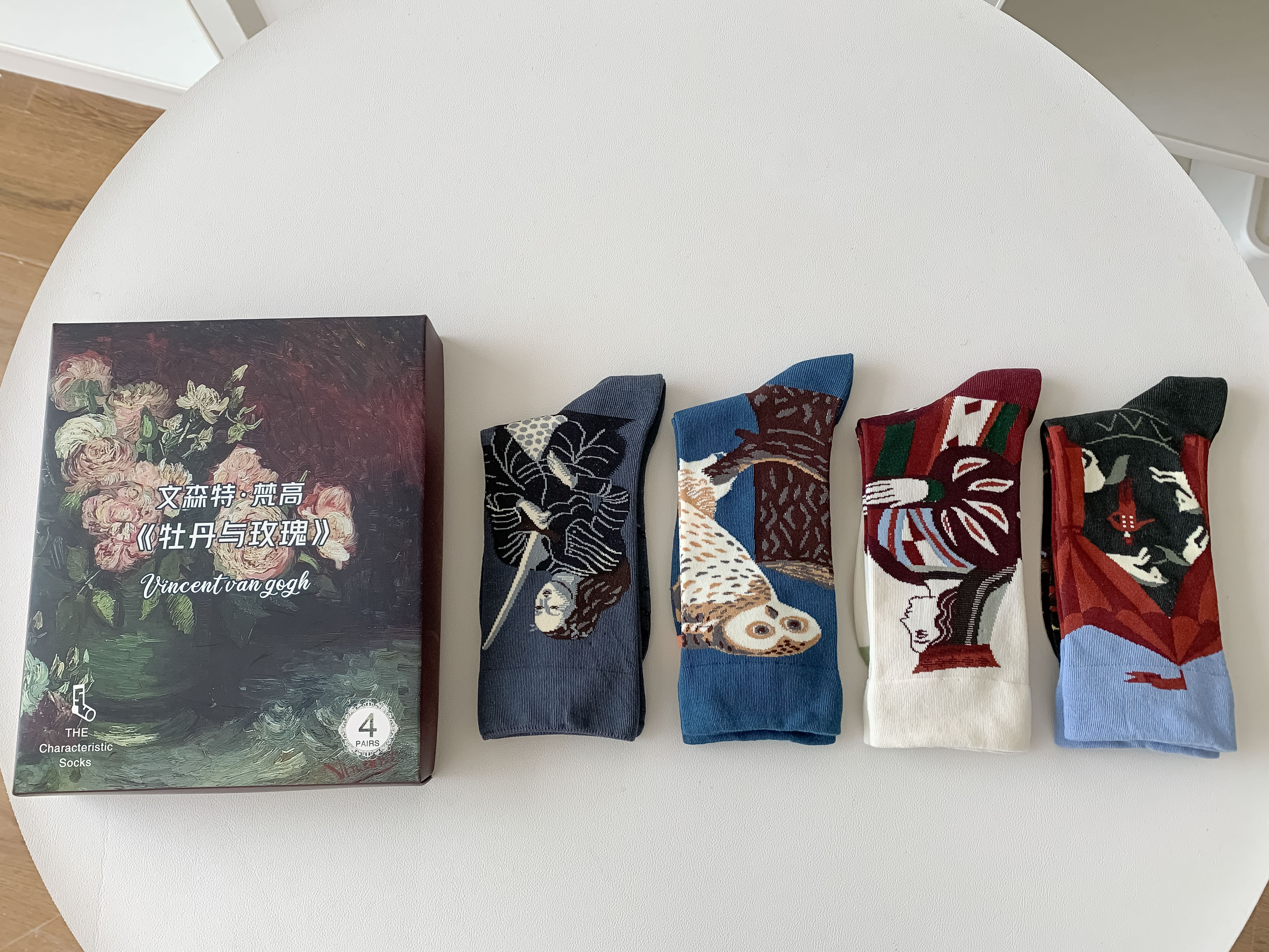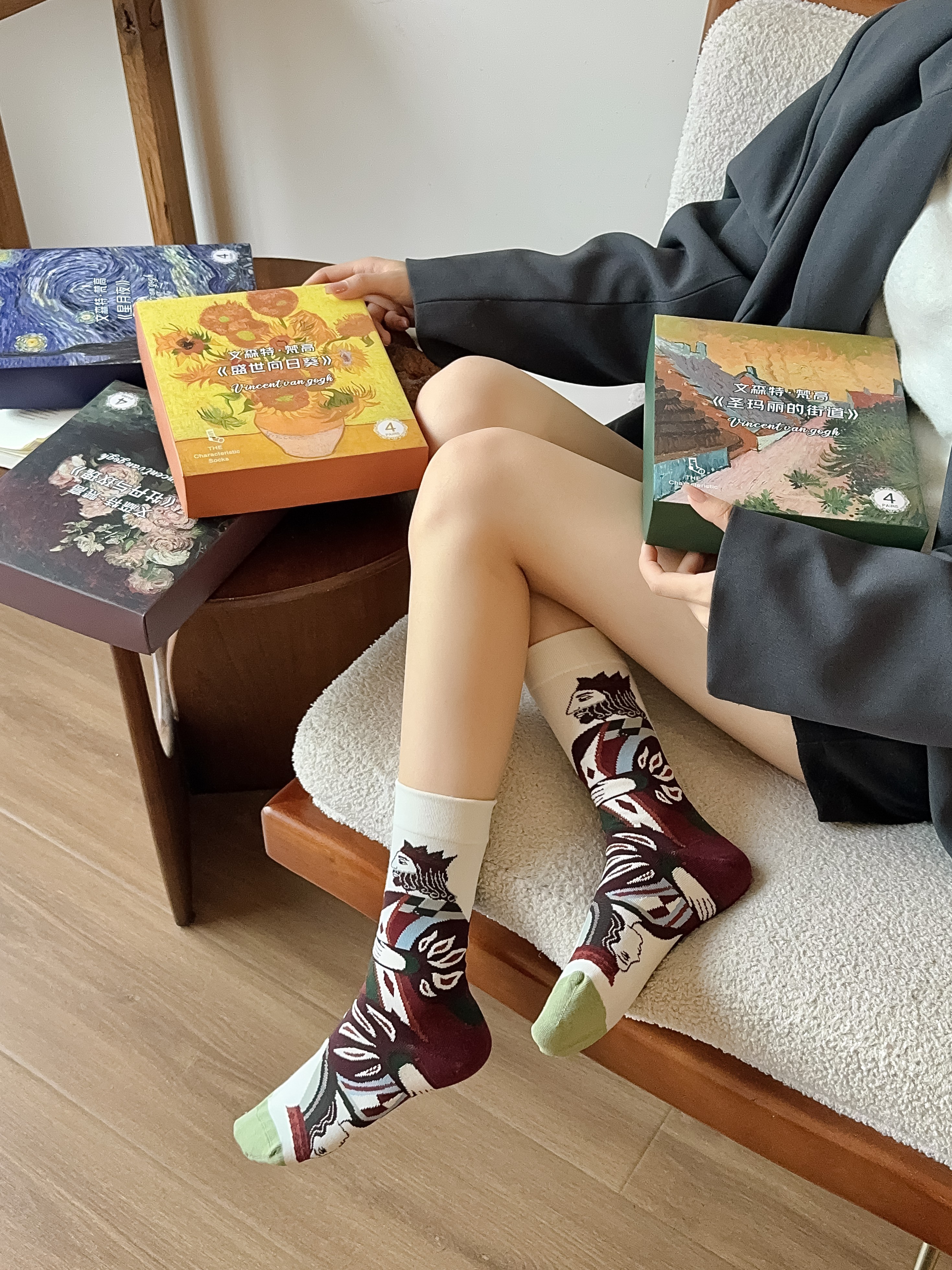 【4双礼盒装梵高II莫奈油画袜】法国轻奢II文艺复兴 莫奈&梵高&文森特新疆长绒棉油画风抽像潮袜