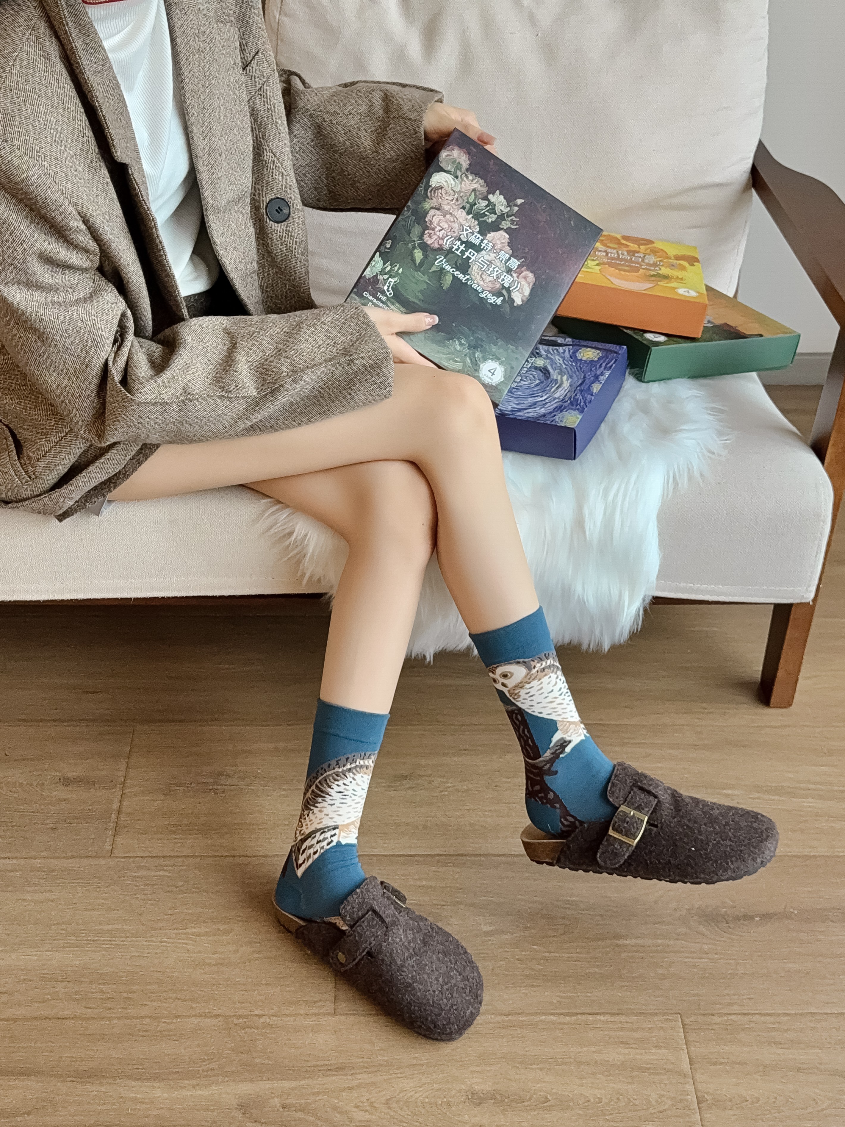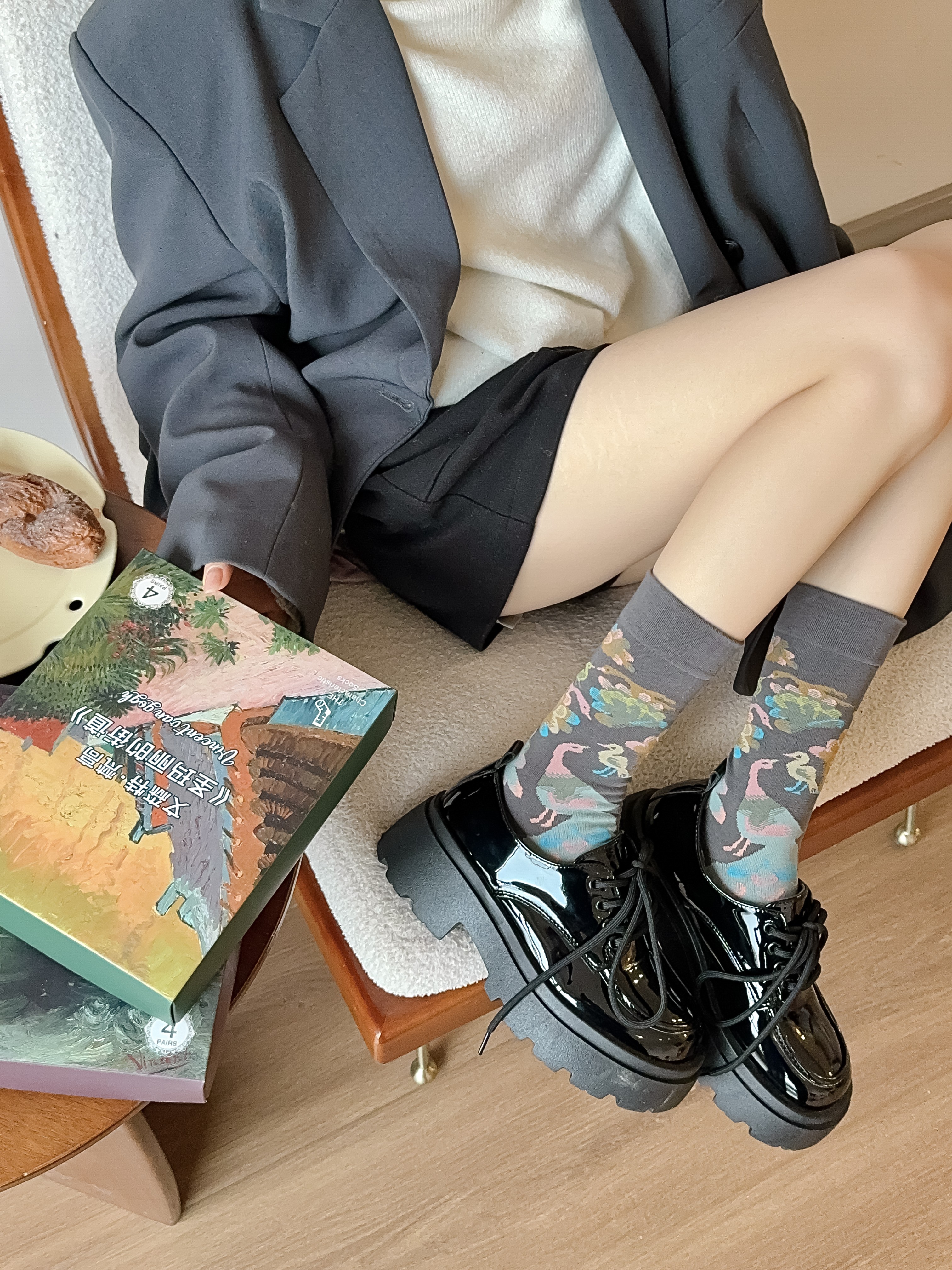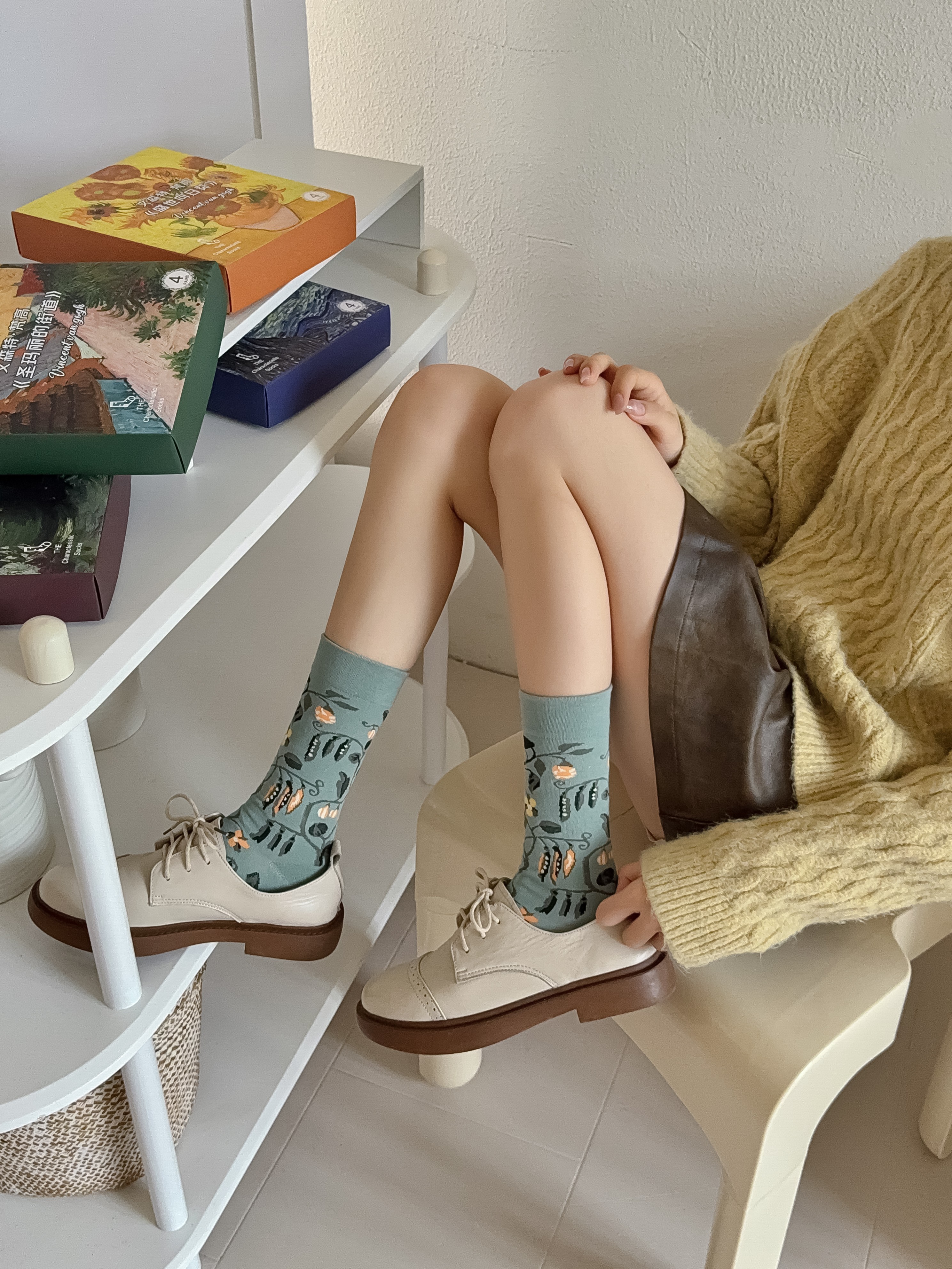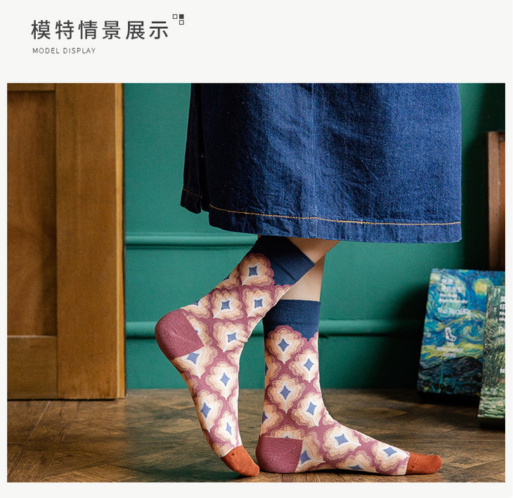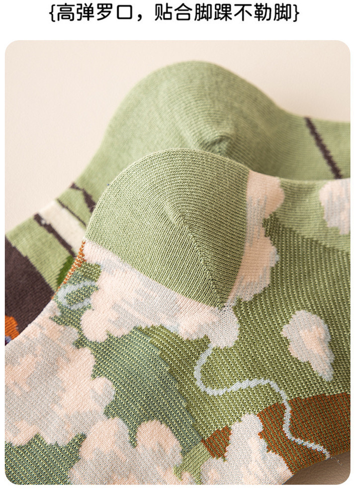 【4双礼盒装梵高II莫奈油画袜】法国轻奢II文艺复兴 莫奈&梵高&文森特新疆长绒棉油画风抽像潮袜