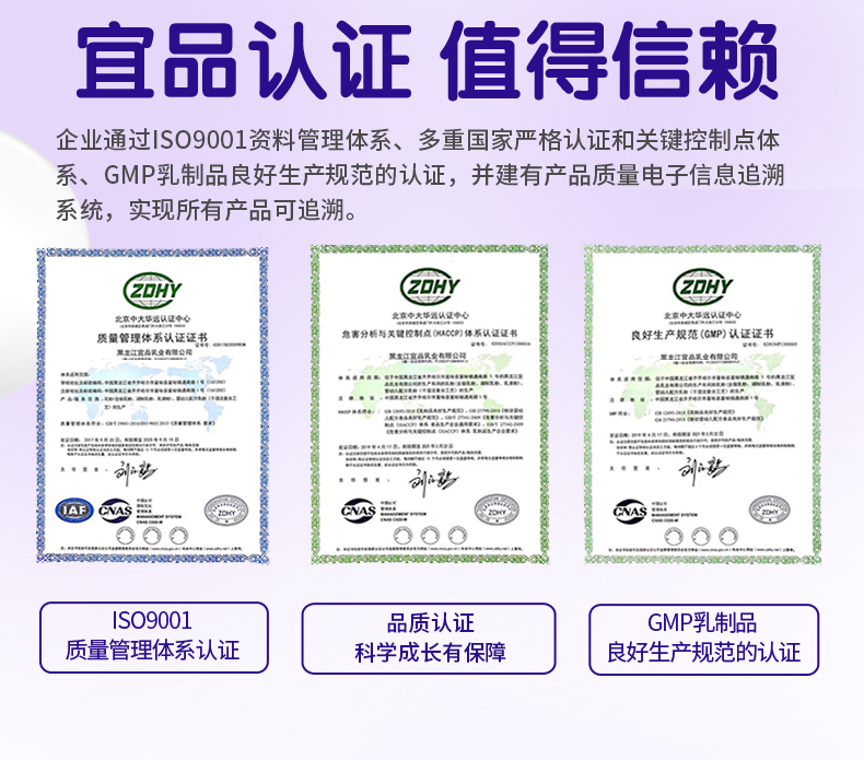 - 宜品乳业创于1956年,有60余年专业乳品生产史,是中国最早的奶粉企业之一。现已发展为一家集“自有牧场、研发加工、实验检测、终端销售服务”的全产业链集团公司。