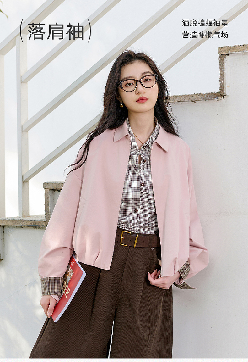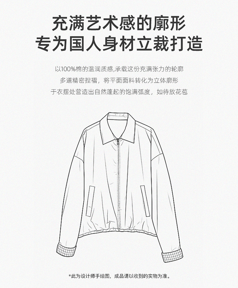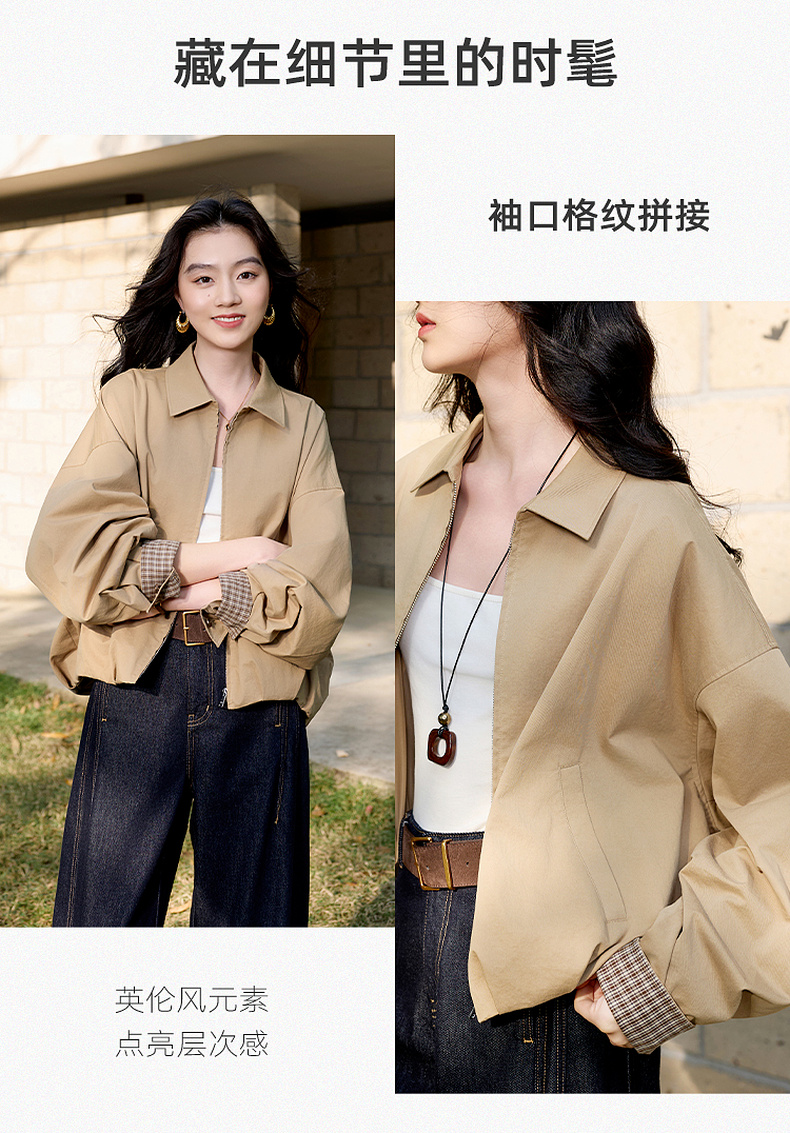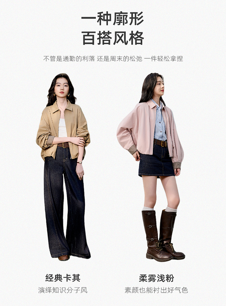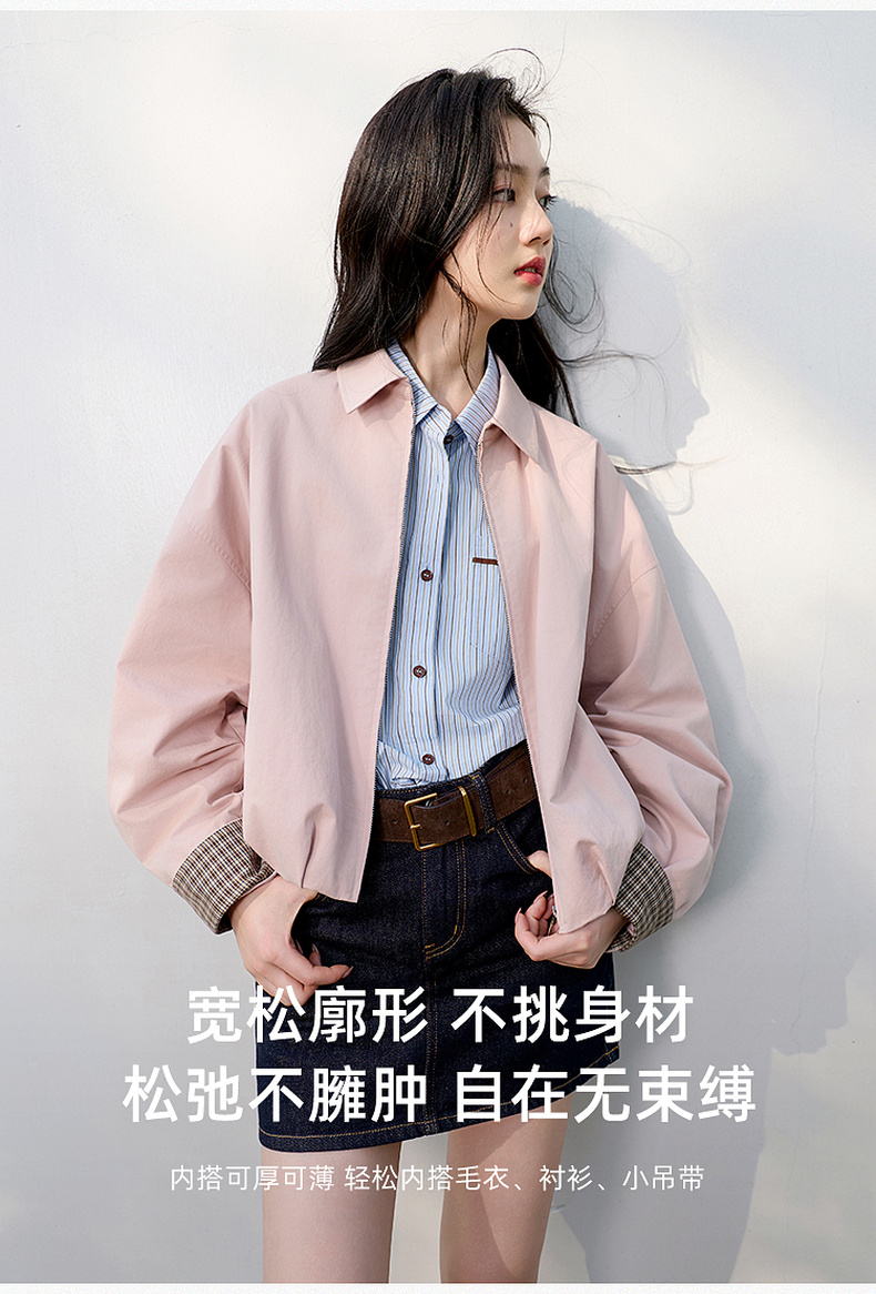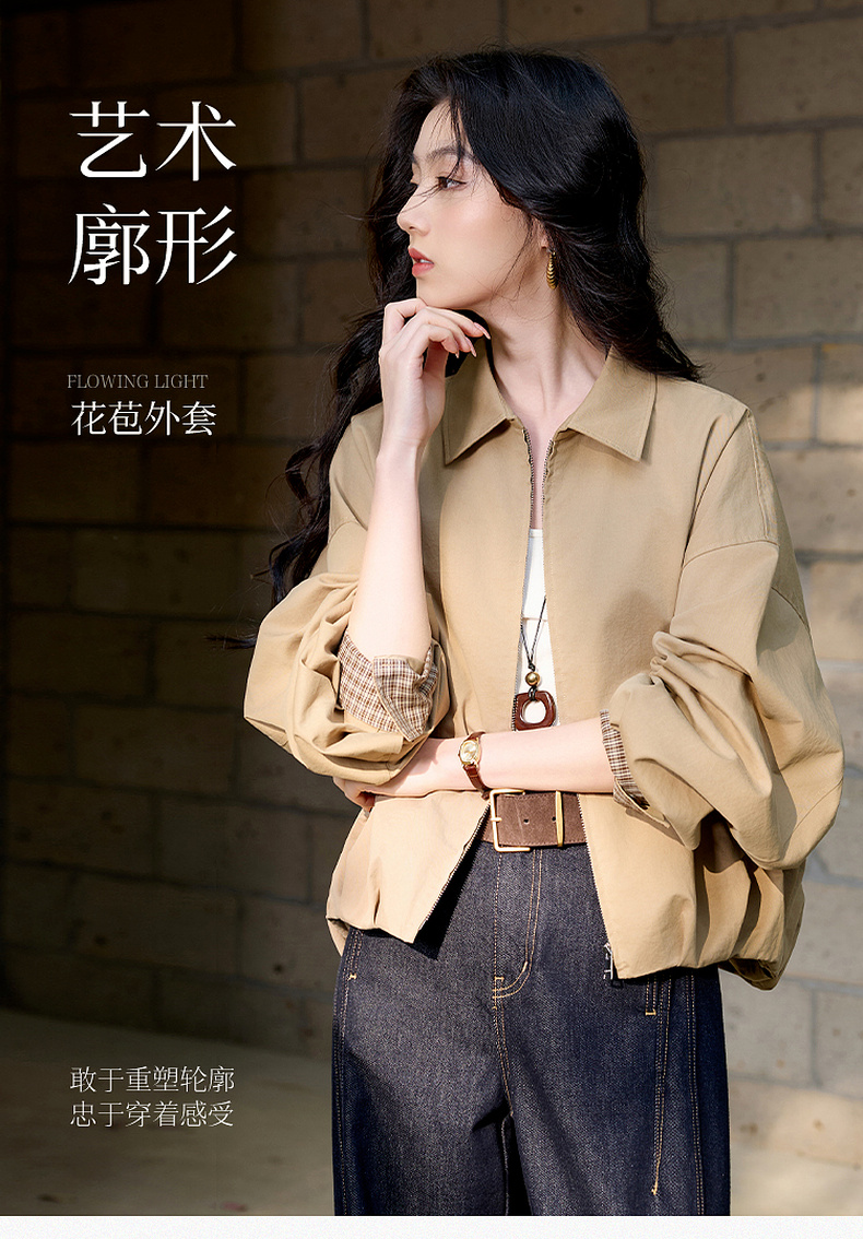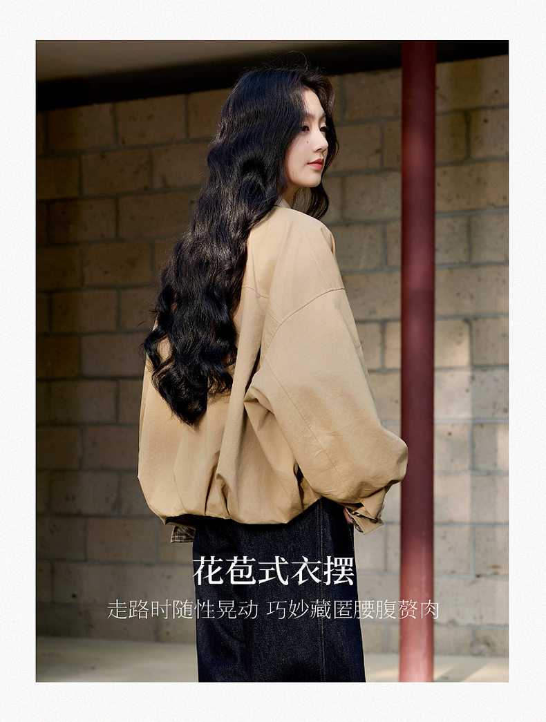 【100棉】三彩2026春季新款休闲翻领外套花苞夹克开衫宽松简约S