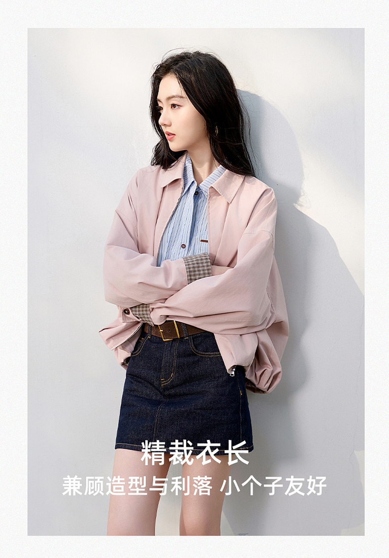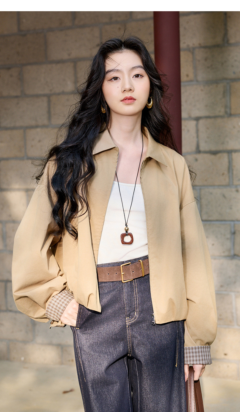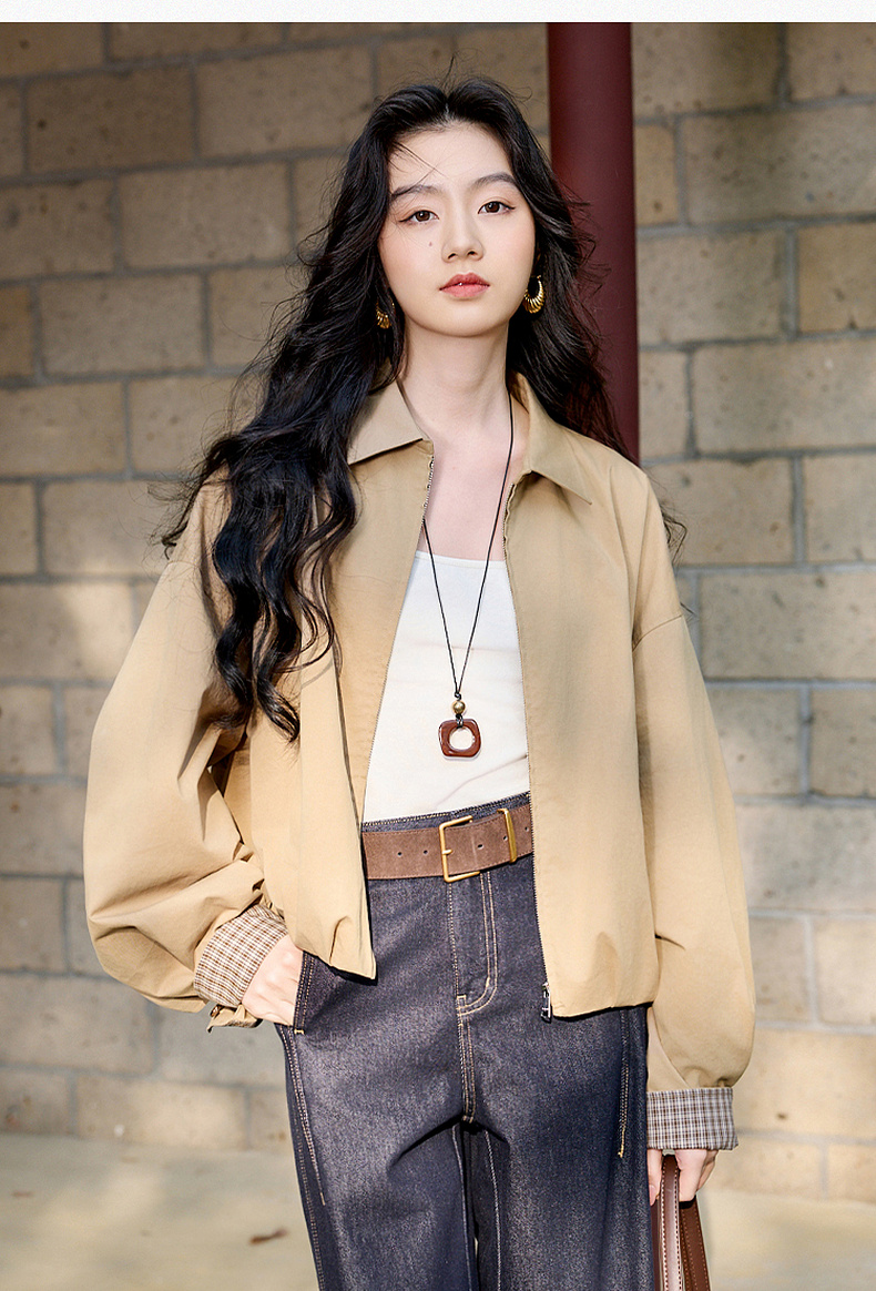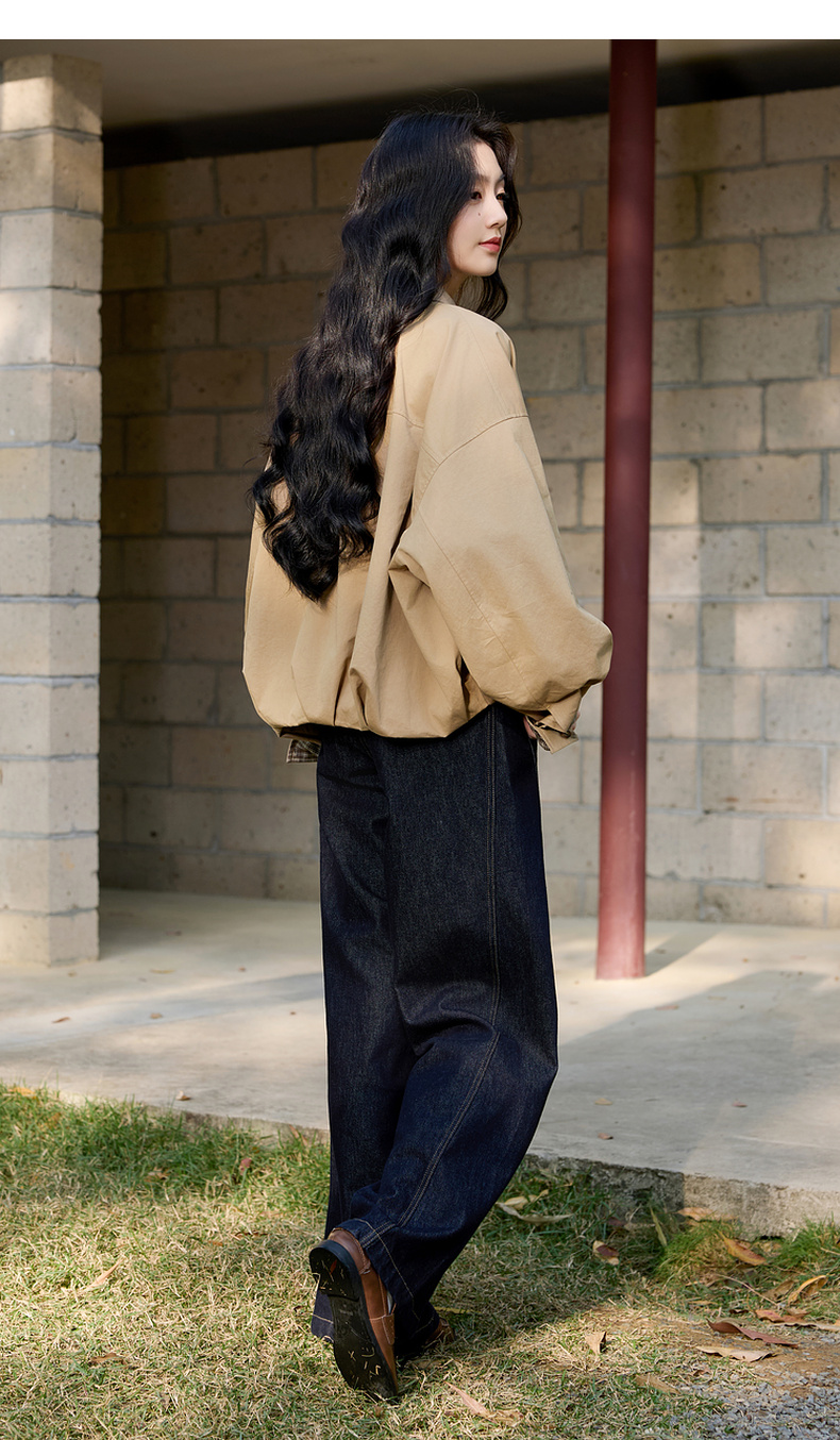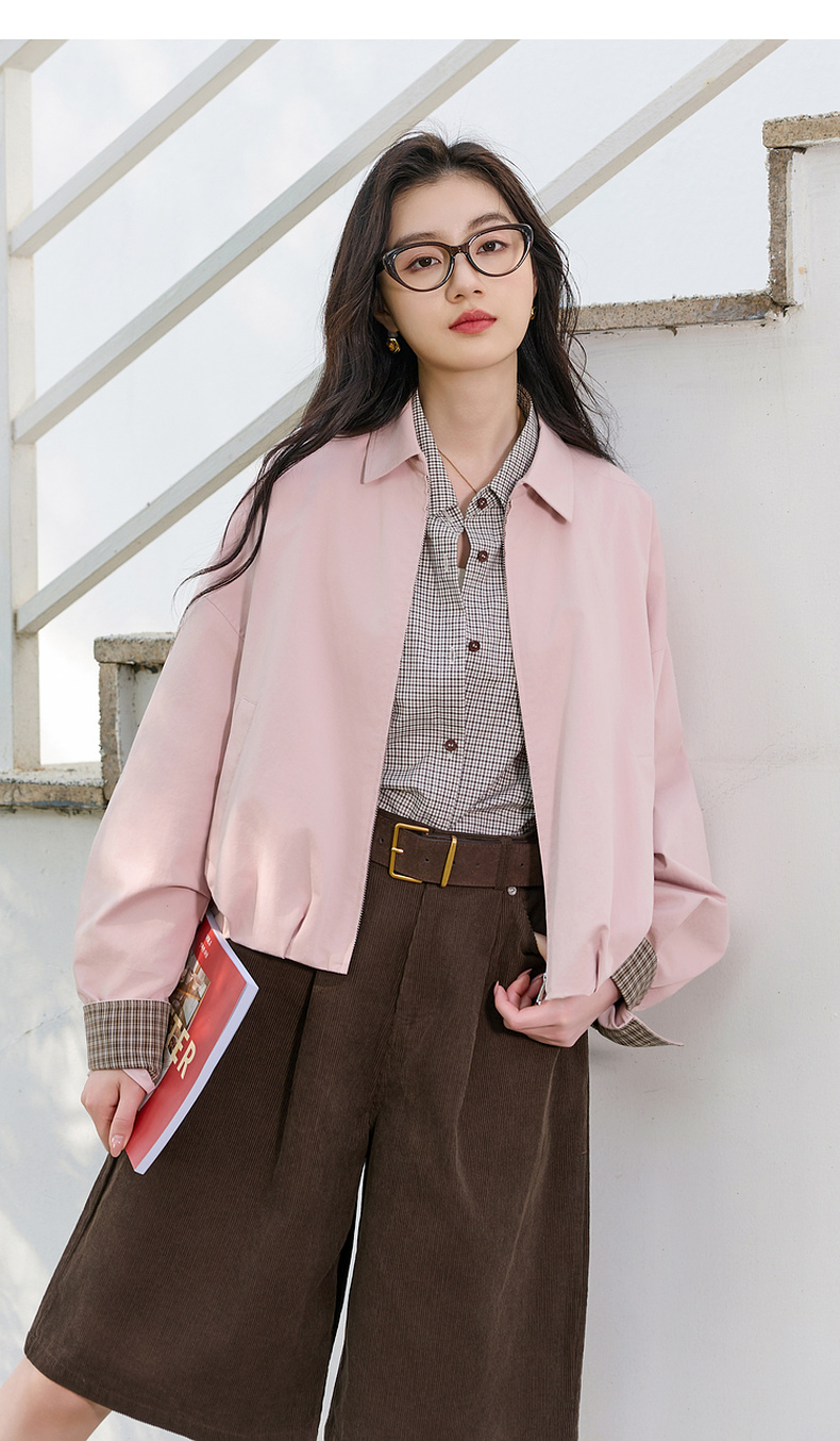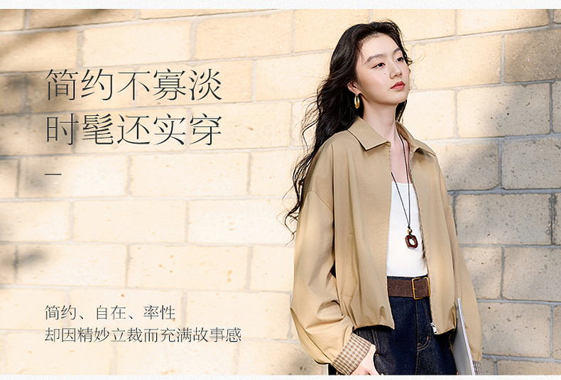 【100棉】三彩2026春季新款休闲翻领外套花苞夹克开衫宽松简约S