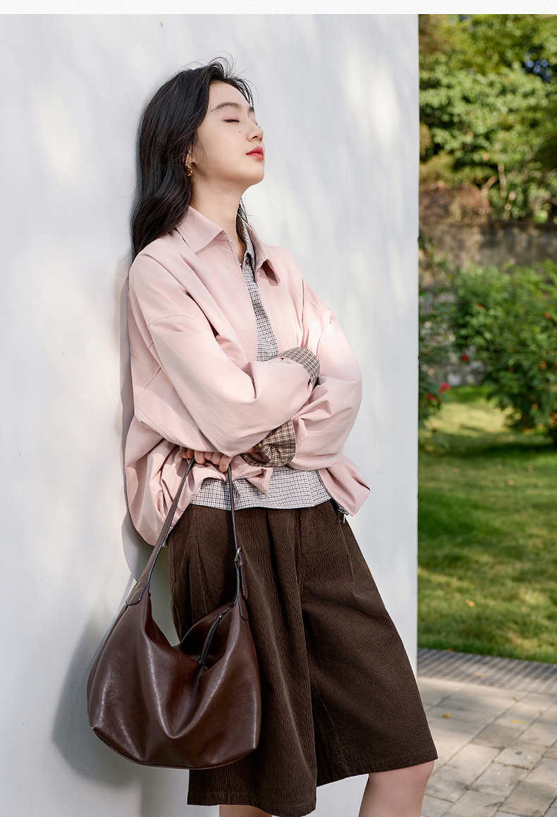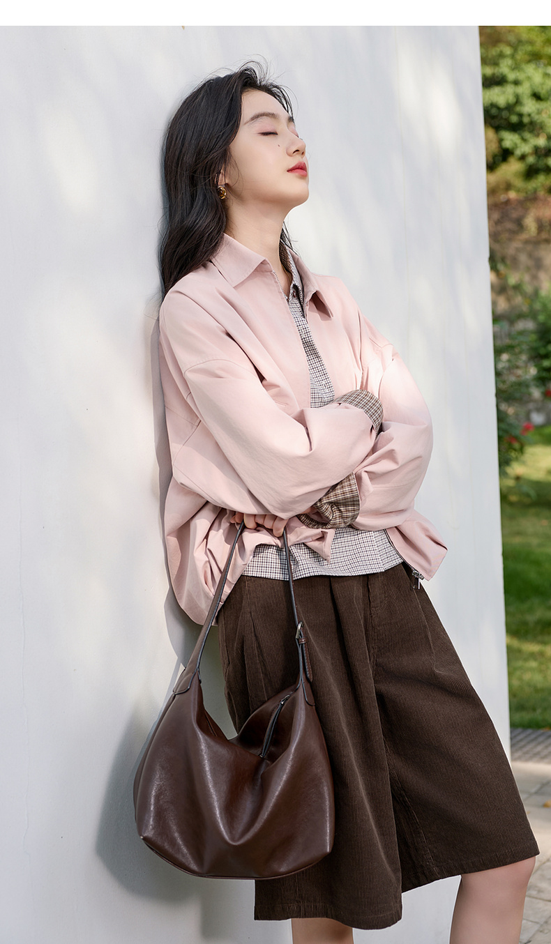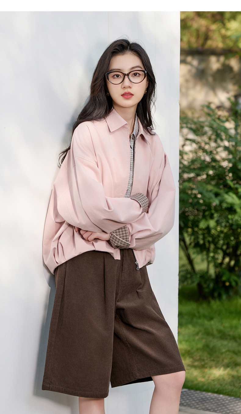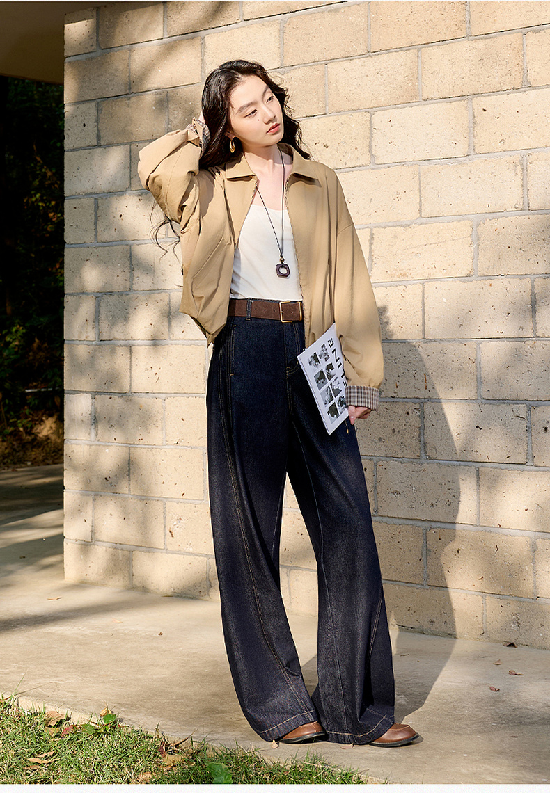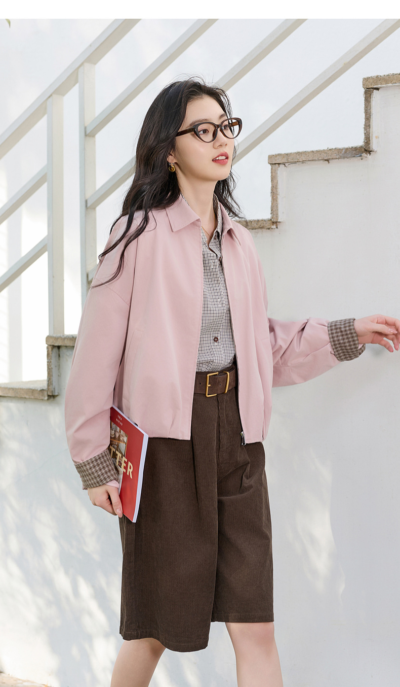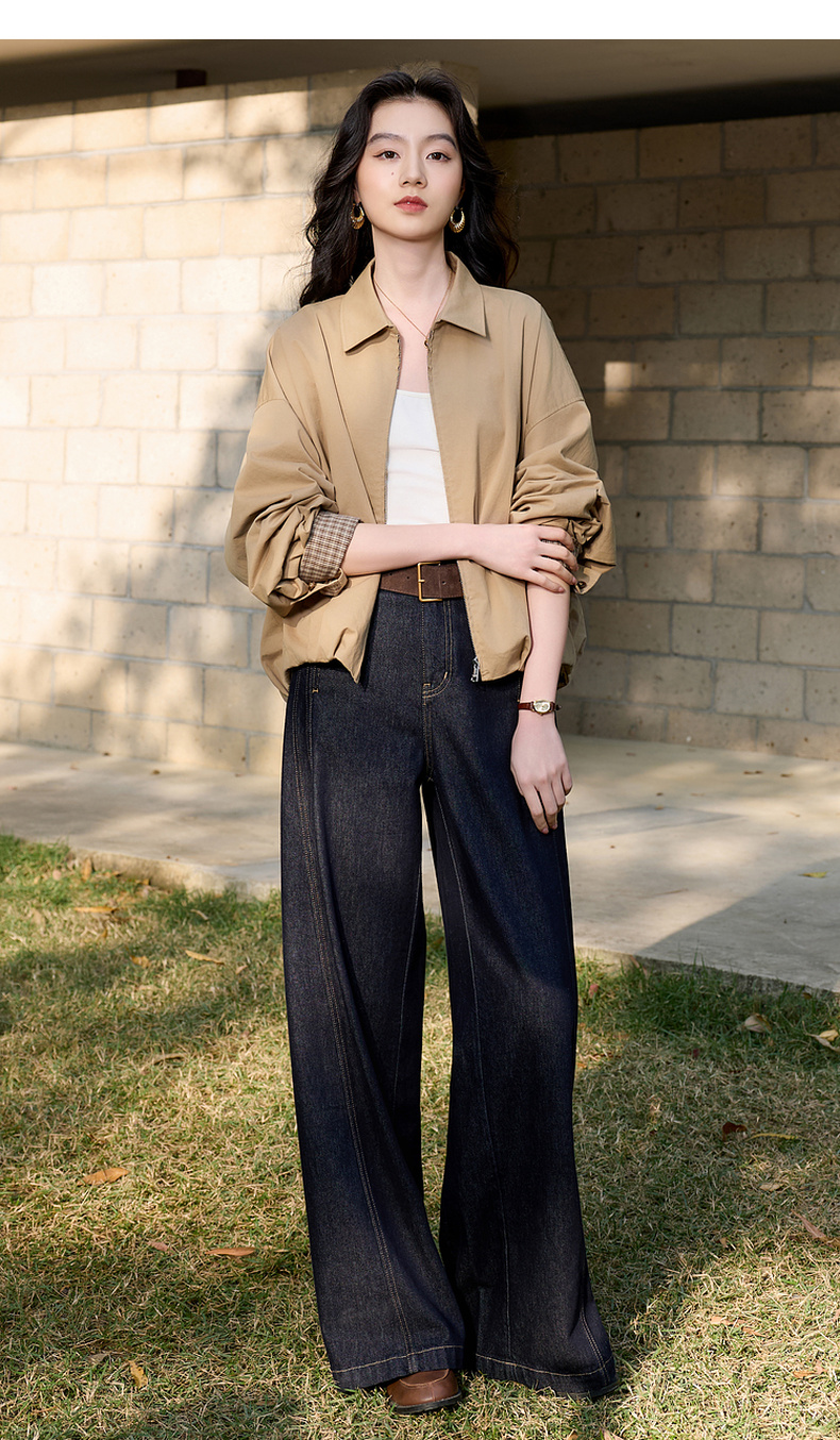 【100棉】三彩2026春季新款休闲翻领外套花苞夹克开衫宽松简约S