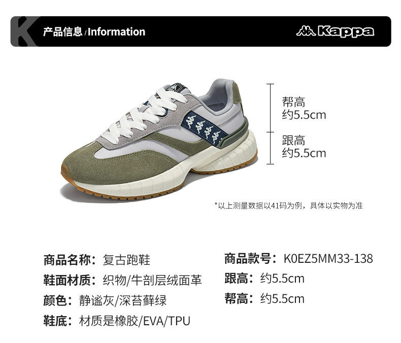 Kappa卡帕男女情侣厚底老爹鞋2024新款春秋款百搭鞋子运动鞋K0EZ5MM33