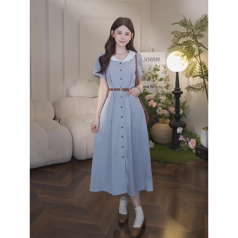 鹿向南【简雅格调】2025夏季新款高级感时尚气质收腰连衣裙女