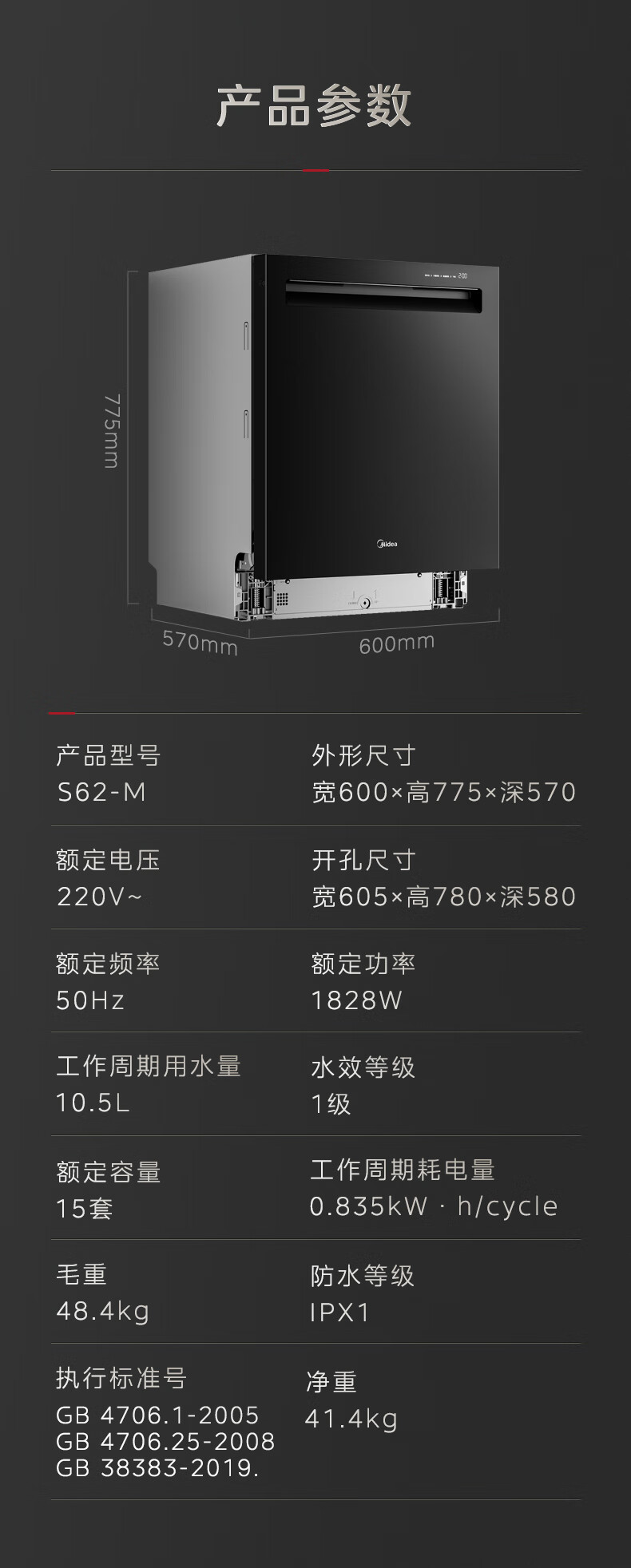【限天津区域】美的/洗碗机/S62Pro-M/黑色