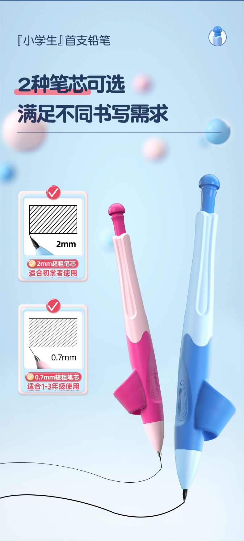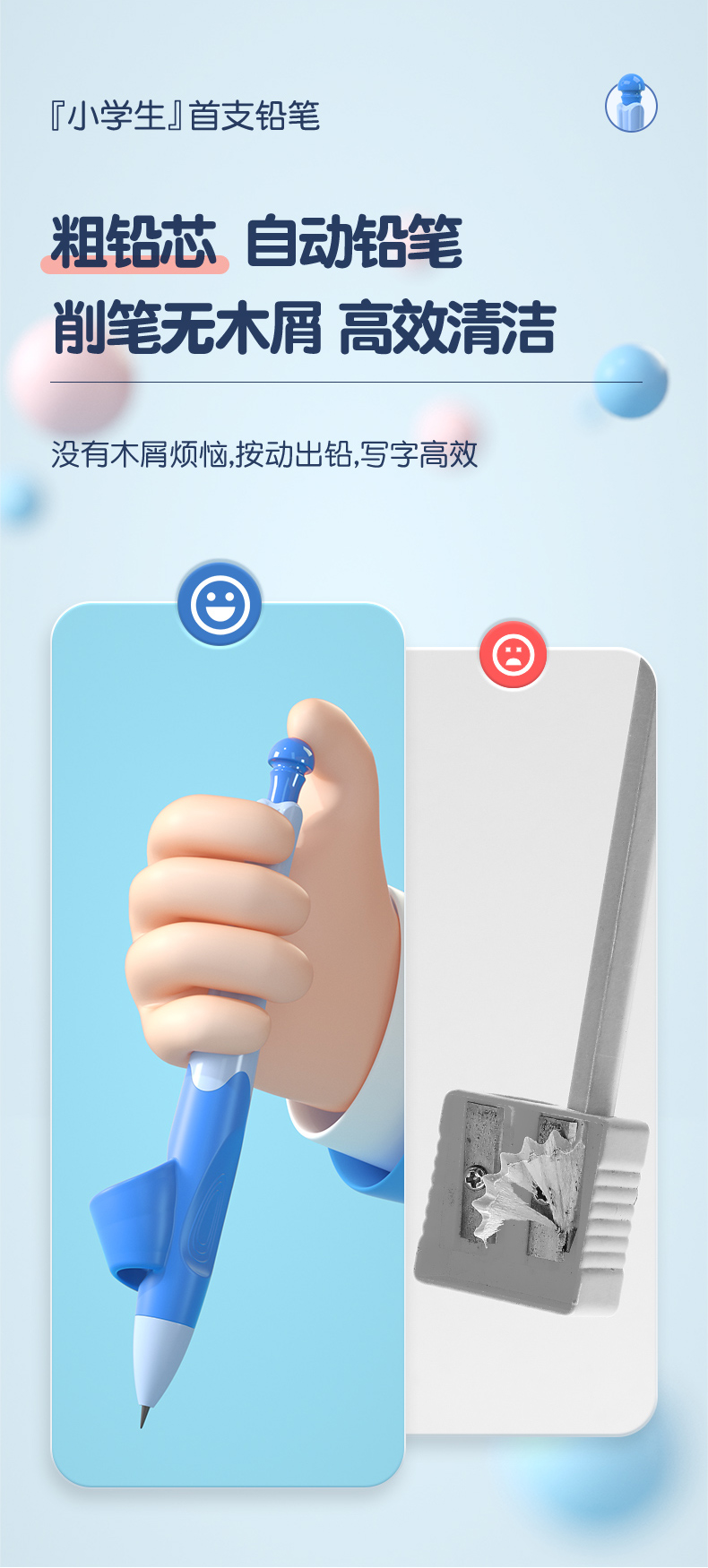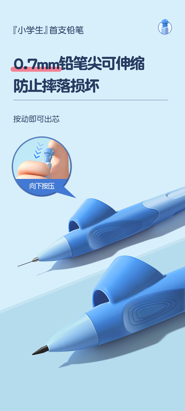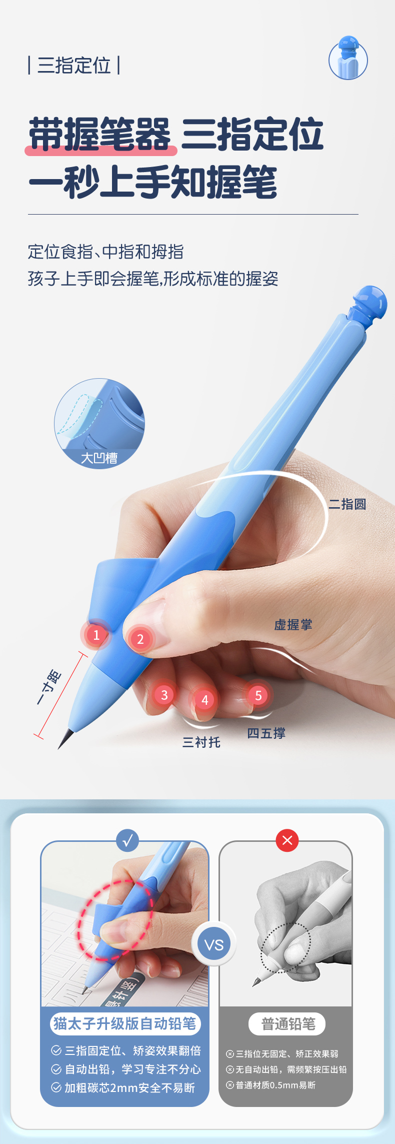 猫太子爱握自动铅笔小学生专用一年级儿童写字练习矫正握笔姿势高颜值胖胖粗芯不断芯无毒思乐笔幼儿园文具