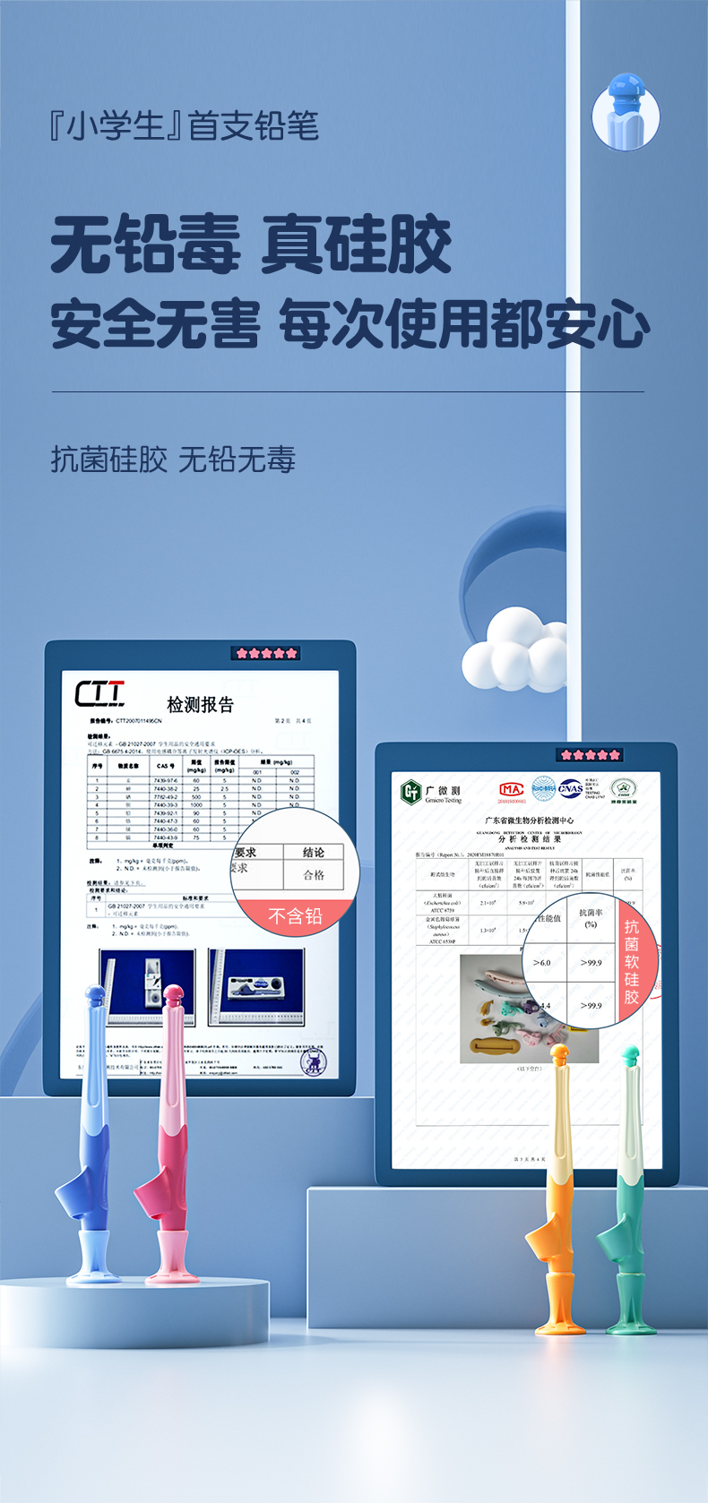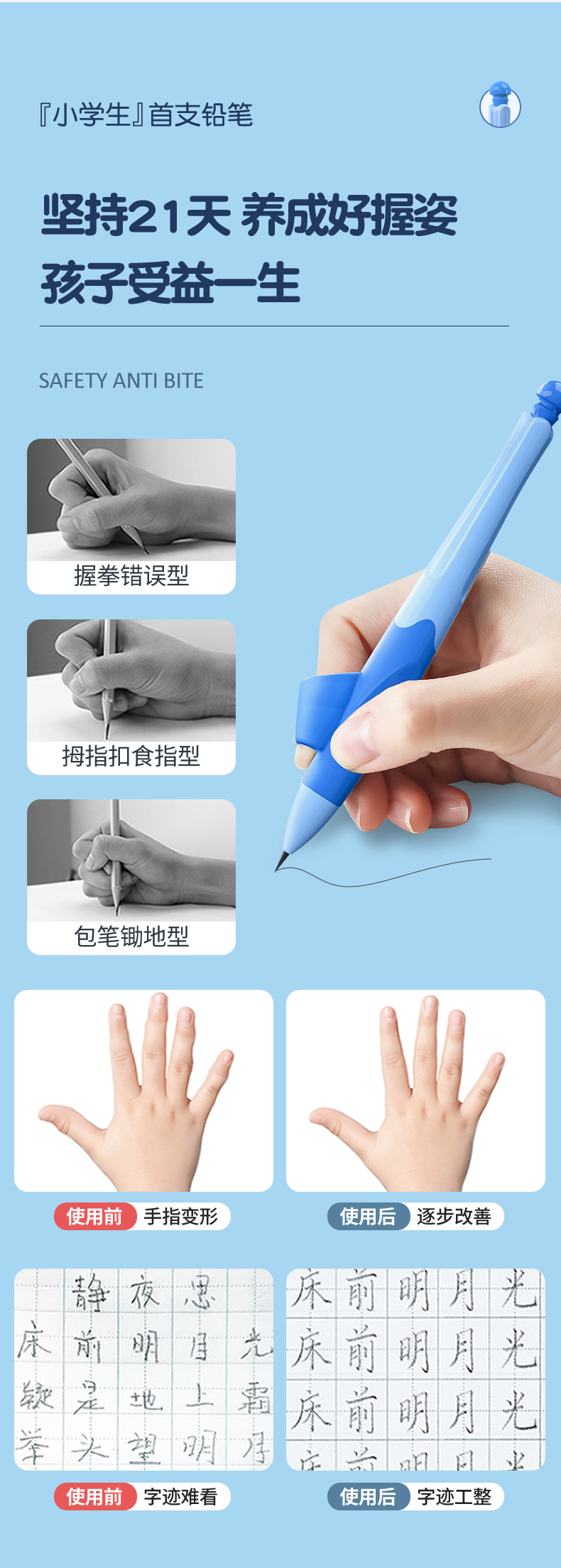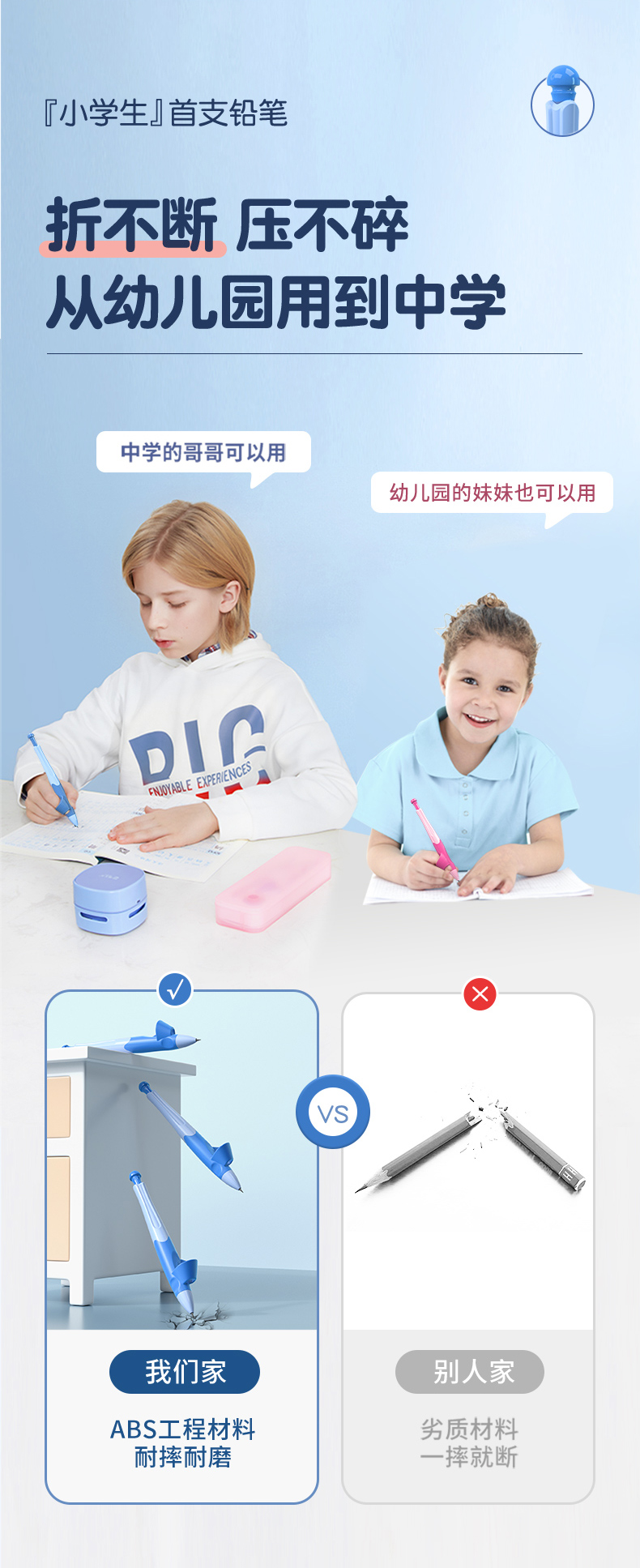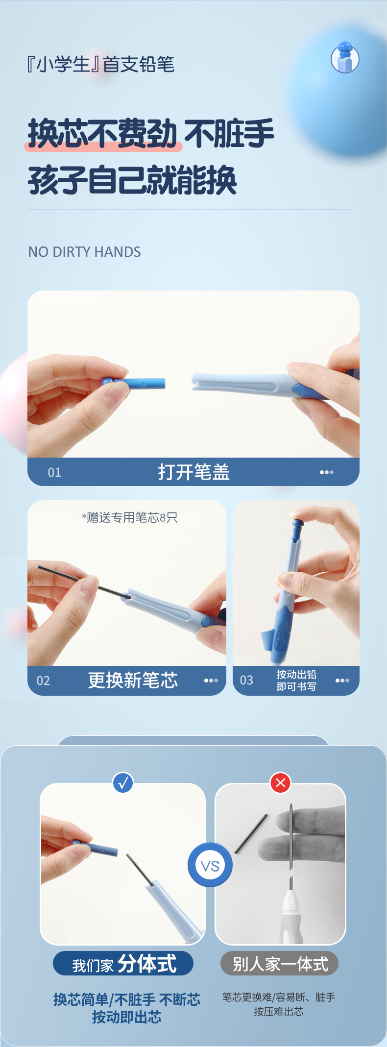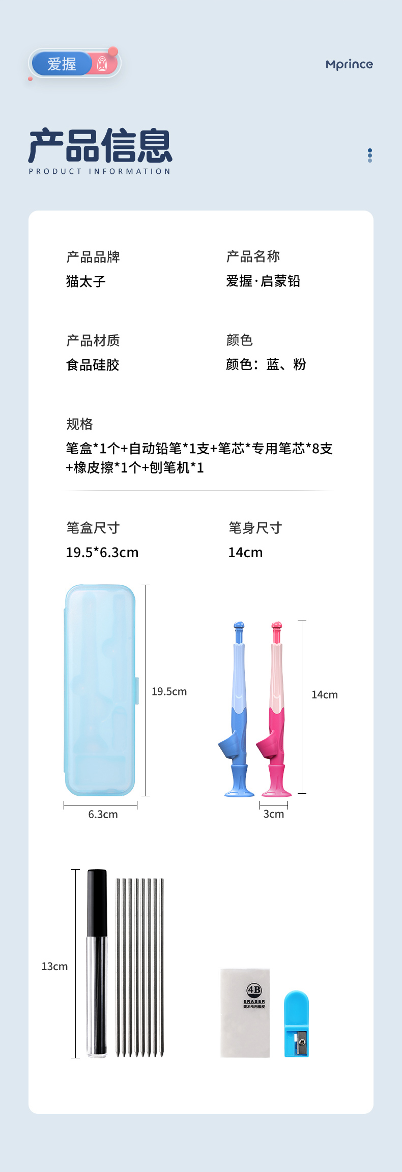 猫太子爱握自动铅笔小学生专用一年级儿童写字练习矫正握笔姿势高颜值胖胖粗芯不断芯无毒思乐笔幼儿园文具