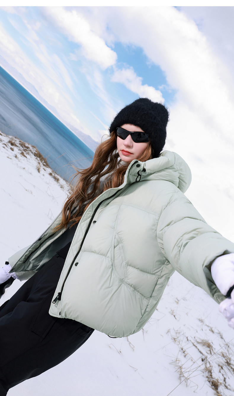【防水易打理】三彩2025冬季新款90白鸭绒羽绒服宽松面包服短款M
