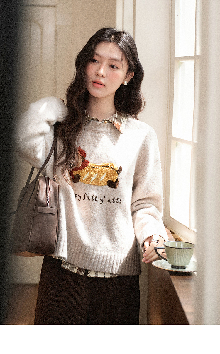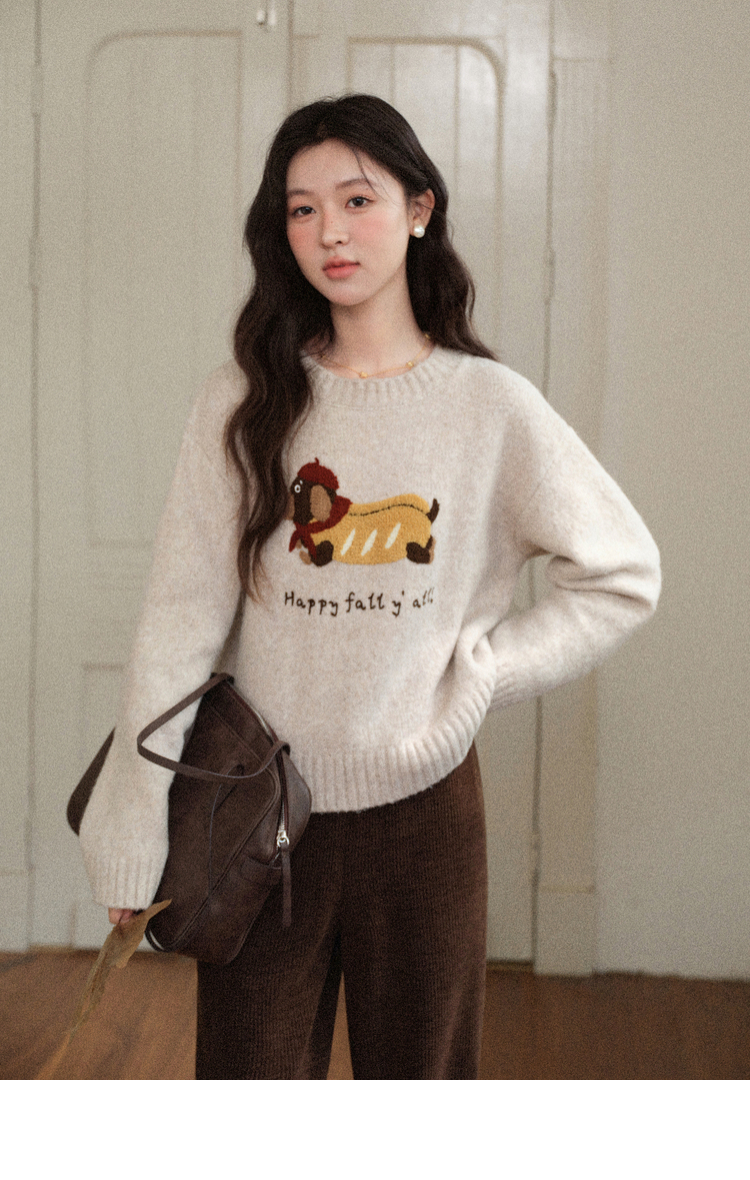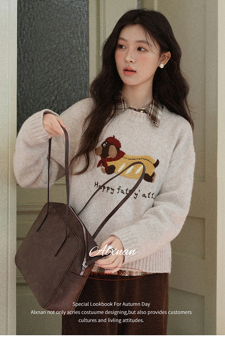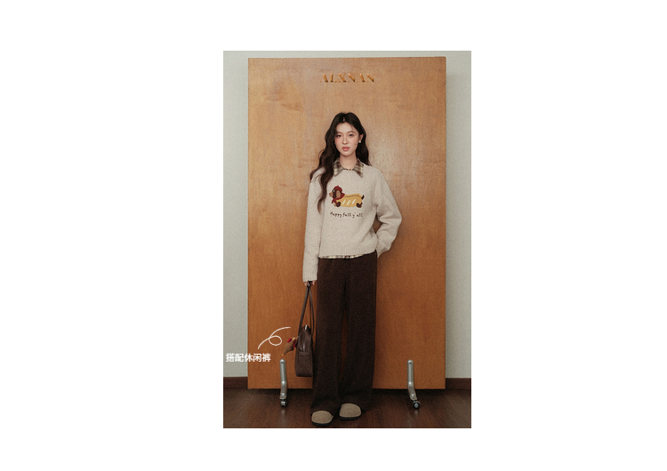 【6折秒杀】鹿向南「森野拼图」燕麦色保暖长袖毛衣秋冬新款简约慵懒风上衣女L58106