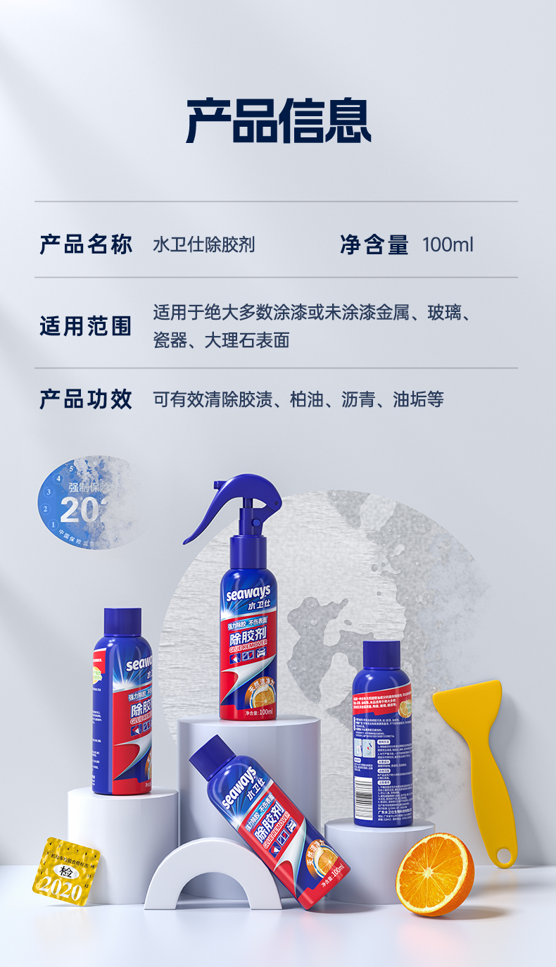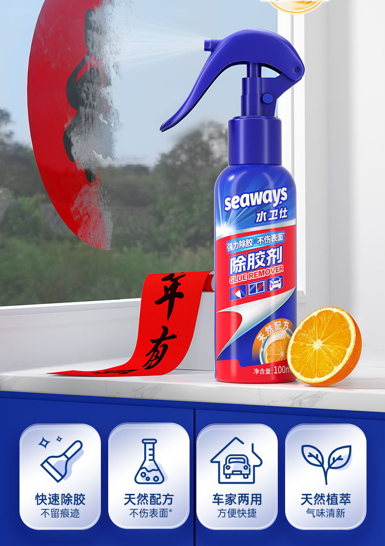 水卫仕(seaways)除胶剂去胶剂 去除大白墙面瓷砖贴纸 挡风玻璃粘胶剂不干胶清洁剂