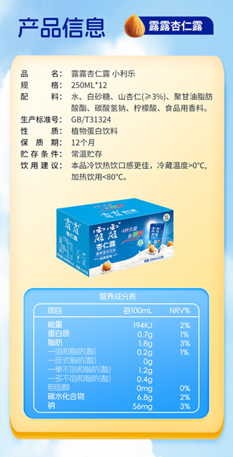 露露 杏仁露250mL×12利乐装 经典原味