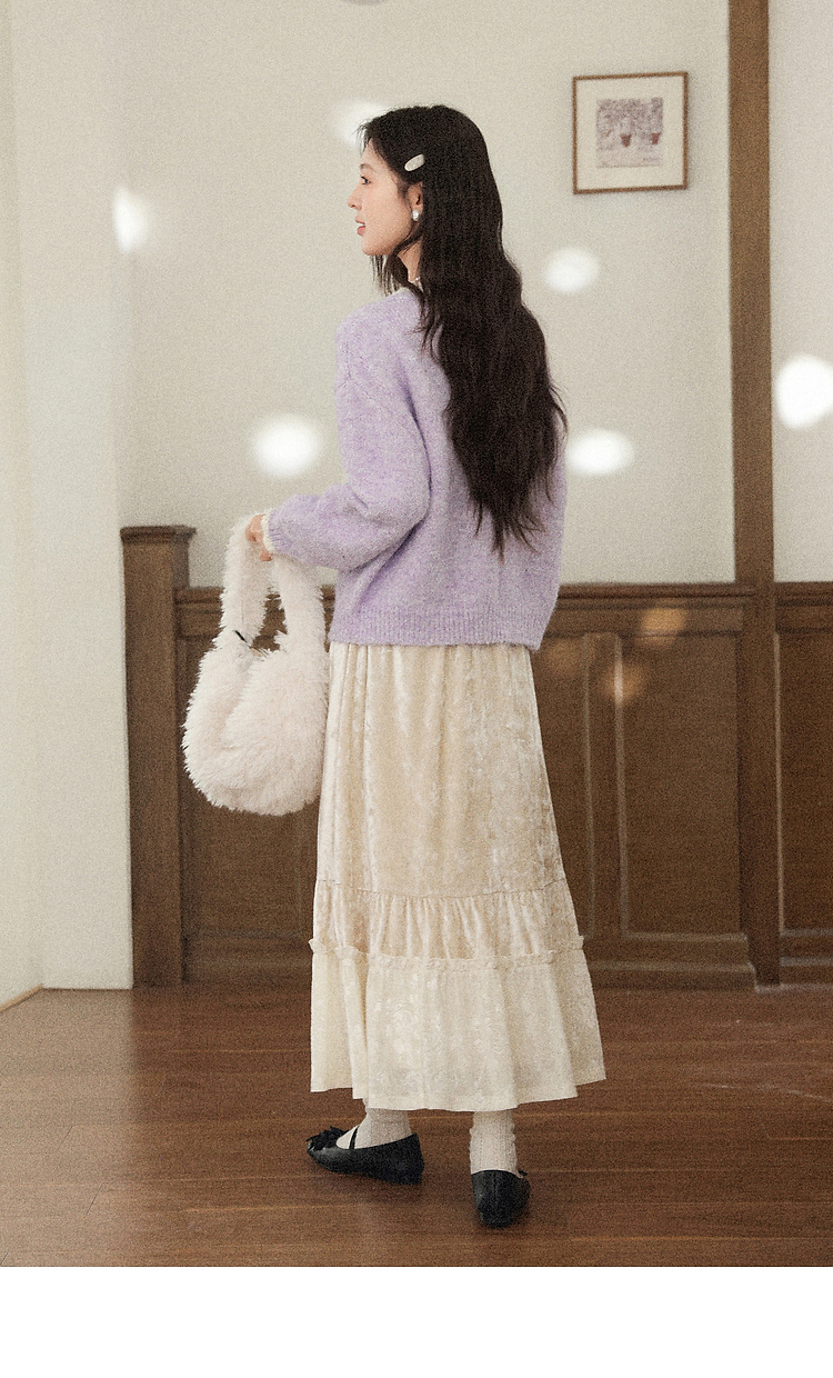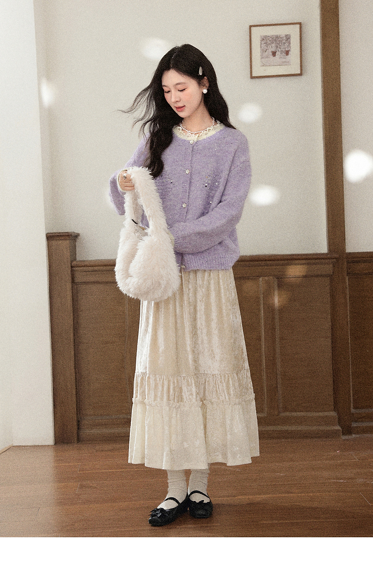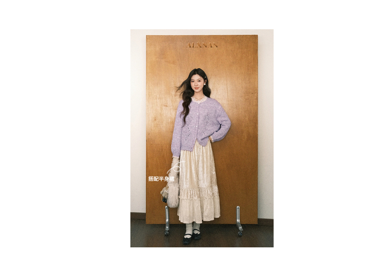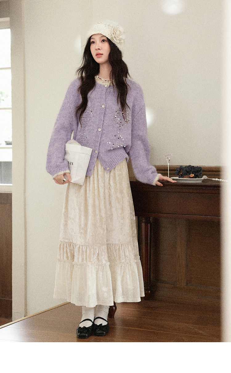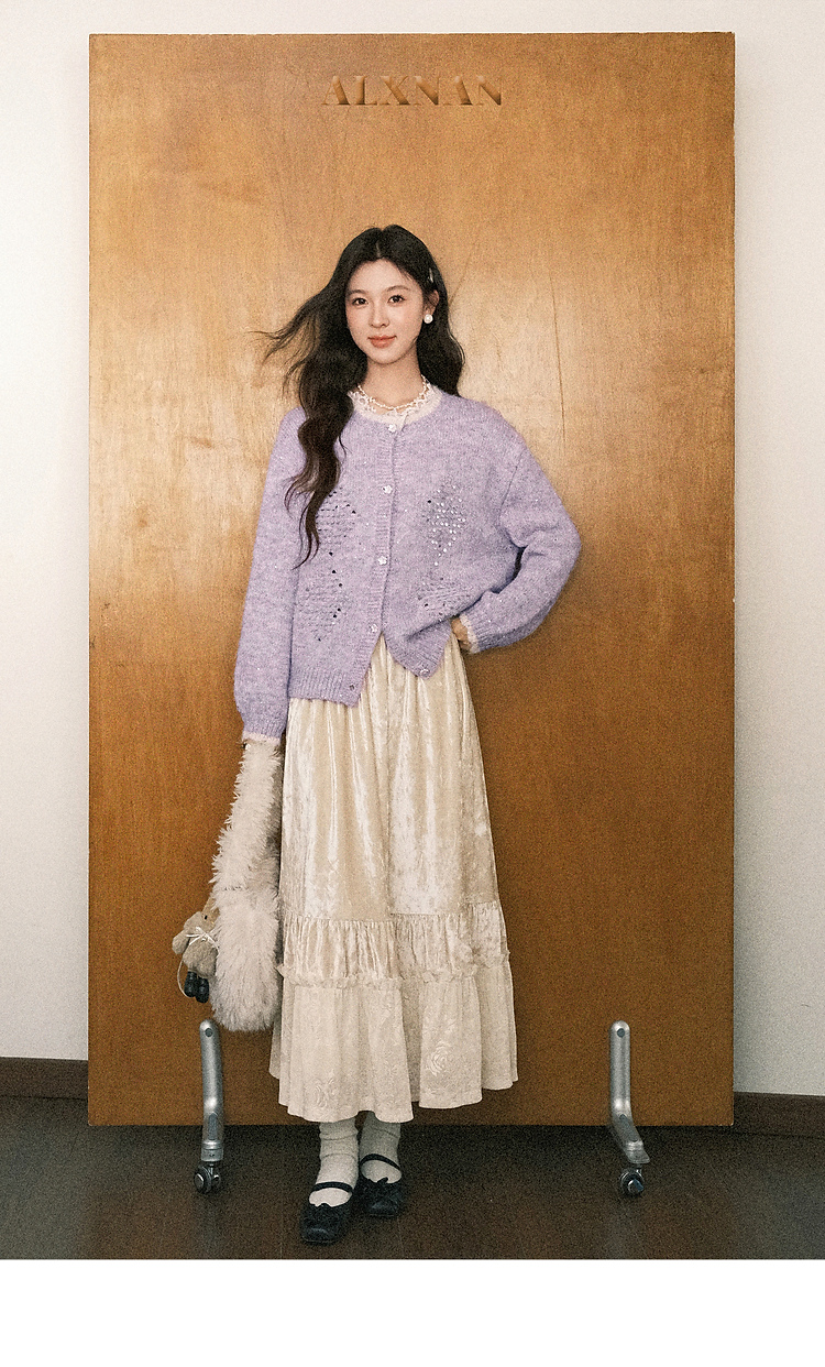 鹿向南「木槿」氛围感亮片紫色针织毛衣显瘦减龄开衫上衣女秋冬季