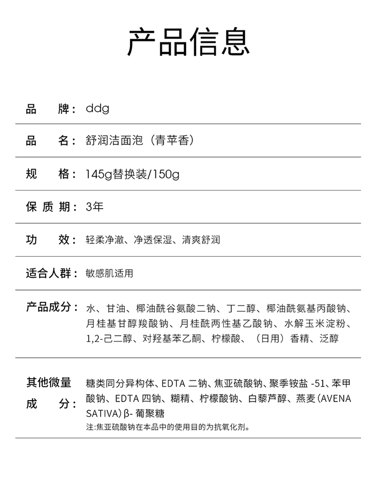 ddg洁面泡(燕麦/青苹香)150g SGS认证 敏肌可用