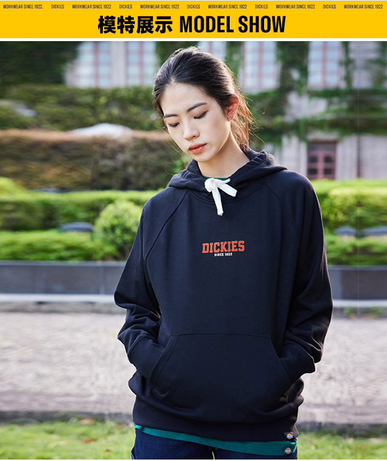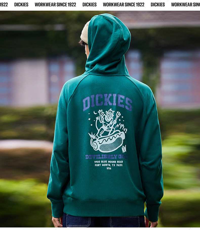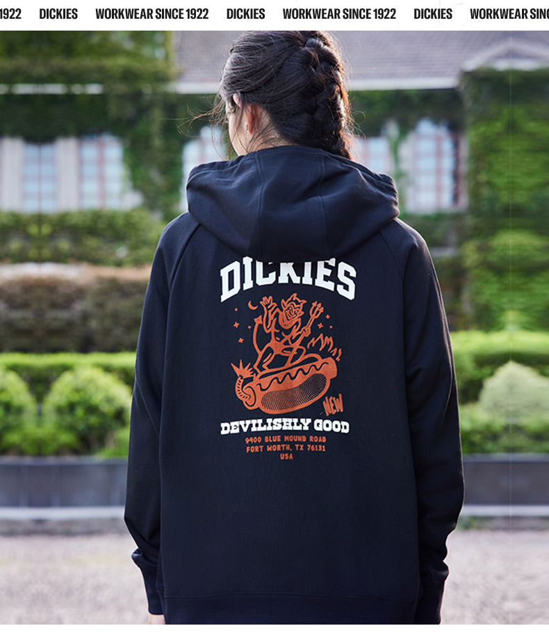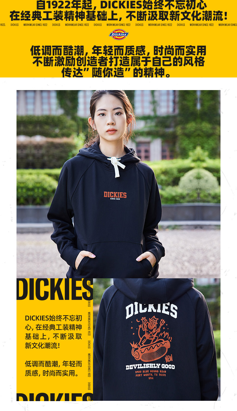 Dickies后背印花休闲连帽毛圈美式卫衣宽松 男女情侣简约百搭 DK0A87FE Y
