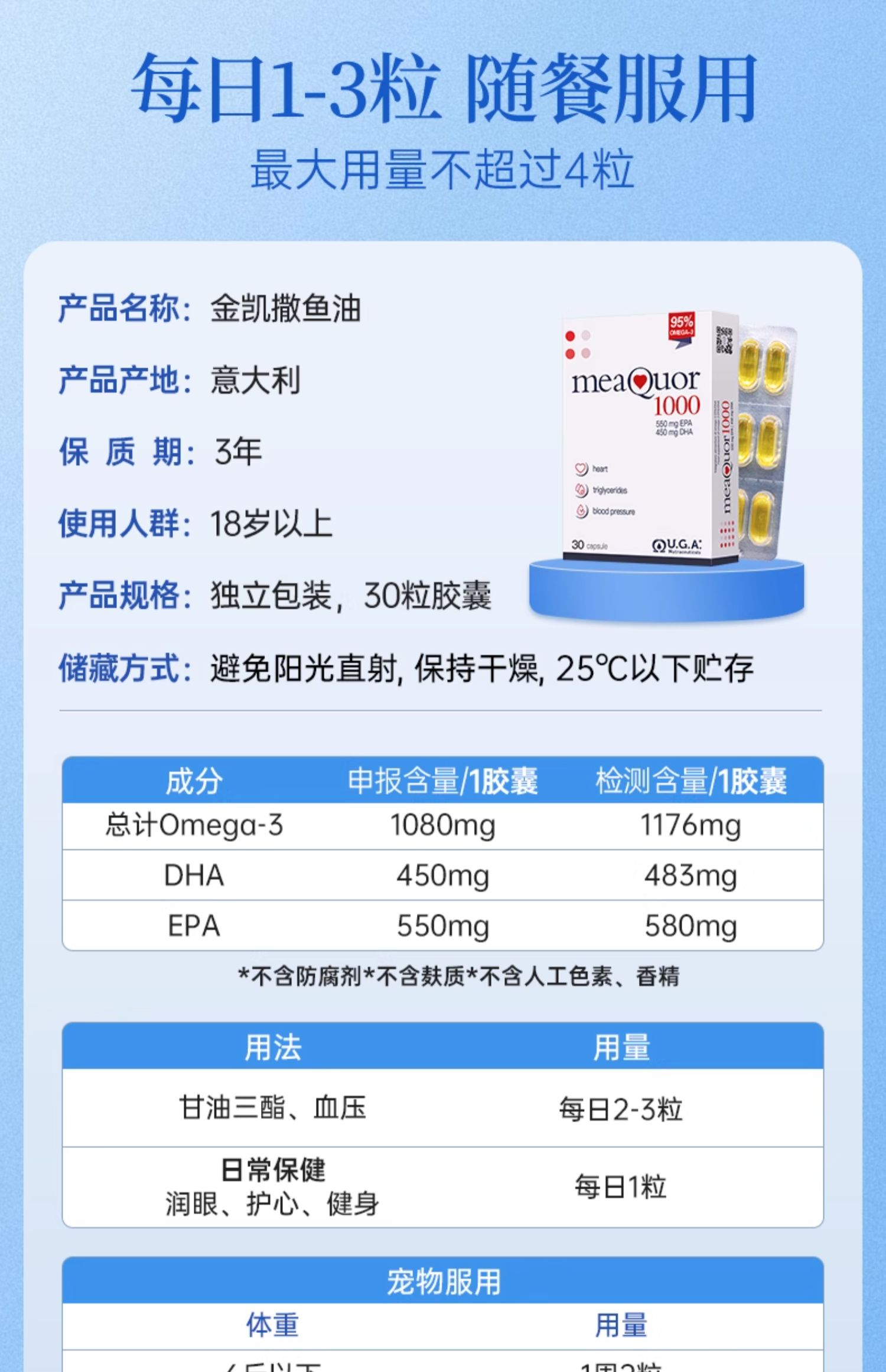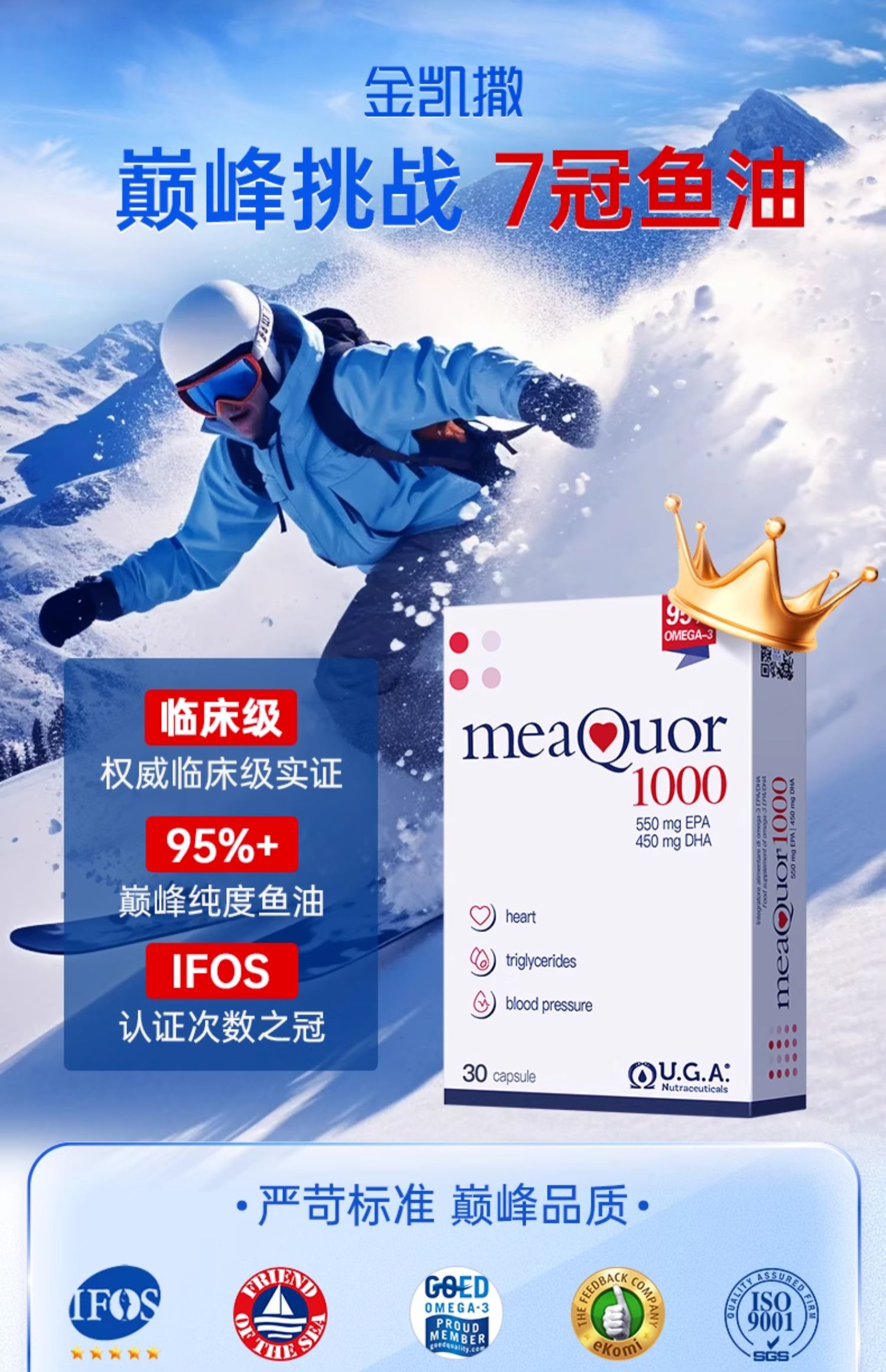 【金凯撒】鱼油95%纯度omega3深海鱼油软胶囊Meaquor1000