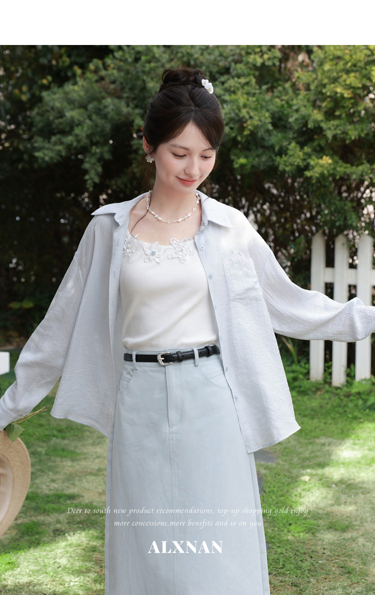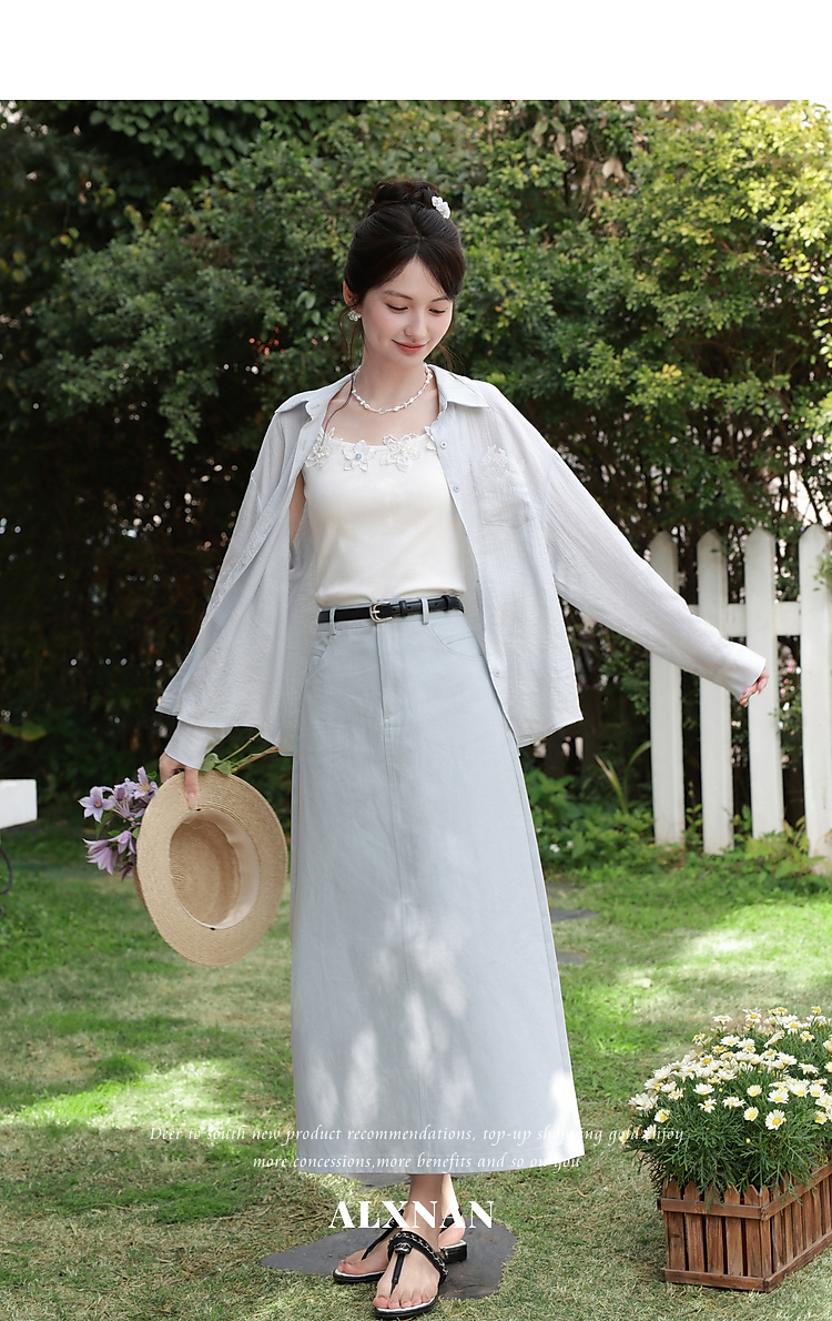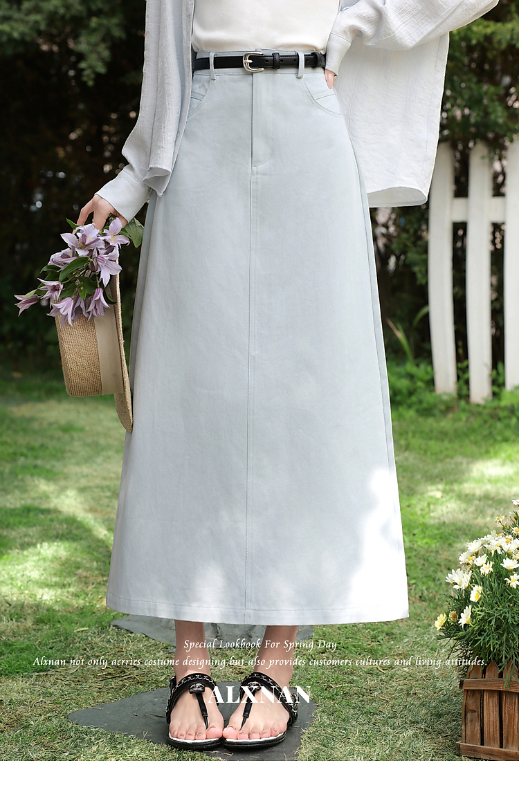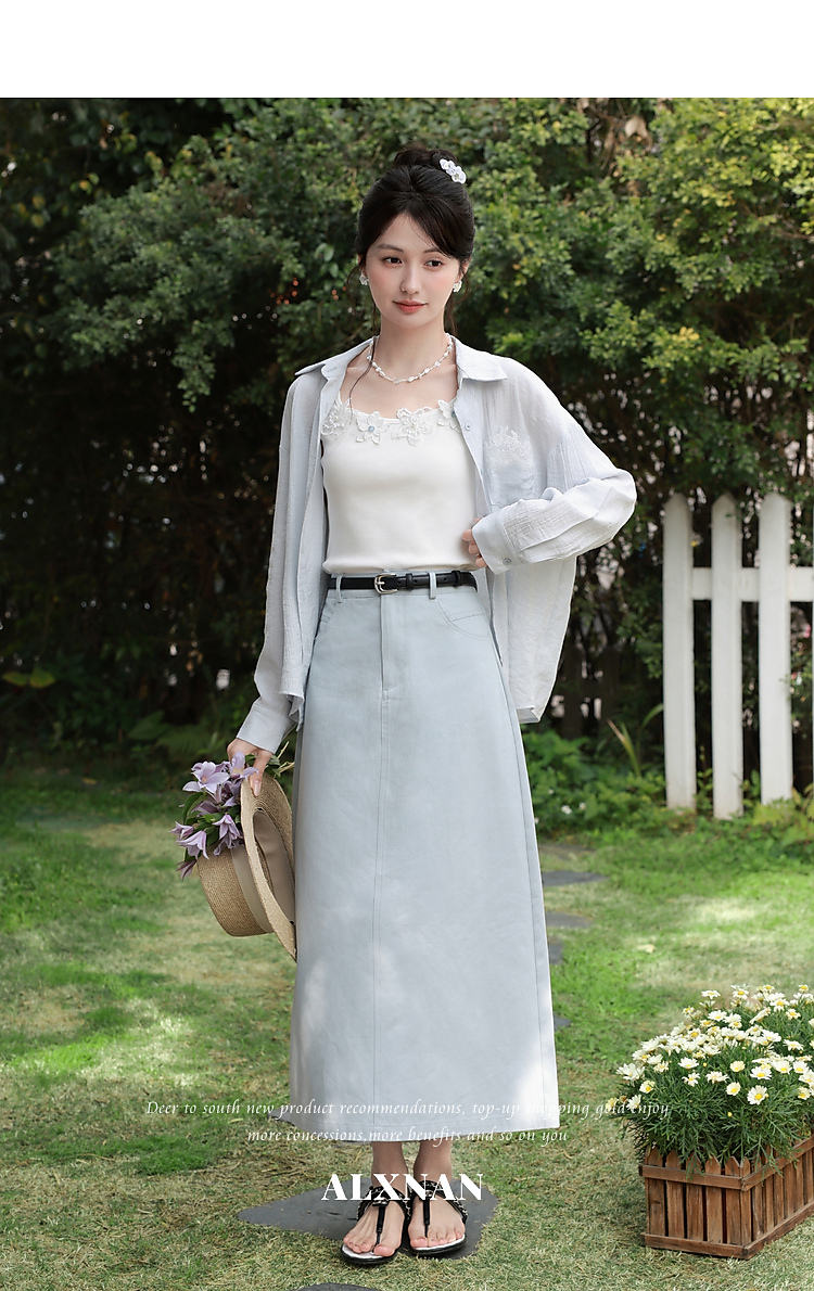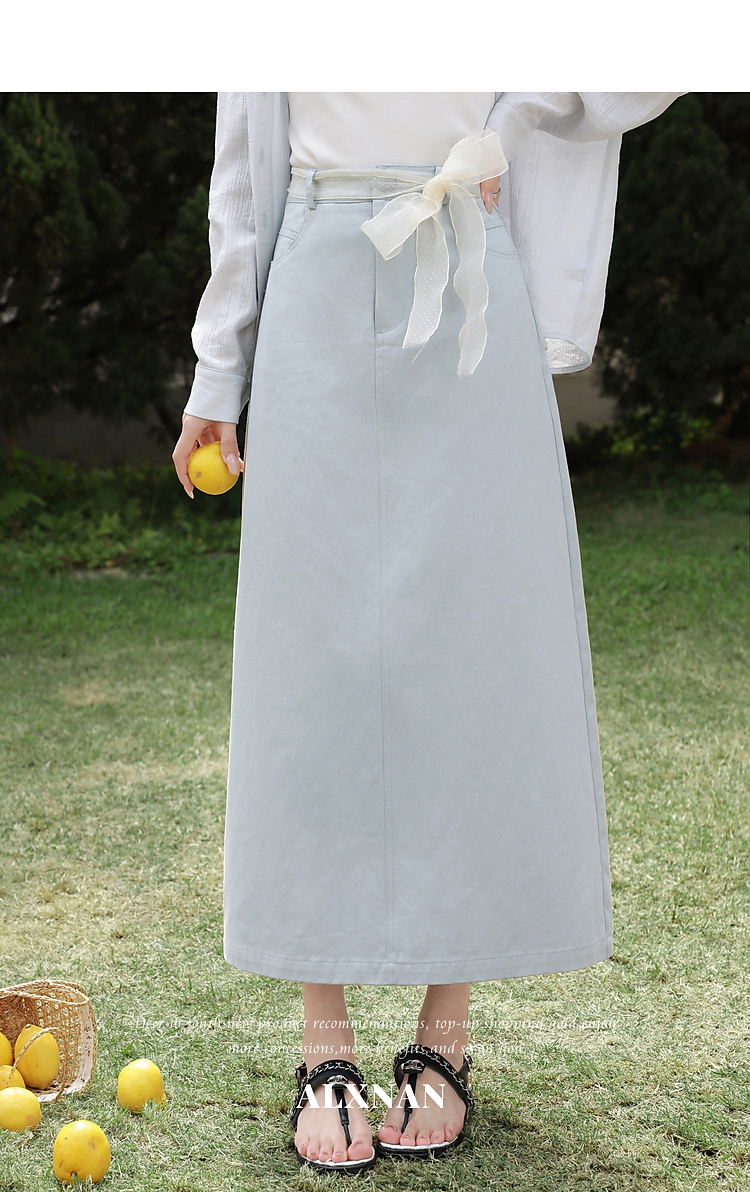 鹿向南「旧蓝回忆」蓝色半身裙女春新款高腰修身长款显瘦A字裙子